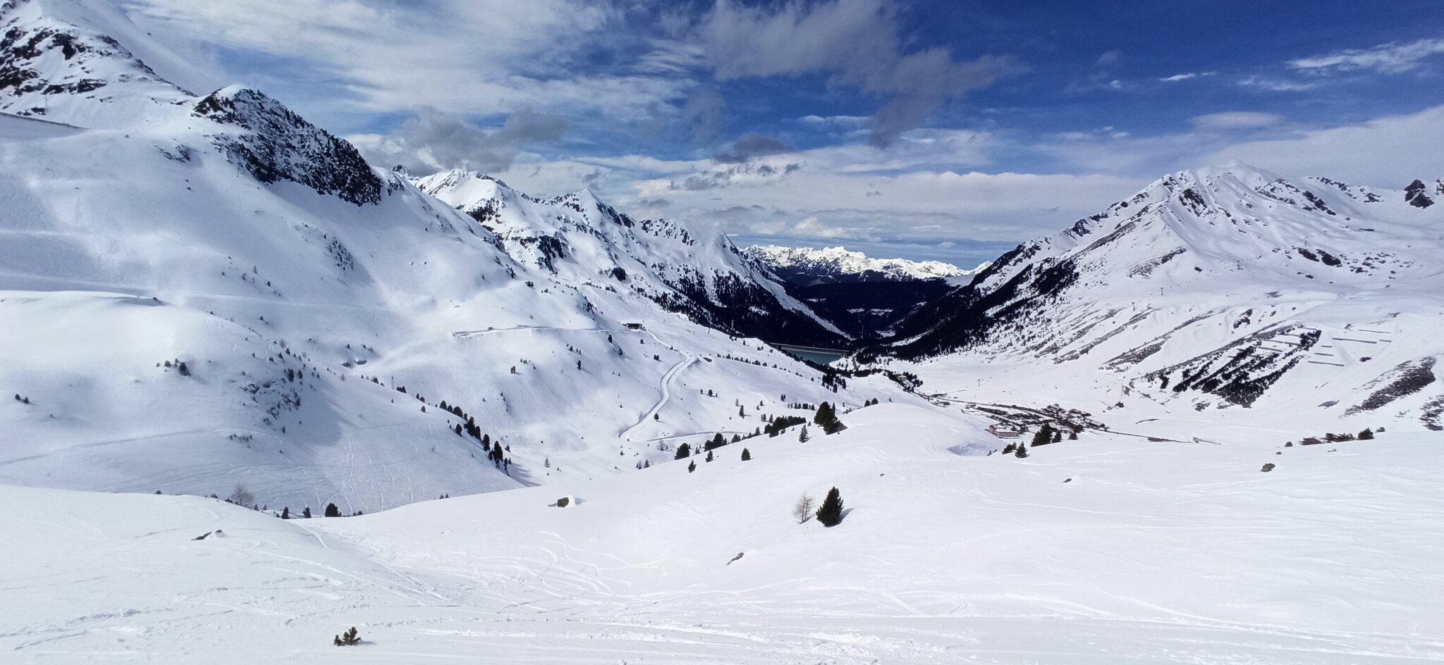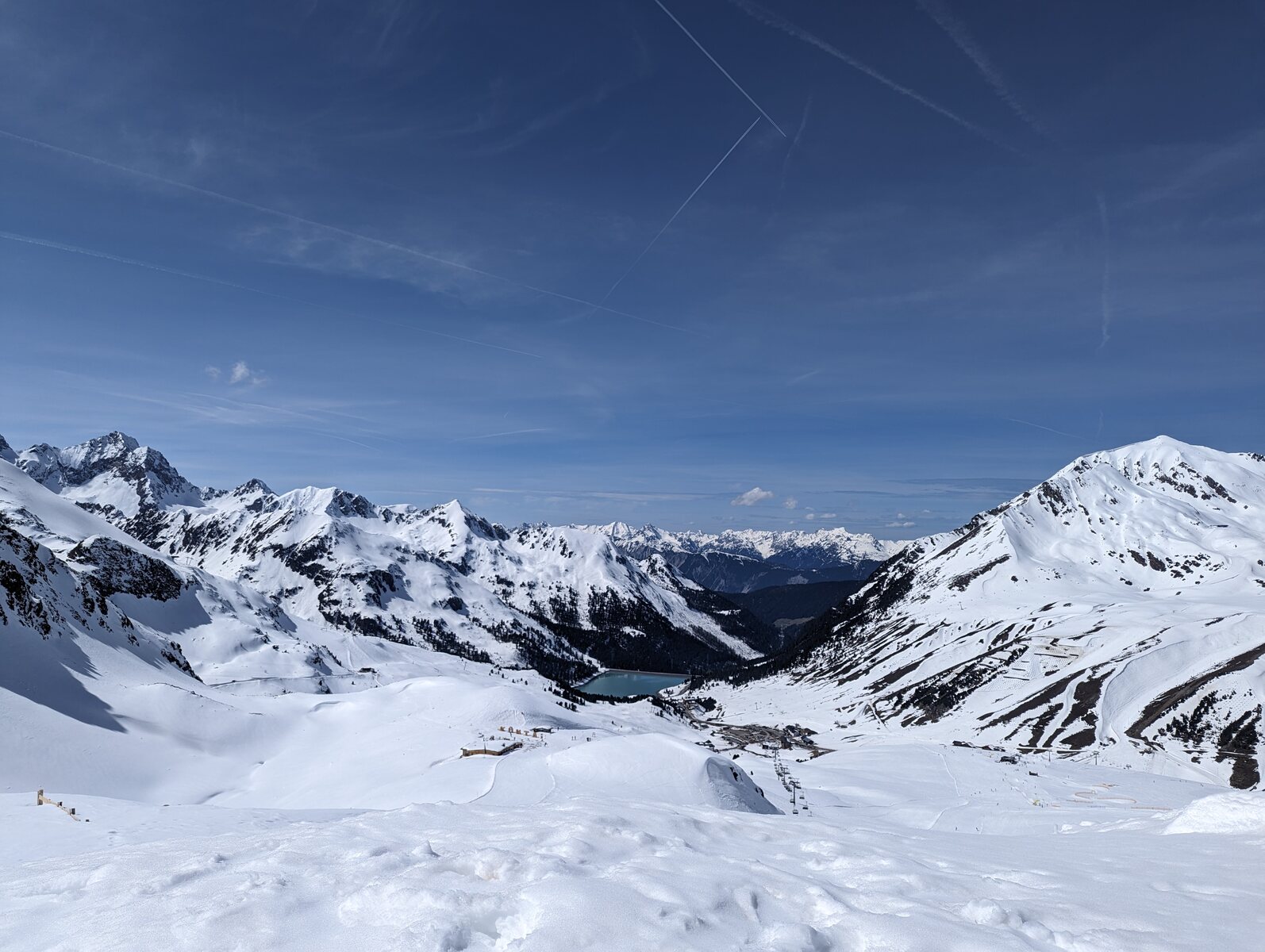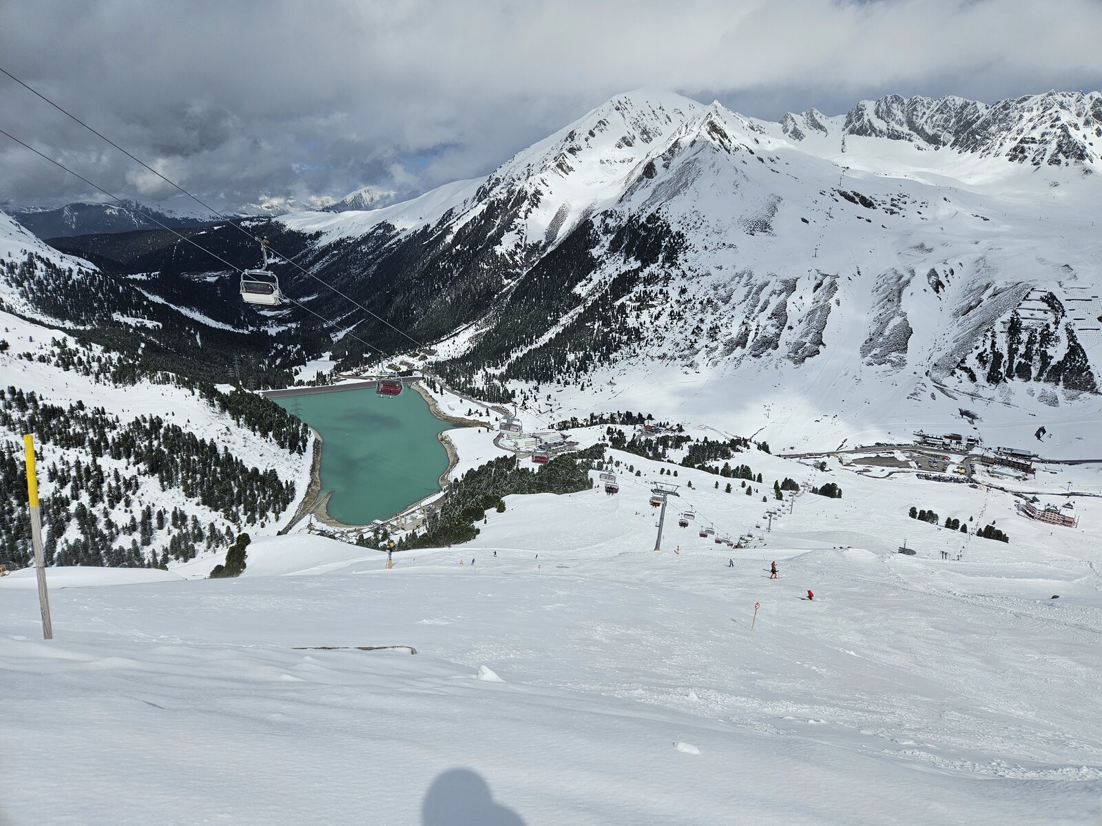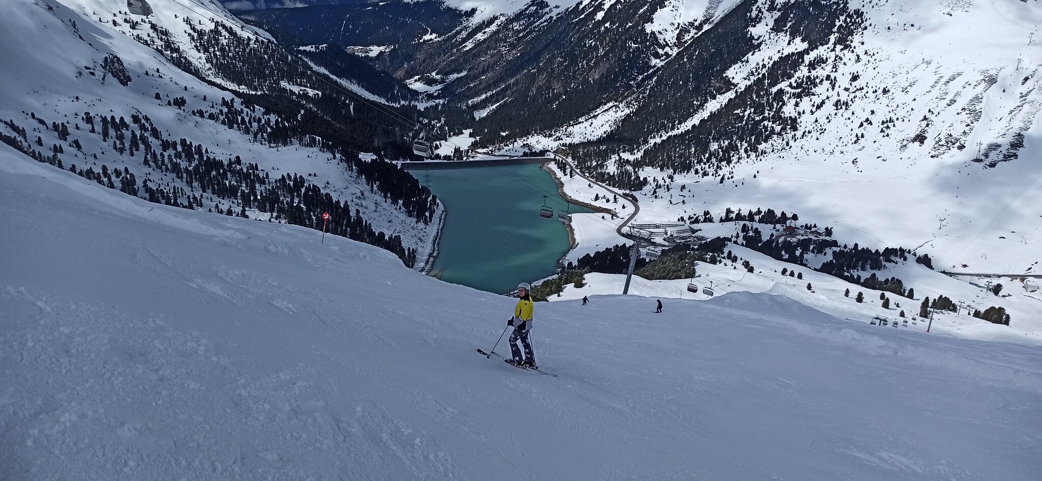 Besonders erwähnenswert ist der Blick nachdem man an der Bergstation losgefahren ist. Von der Piste auf den Stausee sieht aus wie in Norwegen,wenn man mit Skiern fast bis in einen Fjord fährt.
