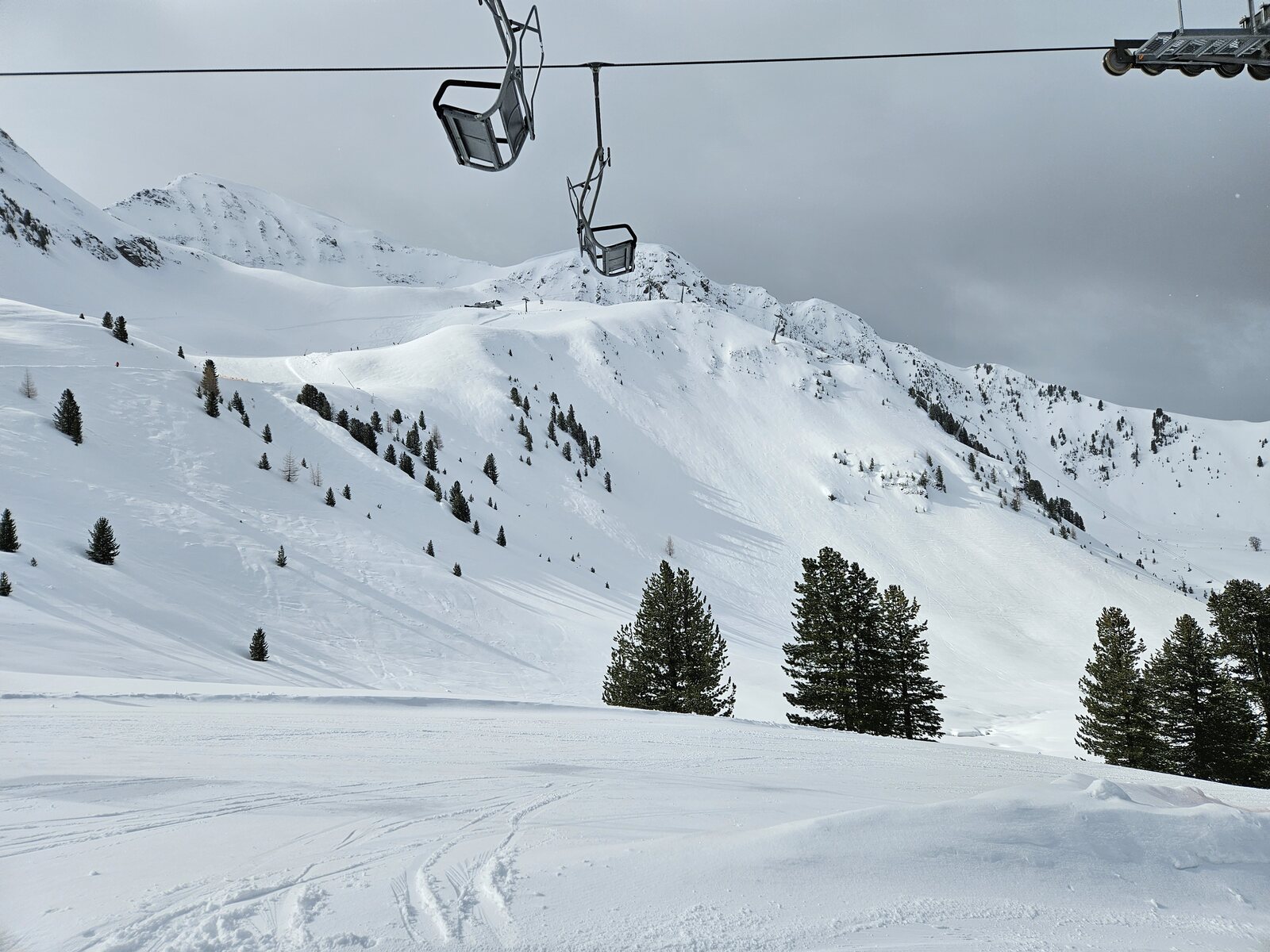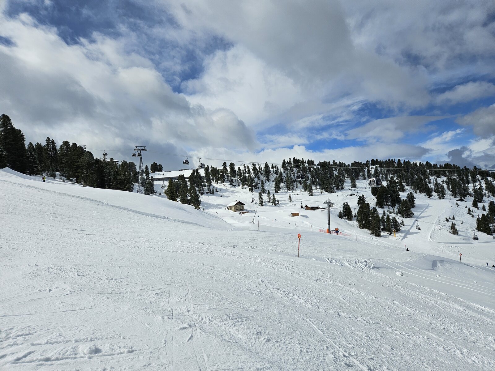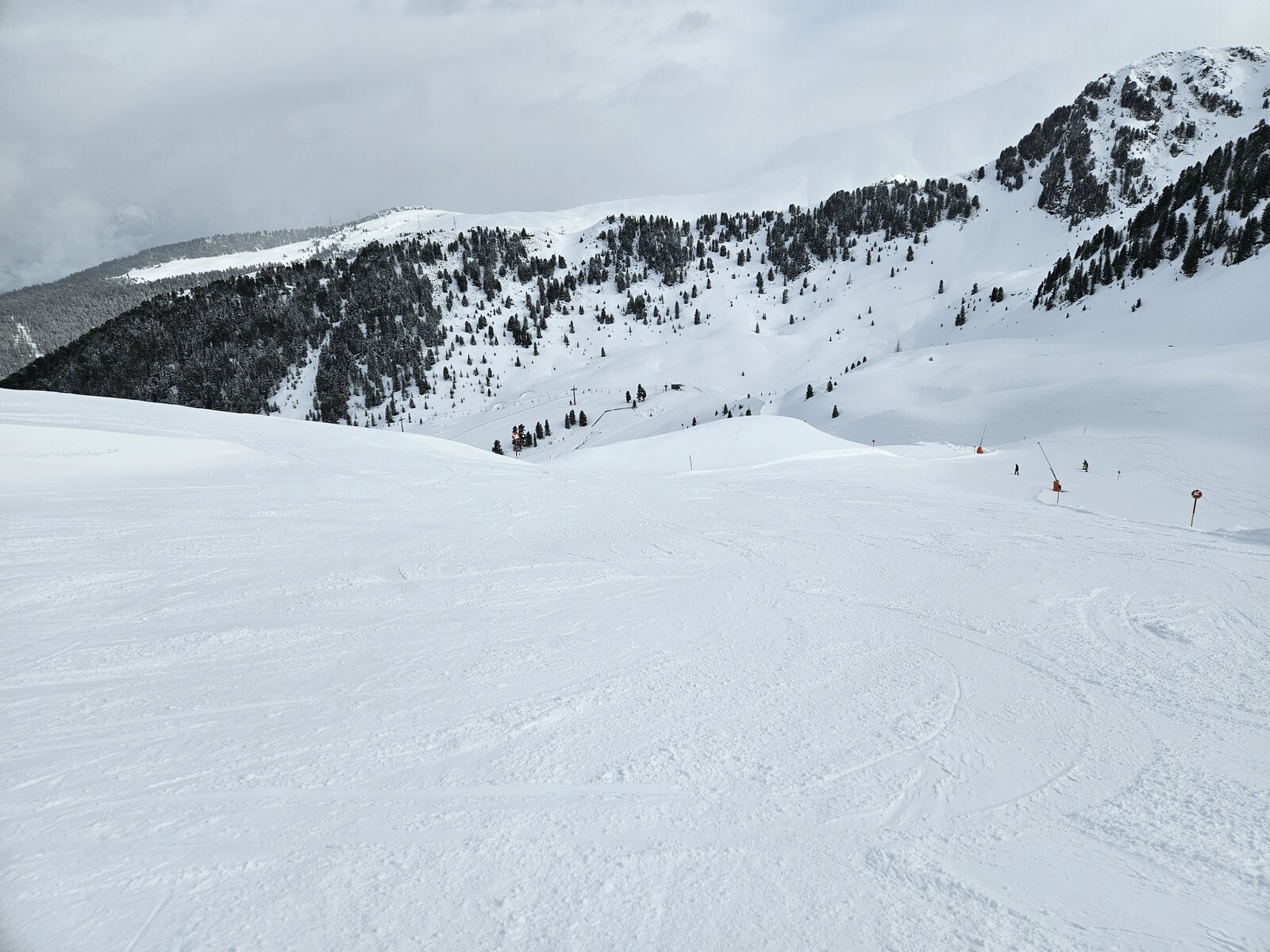 Im Kühtai dann zwar oberflächlich weich, aber keine Buckelbildung. Die Pisten südseitig sowie Alprosen und Hohe Mut, sehr spaßig. Nordseitig oben teils noch pulvrig unten dann weich. An der Gaiskogelbahn sind nun die beiden linken schwarzen dicht, ebenso südseitig die 3. Lassen sich aber alle noch fahren.
