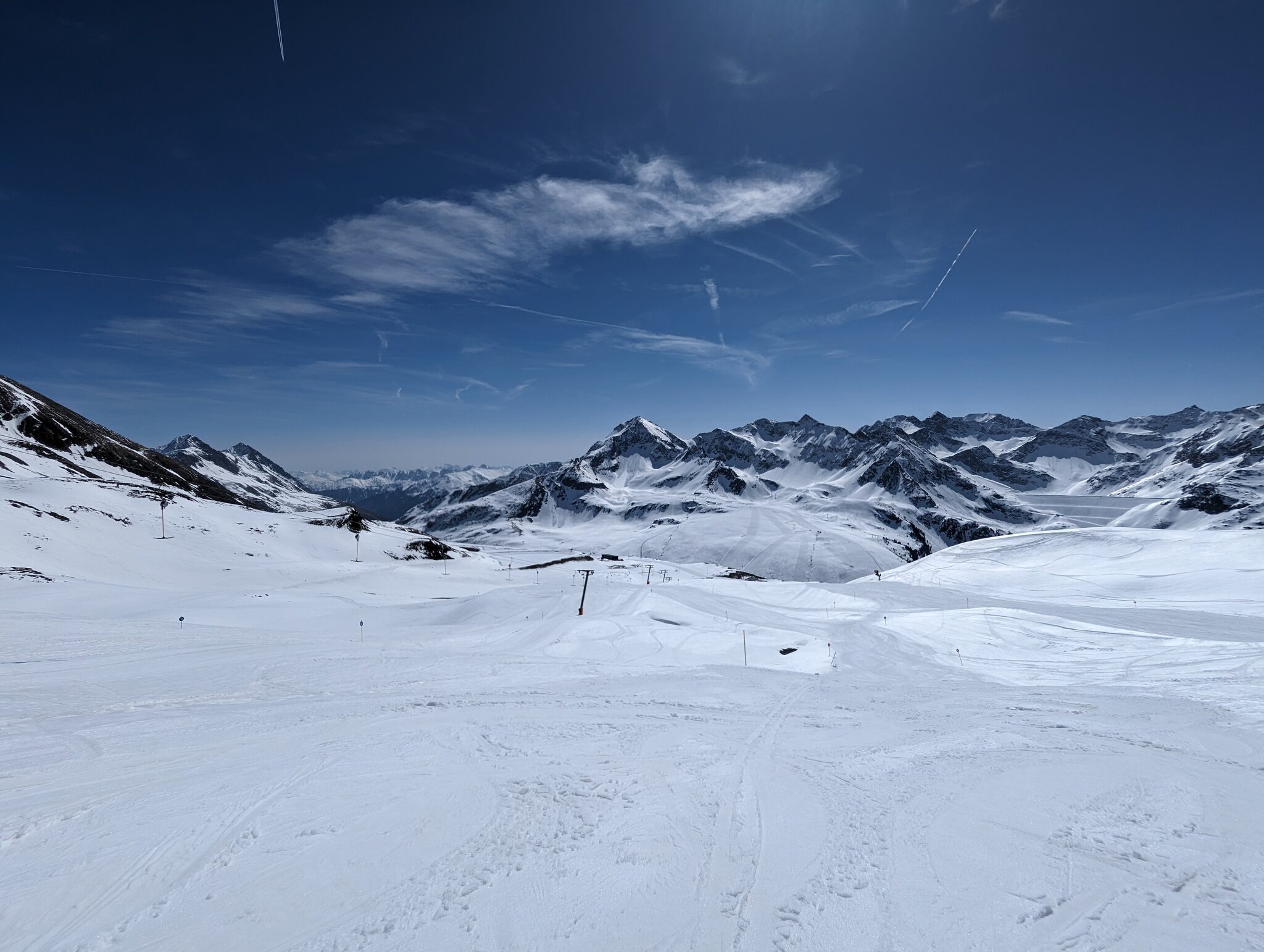 War am Freitag dann nochmal in Hochoetz und Kühtai, war natürlich deutlich sonniger und viel wärmer als zwei Tage zuvor. Diesmal war der Nachmittag im Kühtai deutlich besser. Die Pisten hielten erstaunlich gut, südseitig war ein Firntraum und man war alleine unterwegs! Lange würde die Südseite aber nicht mehr halten bei Wärme.