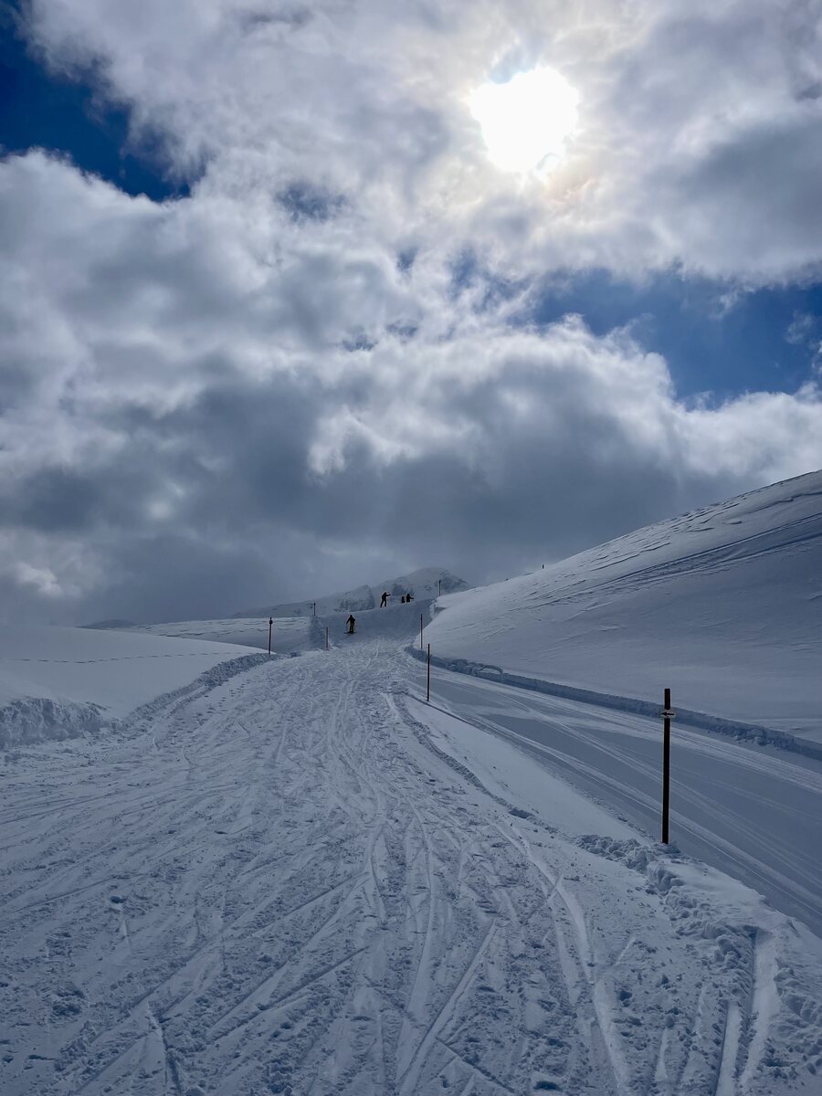 ^Geniale Pisten am Faltschona, dieses Foto ist um halb 11 aufgenommen! Kaum Leute unterwegs