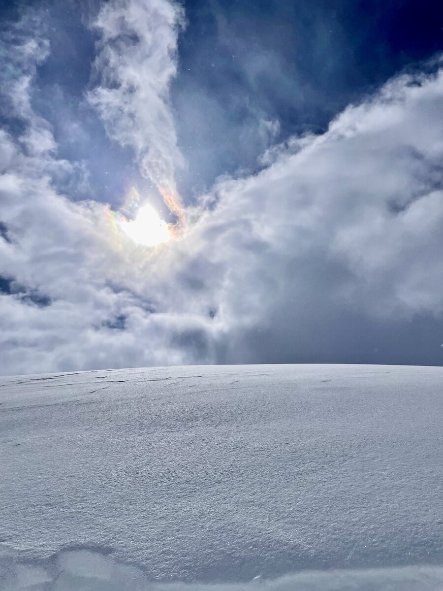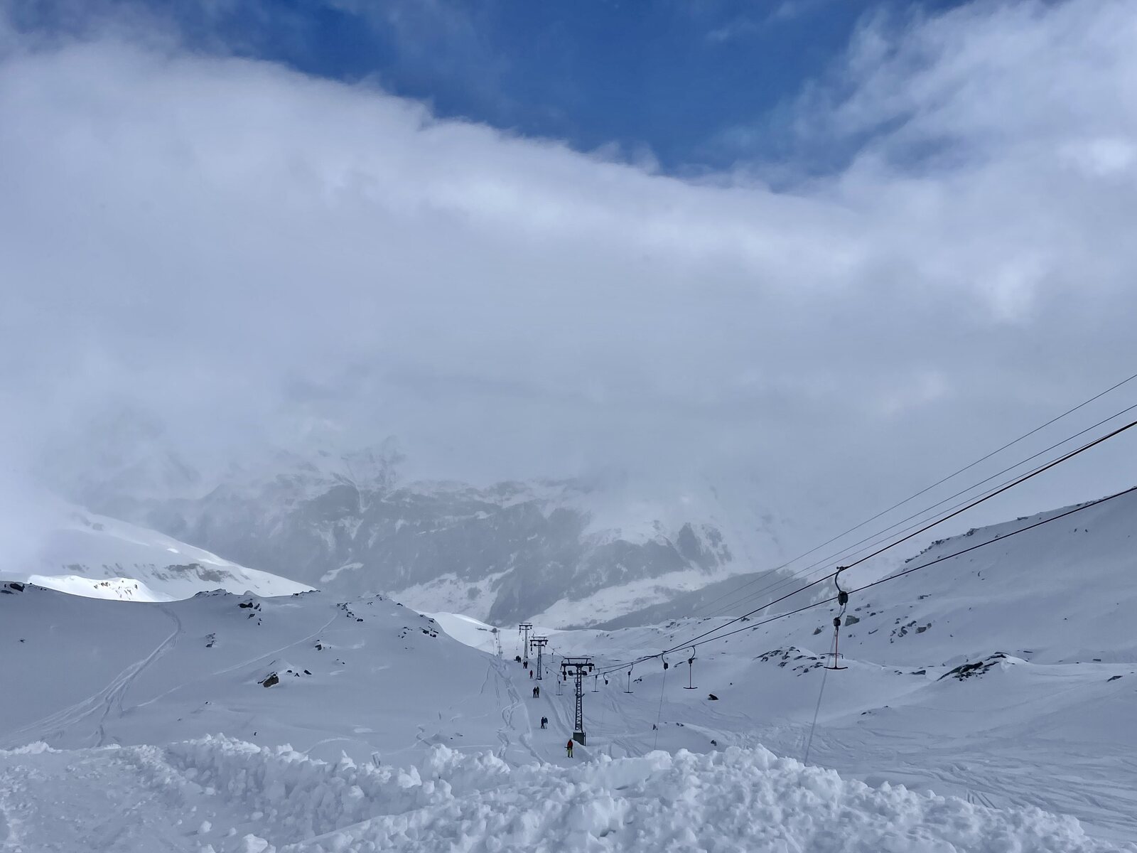 ^Schnee in der Luft am Start der Gletscher-Piste (Nr. 2)