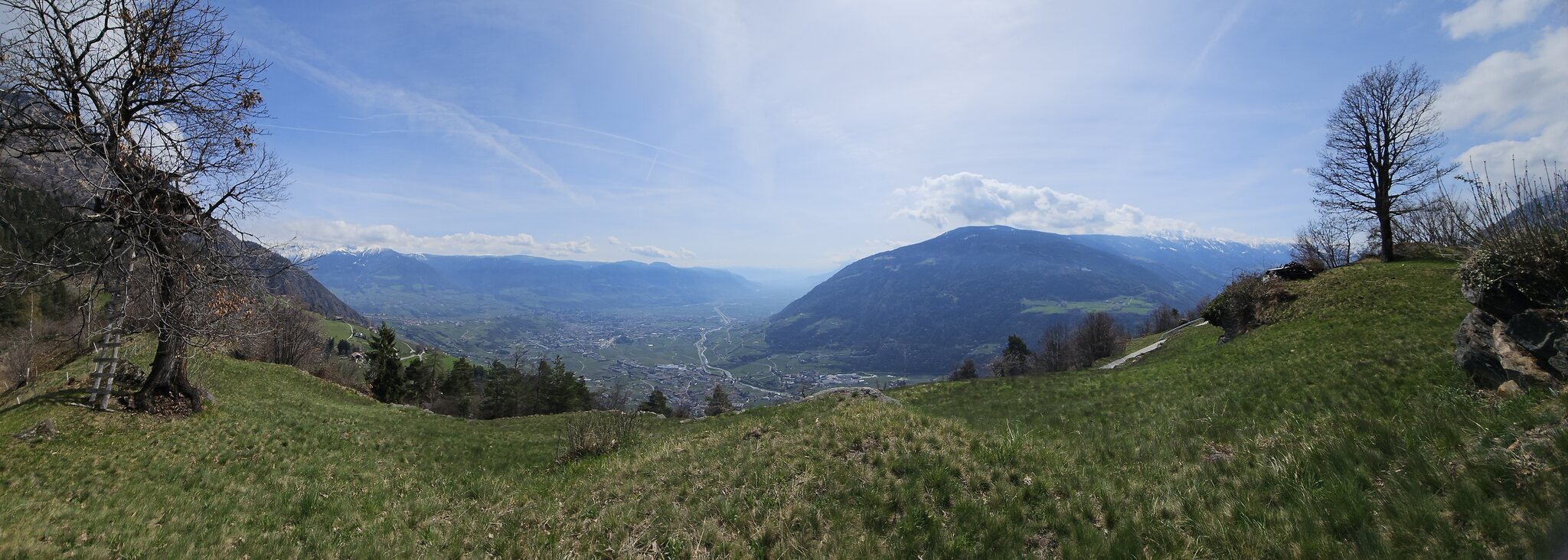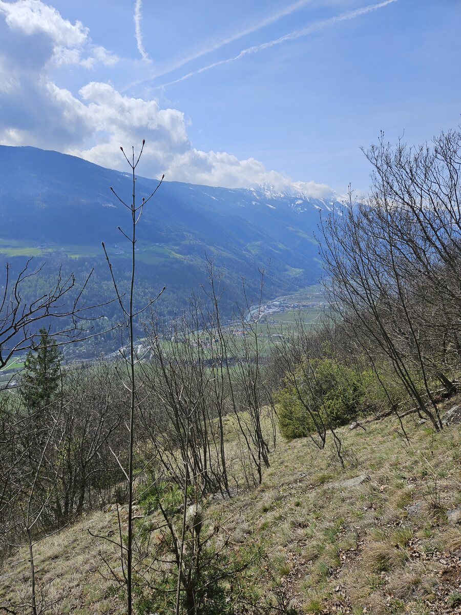 Heute war ich mit der Tochter bei der Hauswanderung auf dem Walburgweg von Naturns zurück nach Plaus unterwegs. Für den Sonnenberg war das Geläuf vergleichsweise feucht, aber von oben war es immerhin trocken. Die Ausblicke ins Etschtal sind immer wieder schön