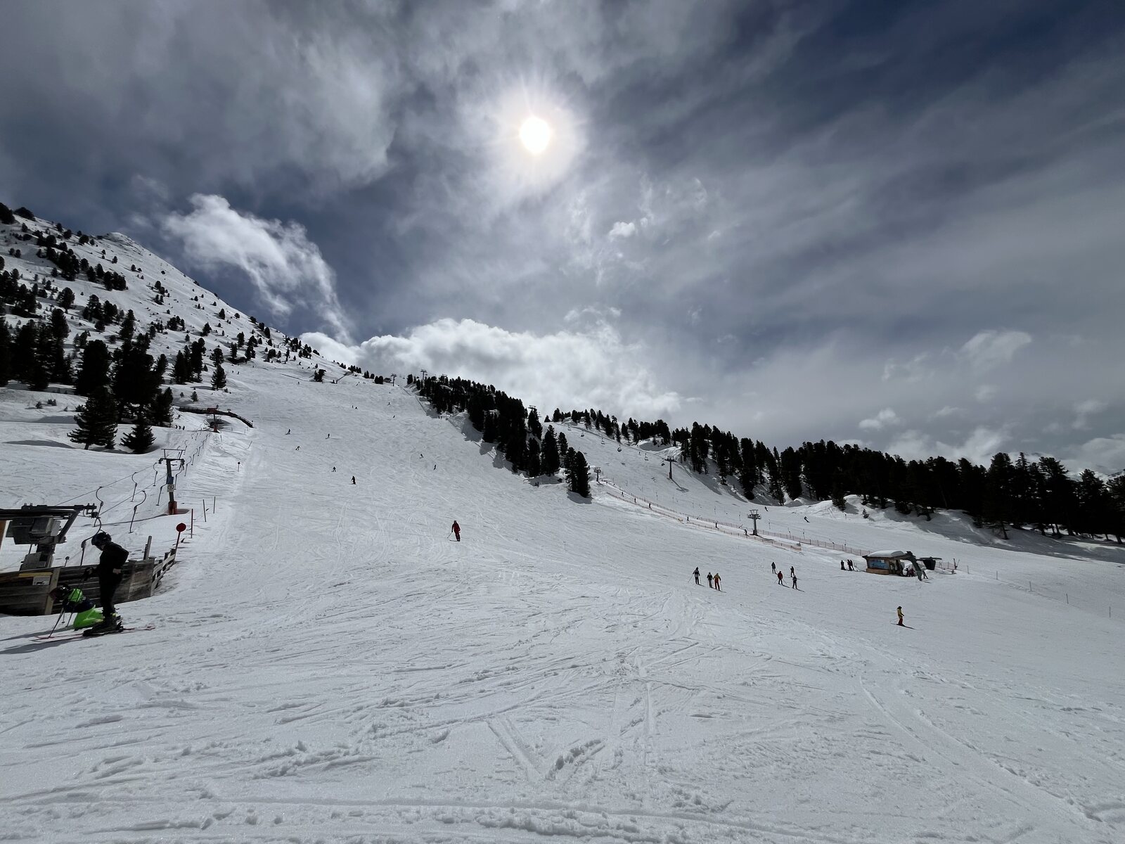 Viele Jahre ist es her, dass Ostern so früh ist und wir das Hausskigebiet besuchen können. Zwar gehört es aufgrund seiner Topographie und seinem häufig hohen Füllegrad nicht grad zu meinen Favoriten, doch heute hat es sehr gut gepasst. Kommt dazu, dass das Wetter und die Pisten sich besser als erwartet zeigten.