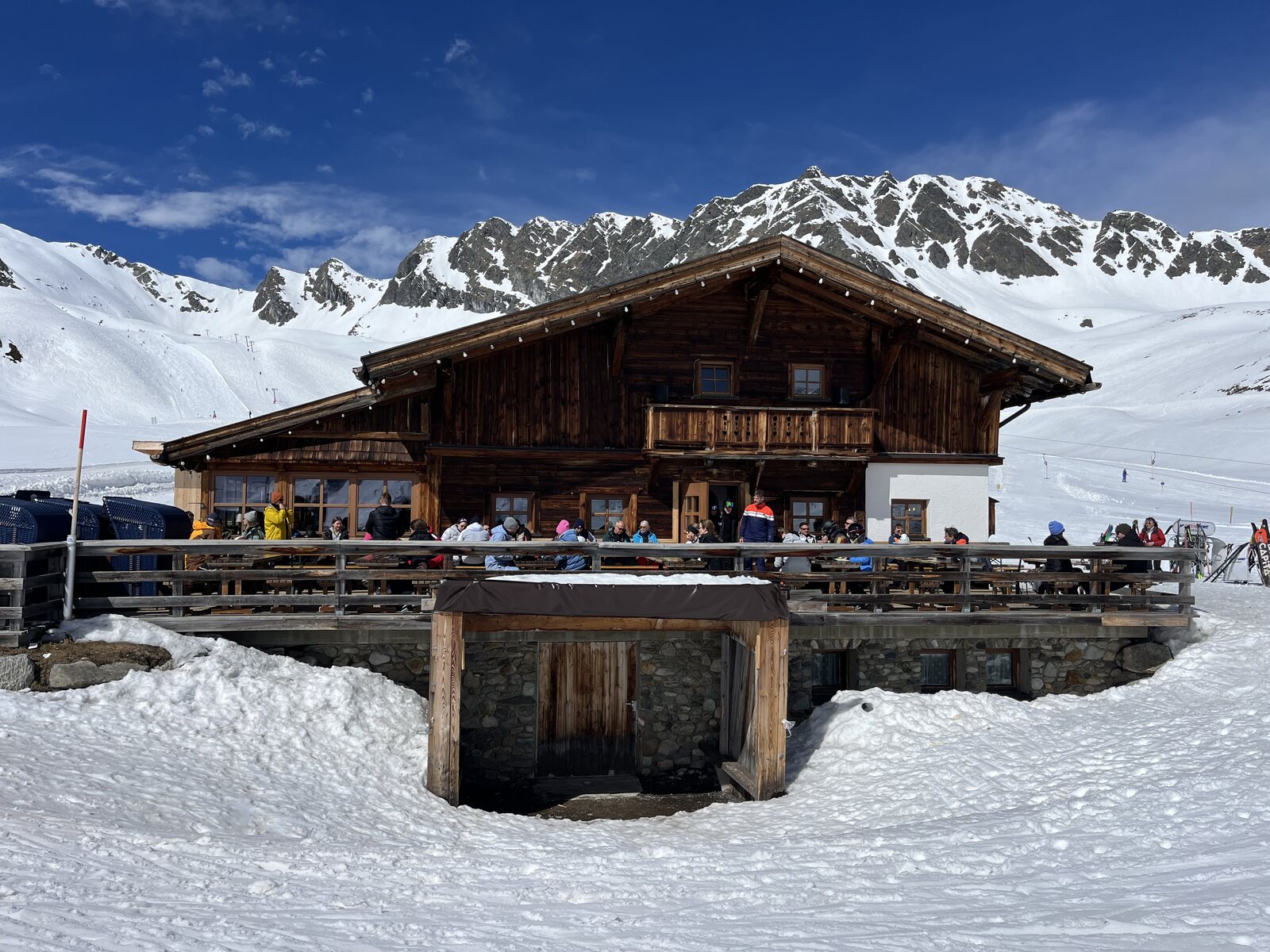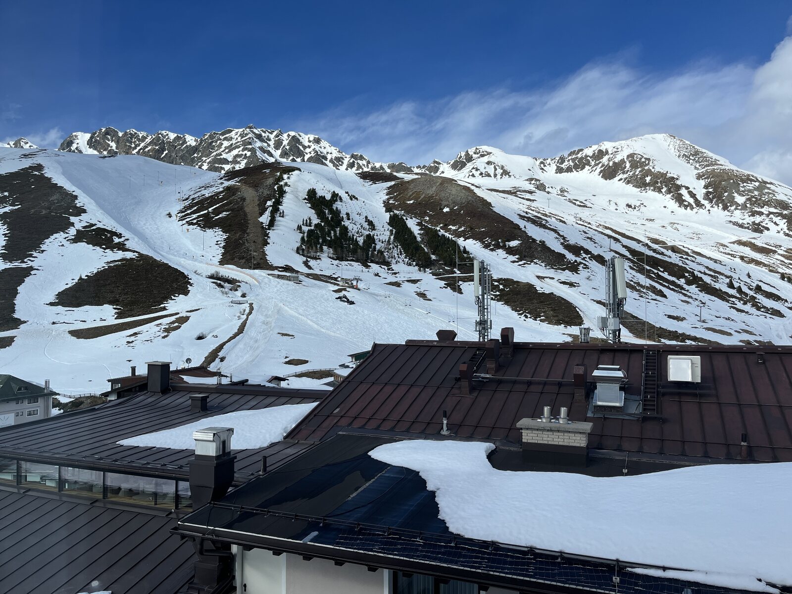 Um 13 Uhr wechseln wir mittels Ein-Skischuh-Aus-Technik nach Kühtai (sorry ins Kühtai, wie ich mich habe belehren lassen). Wir parkieren grad beim Hotel, dass wir zwischenzeitlich gebucht haben. Das mit den oben genannten Kostengründen hatte ich aber irgendwie wieder vergessen… dafür direkt, wirklich direkt an der Piste: Kurzzeitig ist es etwas stärker bewölkt, aber wirklich nur sehr kurz. Und Wind ist hier überhaupt kein Thema. Via Hohe Mut Bahn… und Kaiserbahn… gelangen wir zum längst überfälligen Mittagessen um 14 Uhr in der Kaiser Max Hütte. Danach sind die Pisten mehrheitlich hinüber. Logisch, bei dieser Wärme und den nicht wenigen Leuten. Enttäuschend aber alle (!) schwarzen Pisten an der GaisKogelBahn: Viele apere Stellen und fiese Steine! Neben den Pisten liegt viel Schnee, aber man ist hier offenbar zu faul, um Schnee reinzuschieben. Passt irgendwie zu den kurzen Öffnungszeiten. Um 15.30 Uhr haben wir dann genug und steuern den Skikeller an. Den Empfangsapéro lassen wir natürlich nicht aus, auch wenn ski-chrigel junior noch ins Sportgeschäft rennen muss: Badehose vergessen. Nettes Zimmer, Blick auf die Piste. Und jetzt schreibe ich diese Zeilen auf einem gemütlichen Bett im Ruheraum: Fazit: Hochötz gefiel uns beiden sehr gut. Mit Kühtai konnte ich mich noch nie so richtig anfreunden, aber ohne irgendeinen Ton zu sagen, kam ski-chrigel junior mit der Bemerkung, dass es ihm hier nicht gefalle. Alle Lifte aus dem Tal, langweilig angeordnet, und eben, die Steine. Wir sind uns einig.