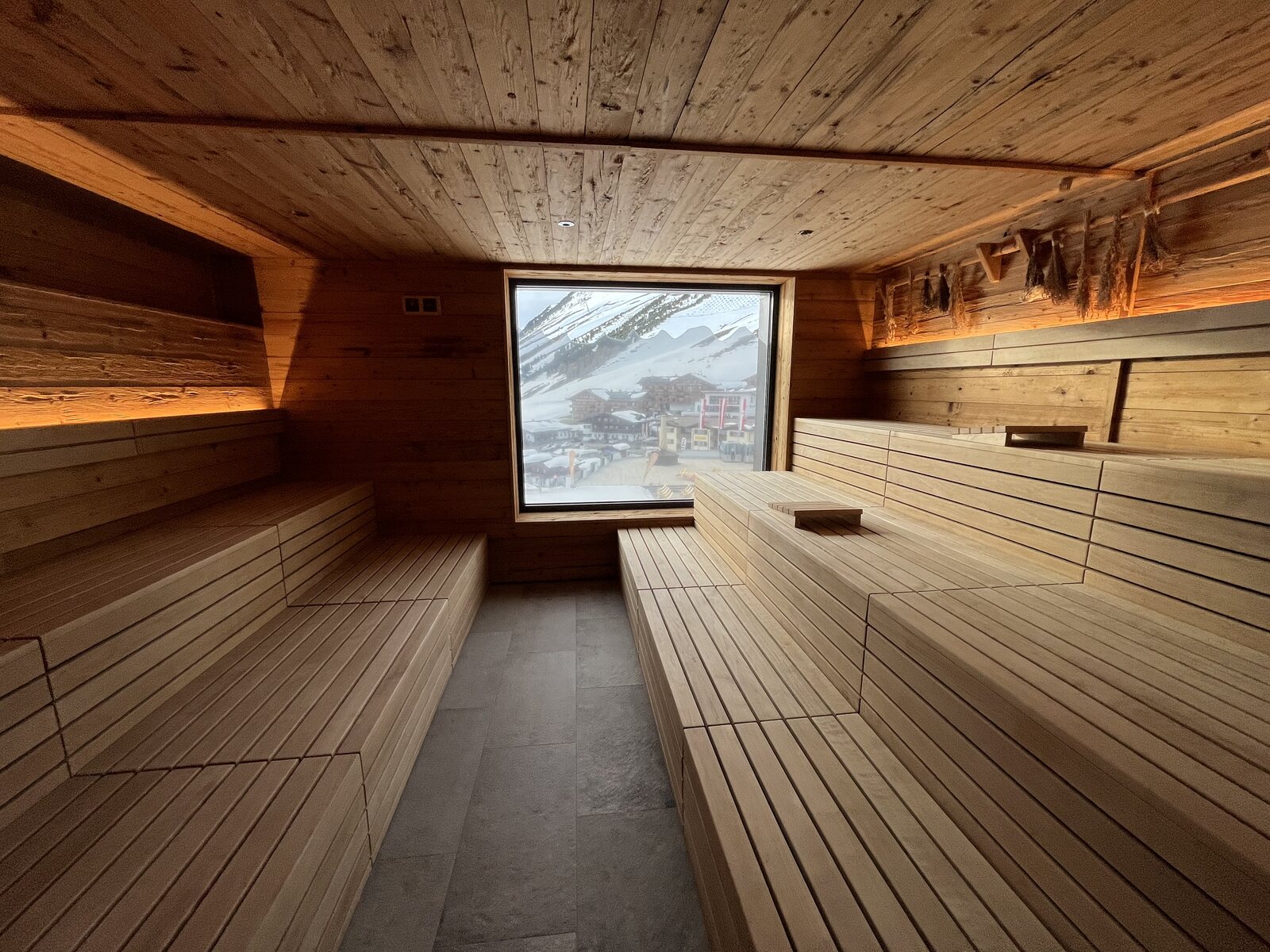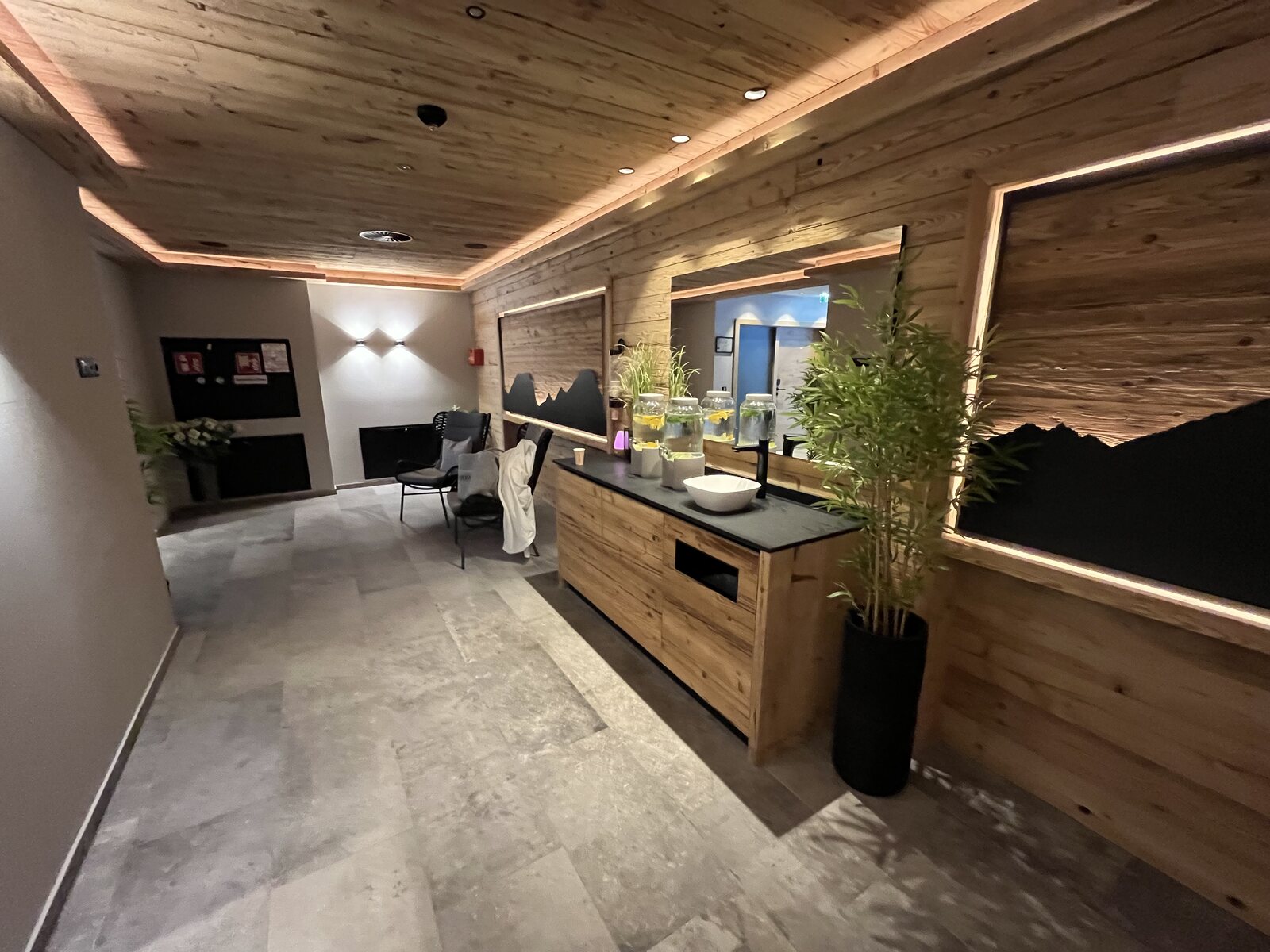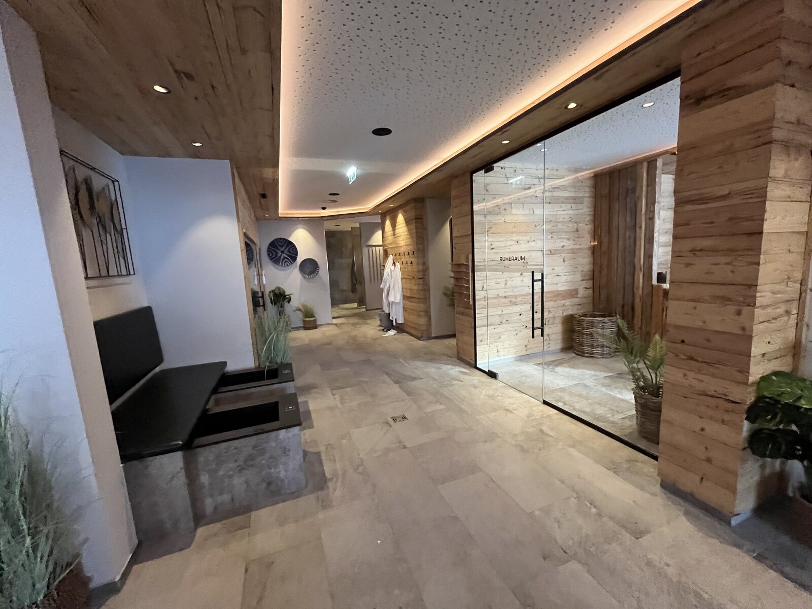 Die Wellnessanlage war sehr voll. Aber weil man spätestens um 19.30 Uhr zum Abendessen antraben muss, wurde es dann gegen 19 Uhr leer, sodass ich noch ein paar Fotos machen konnte.