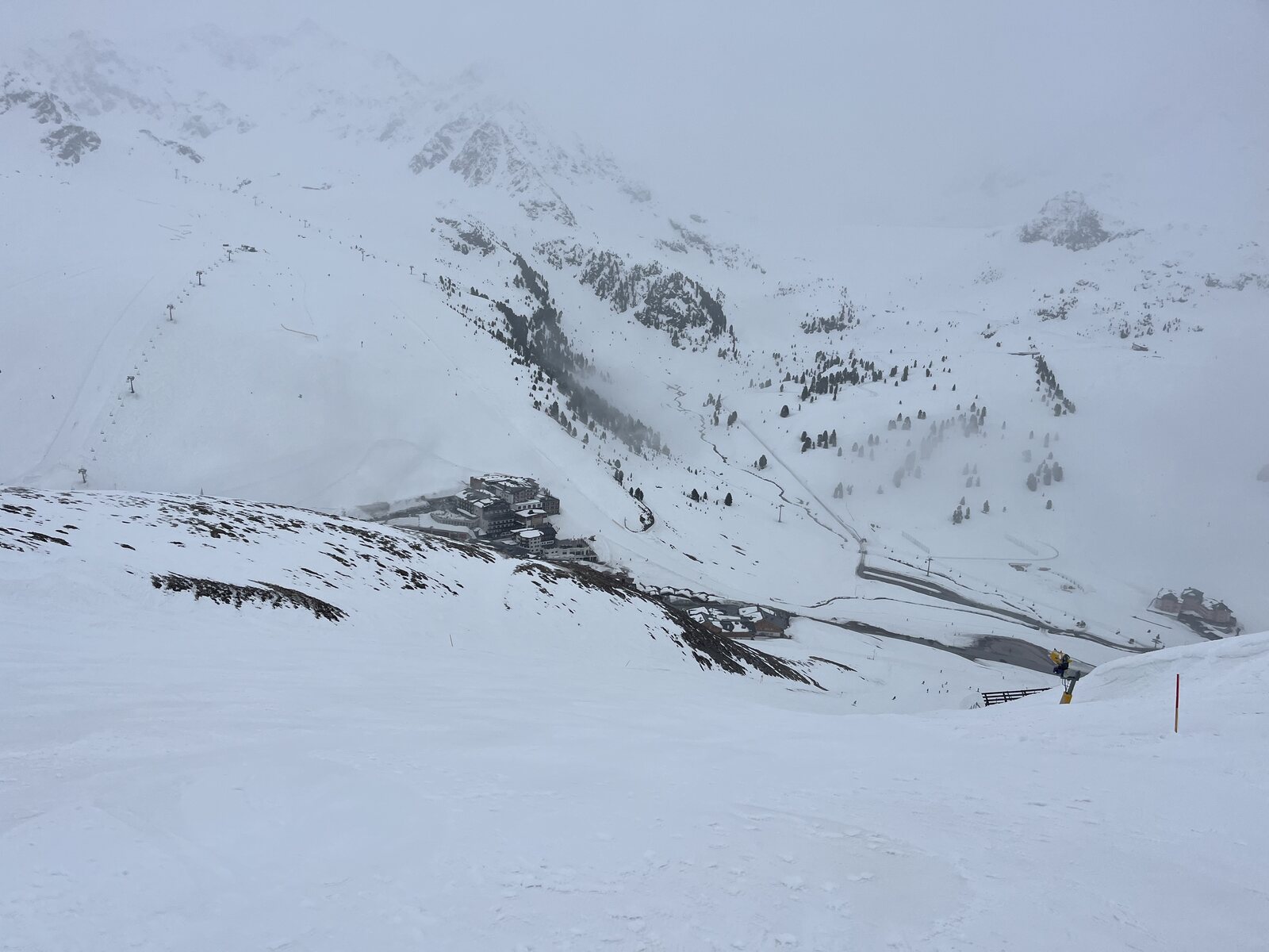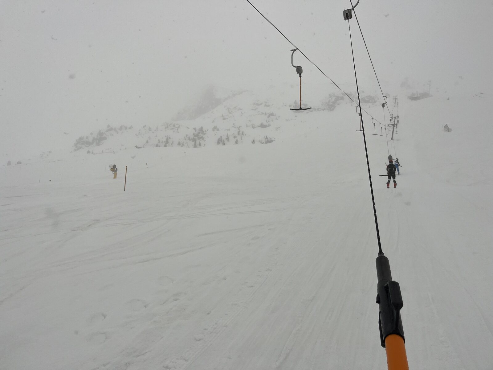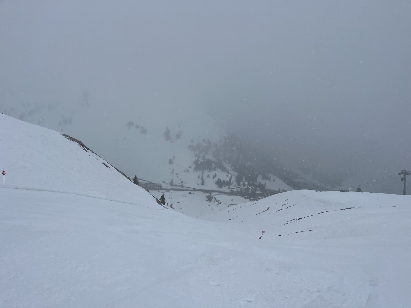 Oh wow, der Beilspitzlift ist noch geöffnet. Für wen? Ziemlich unnötig, dieser Schneekampf.
