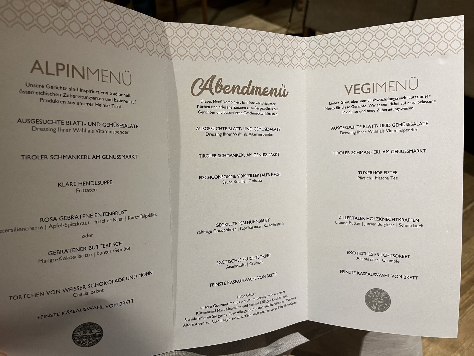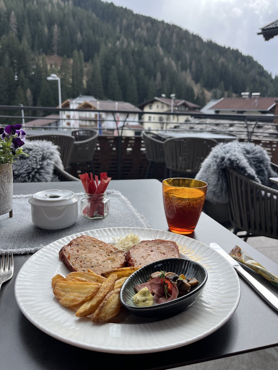 Wir sind soeben in unserem Lieblingshotel angekommen. Zmittag: riesesiges Buffet. Zvieri: riesiges Buffet. Und ja, Suppe und Apfelstrudel vorhanden. Kaffee/Espresso trinken wir beide nicht. Danke.
