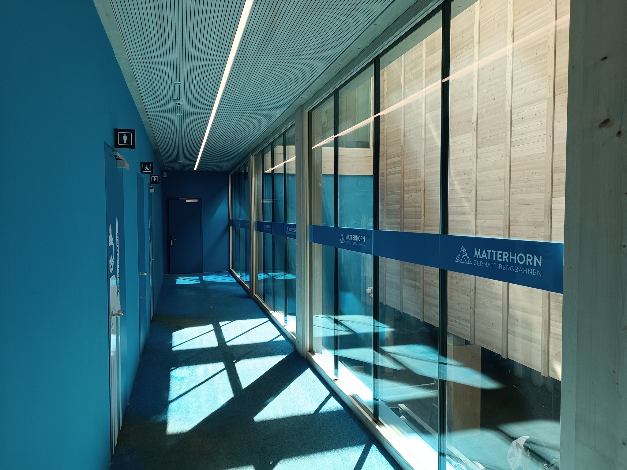 Ich hab gestern mal in der Station unten rumgeschaut und konnte ausser den WCs im 1. OG (und tonnenweise Ski Lockers davor) den Zugang aufs Dach der PB nicht finden... obwohl er etwa "vorne rechts" von den WCs sein musste, wenn ich das Foto von aussen auf die Station ansehe.
