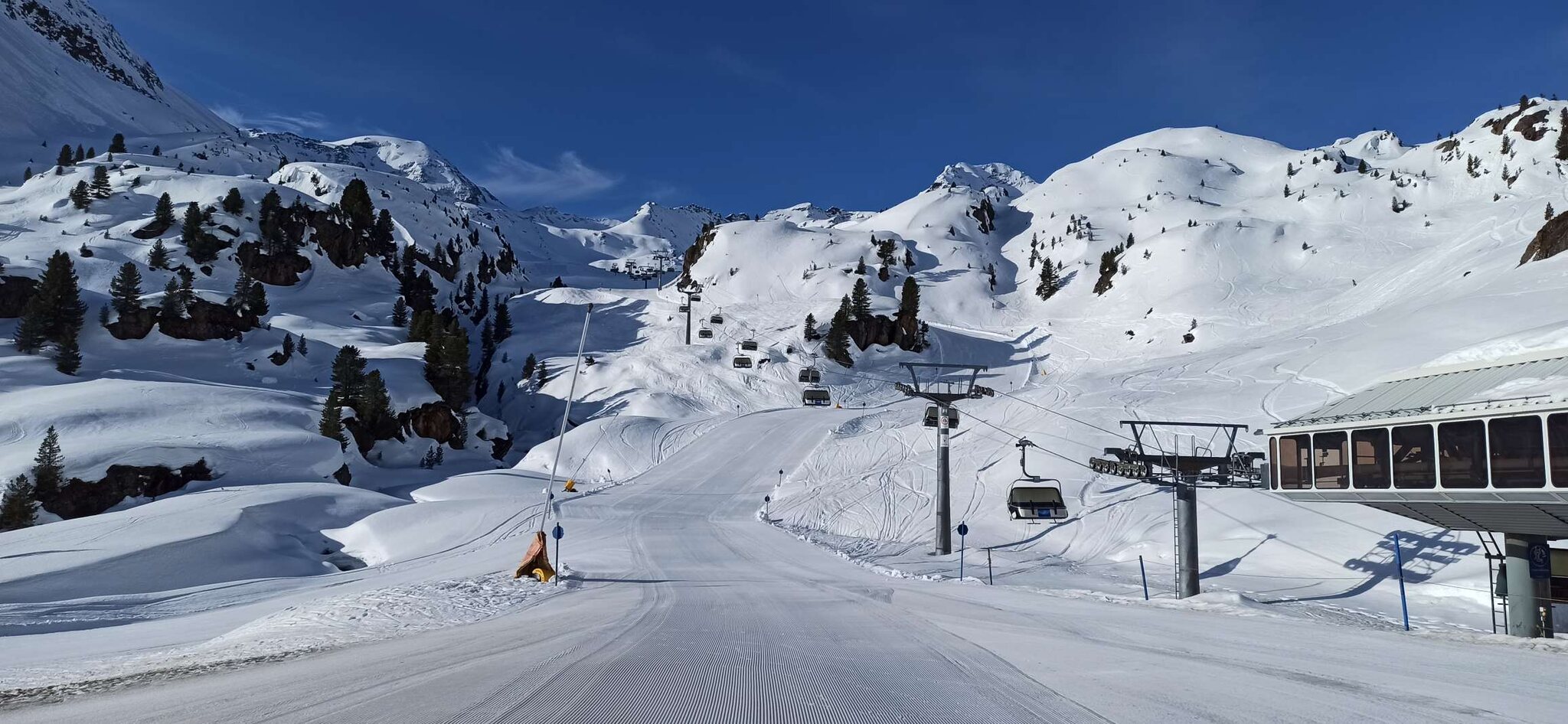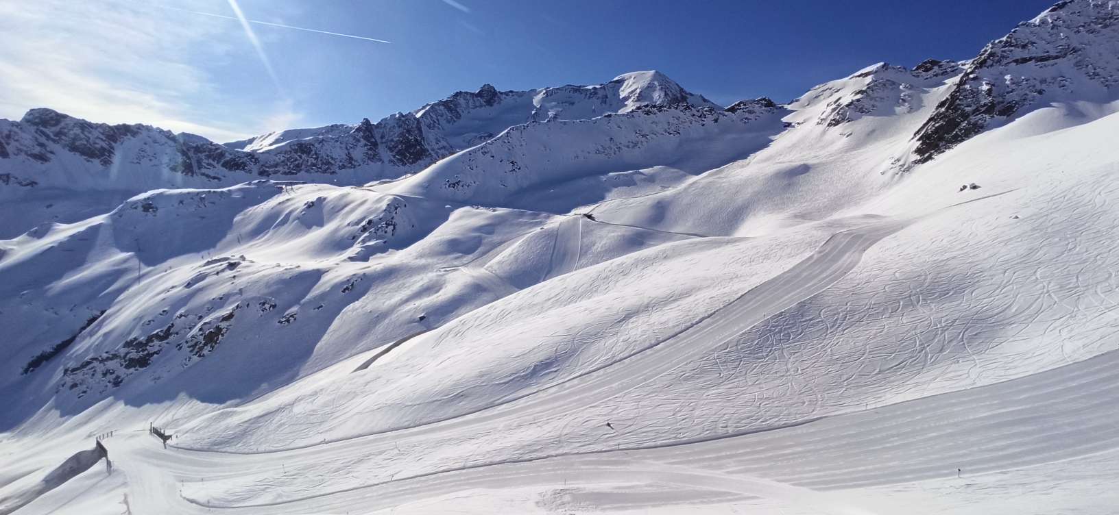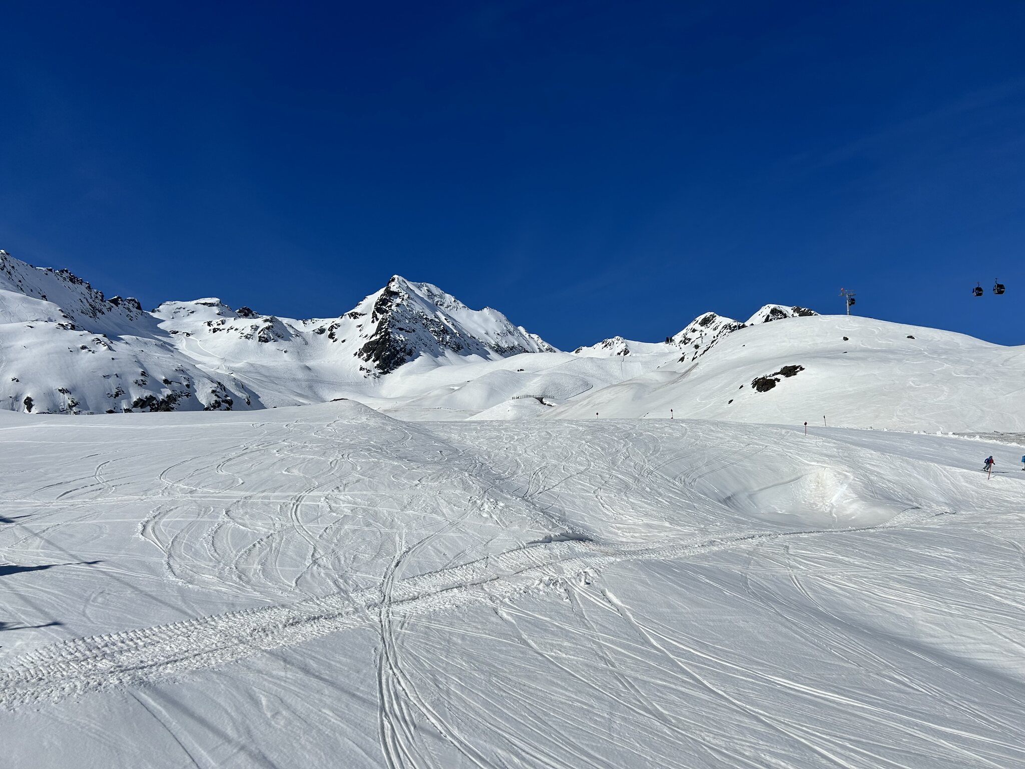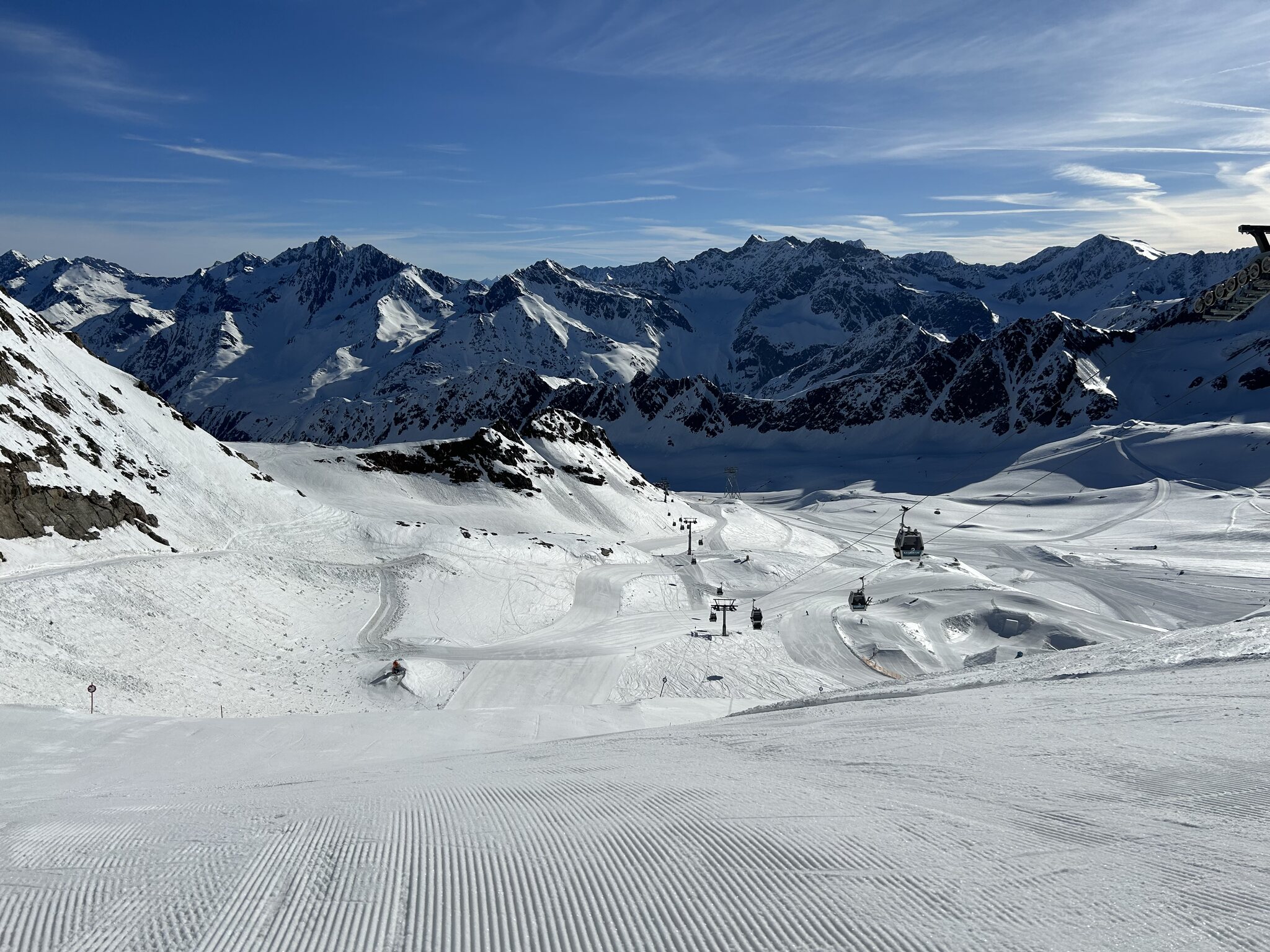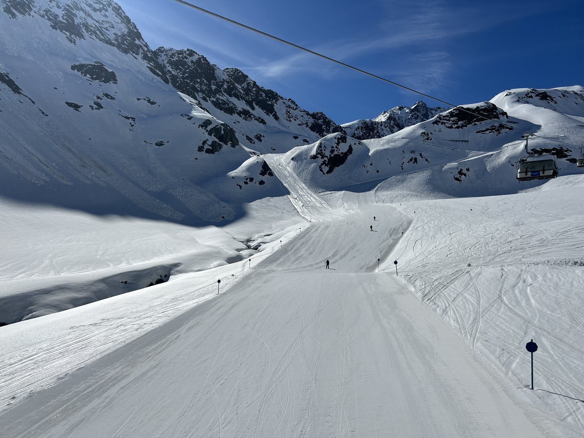 Die Pisten waren kaunertaltypisch gut bis perfekt präpariert mit leichten Abzügen, da hinter Kuppen teils eingewehter Schnee lag vom gestrigen Föhn.