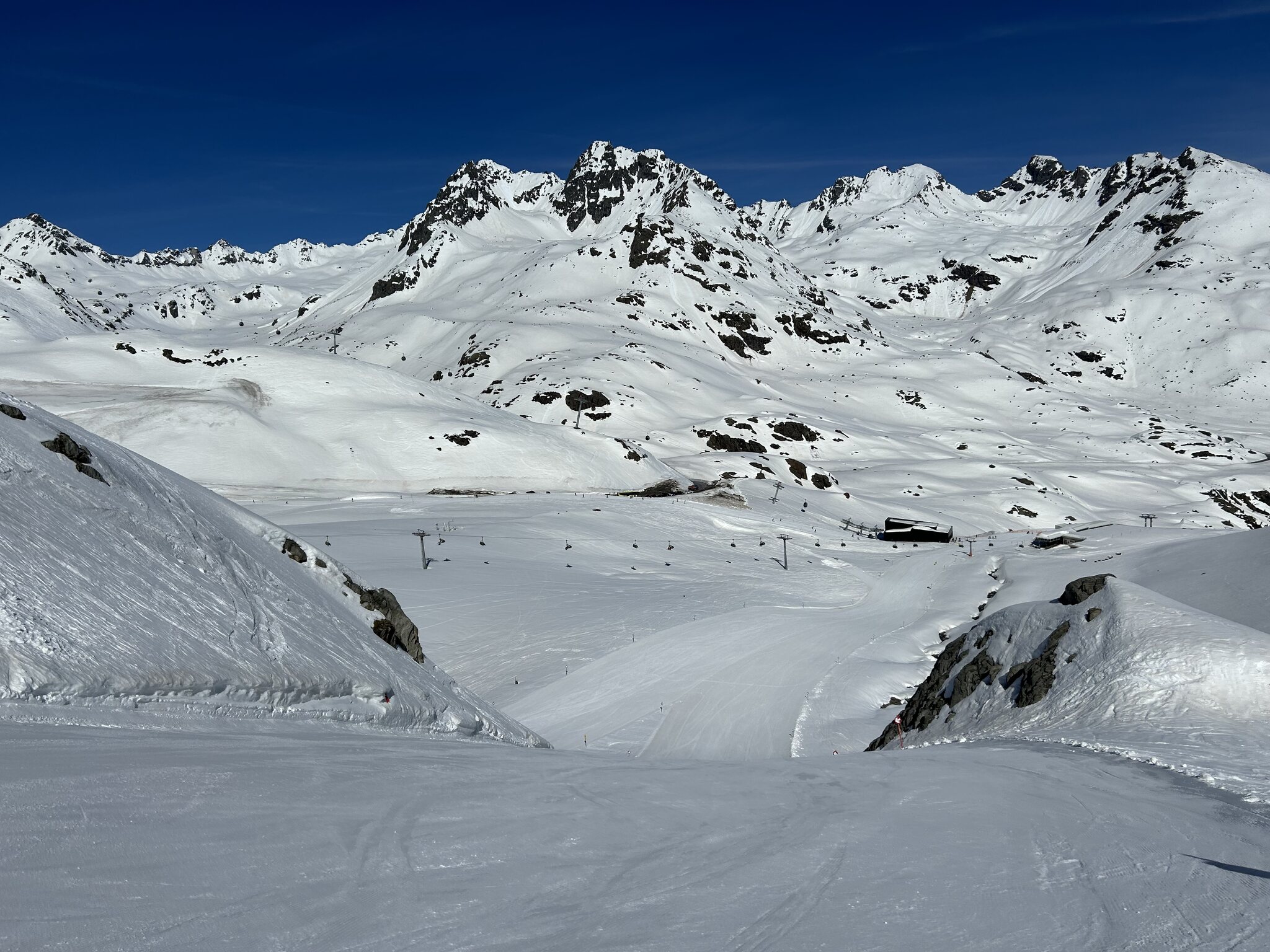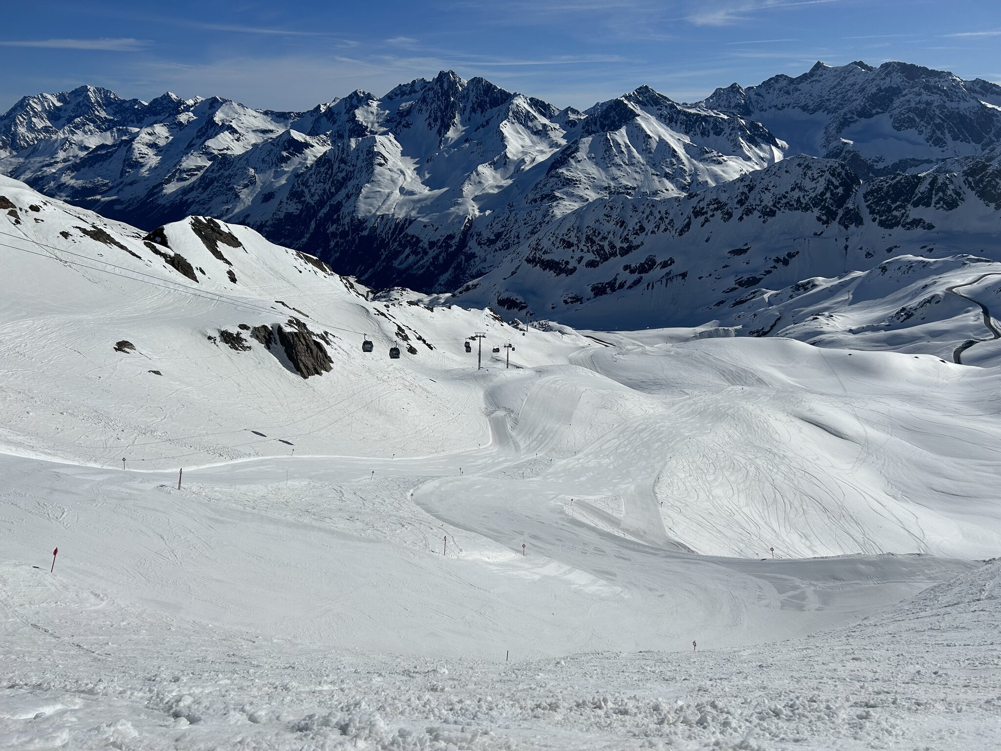 Das Skigebiet sieht mich wieder! Im Zeitraum SA-MO (06.-08. April) vor Ort gewesen, im Tal stellenweise 26°C, aber nachts hat es oben immer gefroren. Selbstverständlich keine Wartezeiten, zu keiner Uhrzeit erlebt.