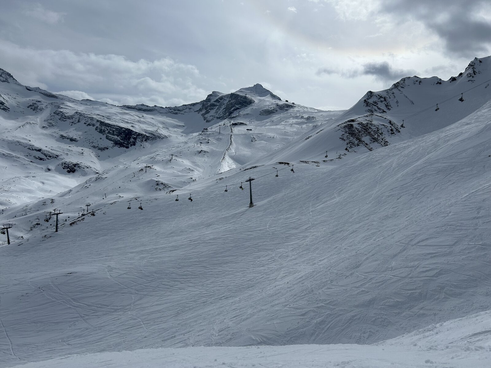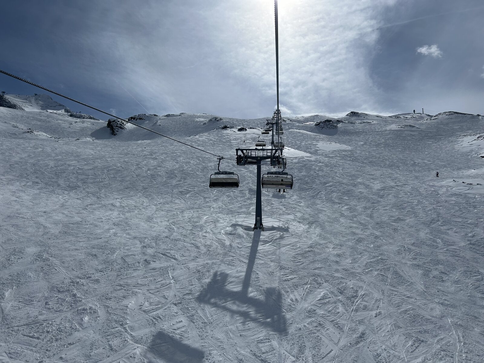 Die Olperer-SL waren am frühen Vormittag noch offen, später dann wieder zu (einige Pistenbullies waren dann am werkeln). GW SL zu - hier war alles sehr vereist und manche Bügel haben fast den Boden berührt, durch die Eislast vermutlich. Schlegeis leider ebenfalls nicht aufgegangen. Kaserer Bereich war aber wirklich genial! Besonder am Vormittag trauen sich nur wenige Skifahrer in den Schattenbereich.