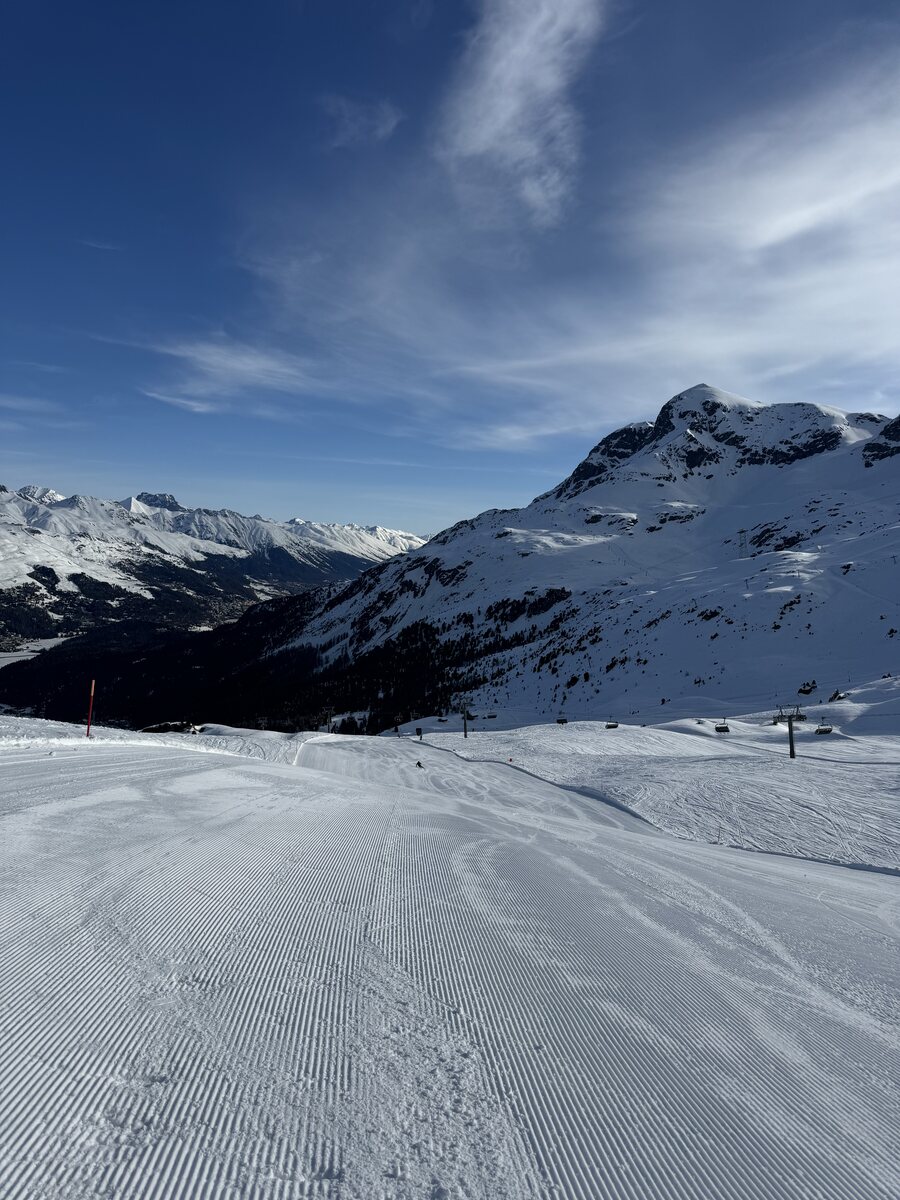 Aber die Giand‘Alva Direkt-Piste ist zwar ebenfalls kurz, macht mir aber durchaus Spaß. Weihnachten als Giand‘Alva schon offen war, aber die Hahnensee noch geschlossen war, bin ich Giand‘Alva an meinen zahlreichen Corvatsch-Tagen immer 1x gefahren. Aber nicht nur wegen der Piste, auch wegen der grandiosen Aussicht. Wäre der Lift schneller, hätte ich mir auch die eine oder andere Wiederholungsfahrt gegönnt. Aber der ist schon extram langsam.
