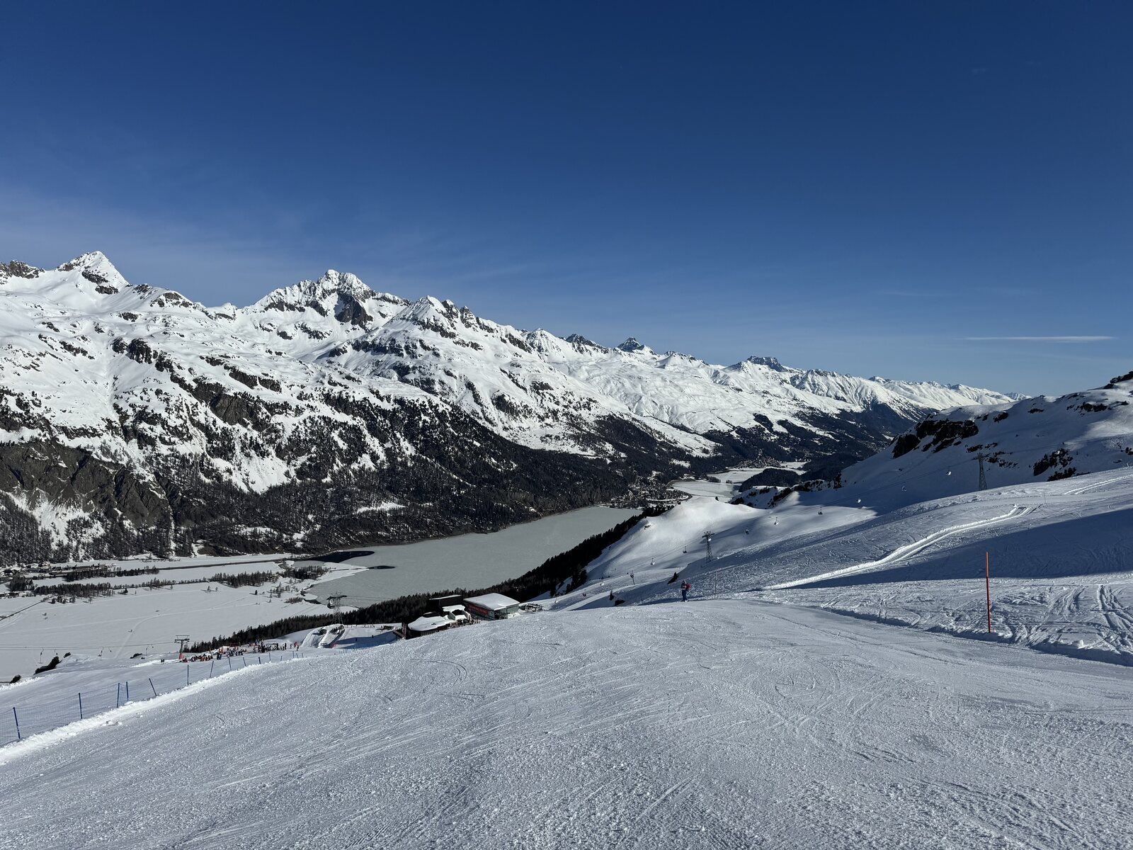 Ich meinte mit Rabgiusa nicht nur die Piste, sondern auch die Möglichkeit des Wechsels zwischen Furtschellas und dem Corvatsch, ohne den Ziehweg nehmen zu müssen. Ich fand ihn zwar heute wegen des Panoramas ganz schön, wenn ich da aber mehrere Tage fahren würde, würde ich mich schon über einen schnelleren Rabgiusa freuen.