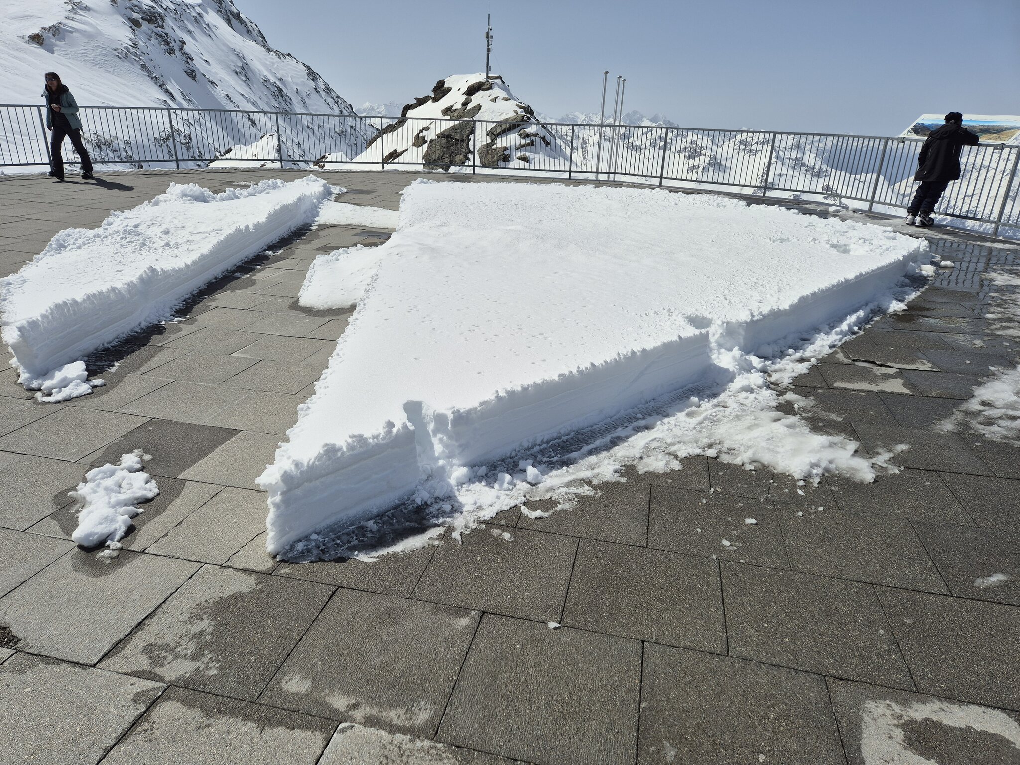 Und auf Duavolezza war gegen Mittag auch die Morteratsch offen. (Im Laufe des Nachmittags scheint sie wegen der Hitze dann wieder geschlossen zu werden, und auch morgens etwas später zu öffnen). Auch die Sesselbahn läuft noch