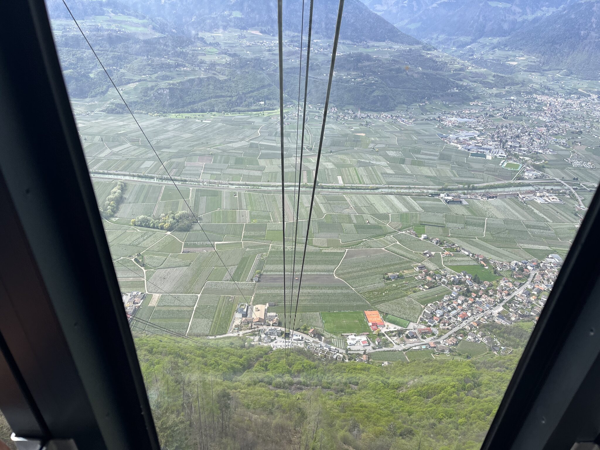 Die Anreise aus dem Aargau erfolgte durch den Arlbergtunnel und über den Reschenpass mit der Idee, ab Mals Bahnhof auf die Bikes umzusteigen, bis Meran zu rollen und einer (ich) fährt dann mit der Bahn zurück das Auto holen. Gesagt getan, nur leider war erst einmal nix mit rollen - zwischen Schludern und Laas geht es 20 km eher eben dahin, woraus der starke Gegenwind gefühlt eine Steigung gemacht hat. In Laas angekommen, haben wir erst einmal den Hungerast mit Apfelstrudel und Kuchen bekämpft und dann beschlossen, dass ich zurück fahre das Auto holen und der Rest der Familie weiter fährt bis nach Meran (nach Lass geht es dann doch recht lange nur bergab). Gegen 20:00 Uhr sind wir dann endlich in unserer sehr schönen Ferienwohnung in Meran angekommen.
