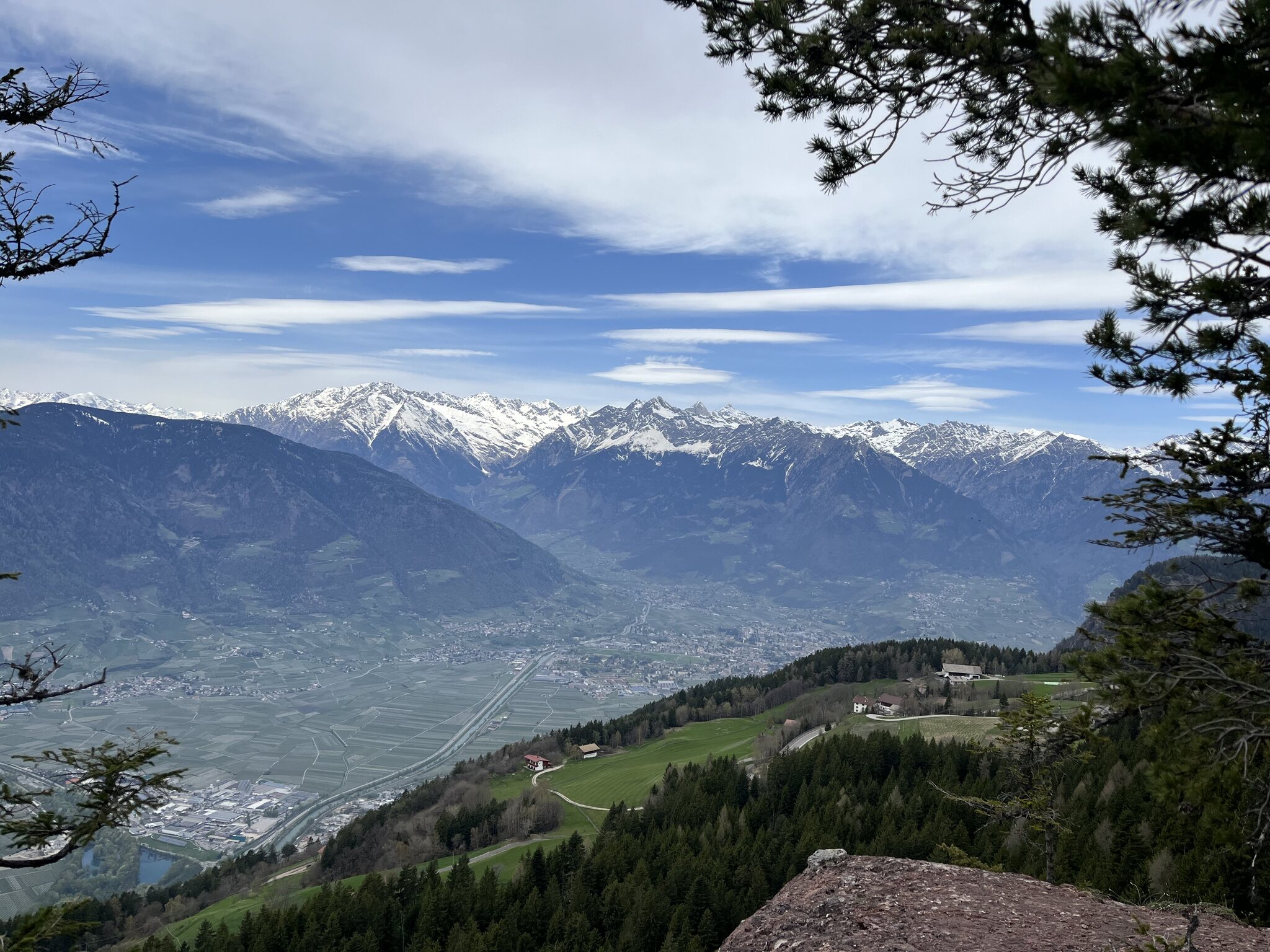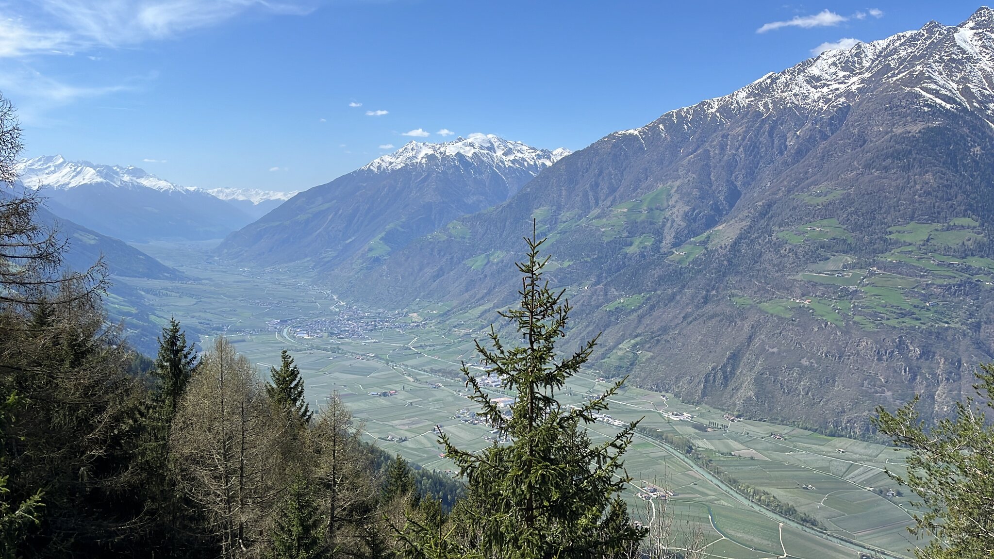 Die Zielfindung für unsere Frühlingsferien (Skifahren stand schon wegen meiner Frau nicht mehr auf dem Programm) war erst etwas chaotisch (von Kanaren Kreuzfahrt über Lissabon und Mallorca bis zum Schwarzwald) und am Ende aufgrund der Wettervorhersage recht spontan für Südtirol ausgefallen. Da in Deutschland die Osterferien vorbei waren, war es kein Problem auch kurzfristig eine Bleibe zu finden. Die Wahl viel auf eine Ferienwohnung in Meran und die Bikes kamen natürlich auch mit. Die Region kennen wir schon von einigen Urlaubstripps ganz gut, aber unser Vermieter hat sich fast mit Ausflugtipps überschlagen. Wir hatten angekündigt das wir mit den Bikes kommen, er war dann aber doch sehr überrascht das an denen kein Motor verbaut war…
