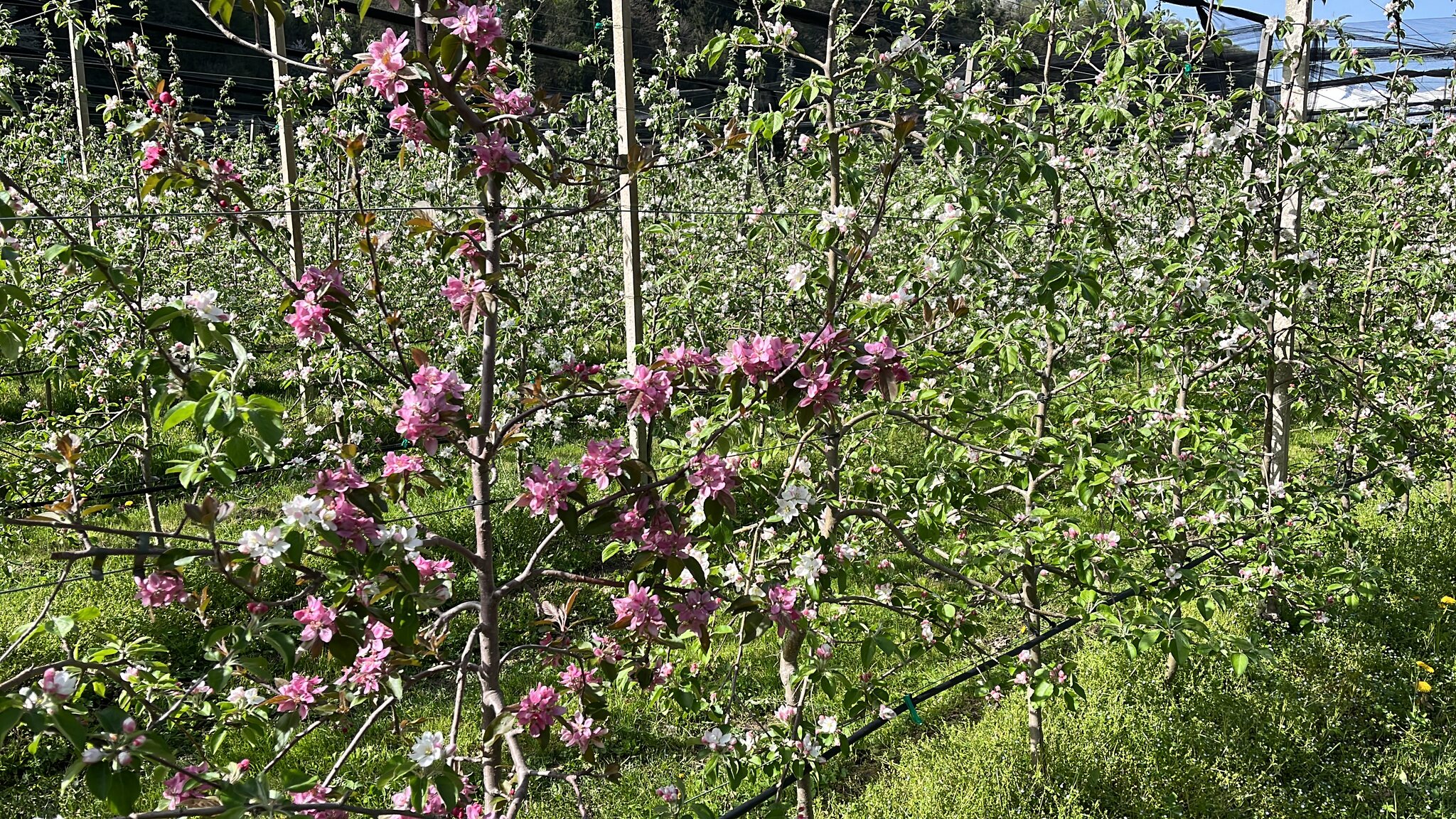Die rosaroten Blüten dürften Äpfel der Sorte Pink Lady sein, soweit ich informiert bin.