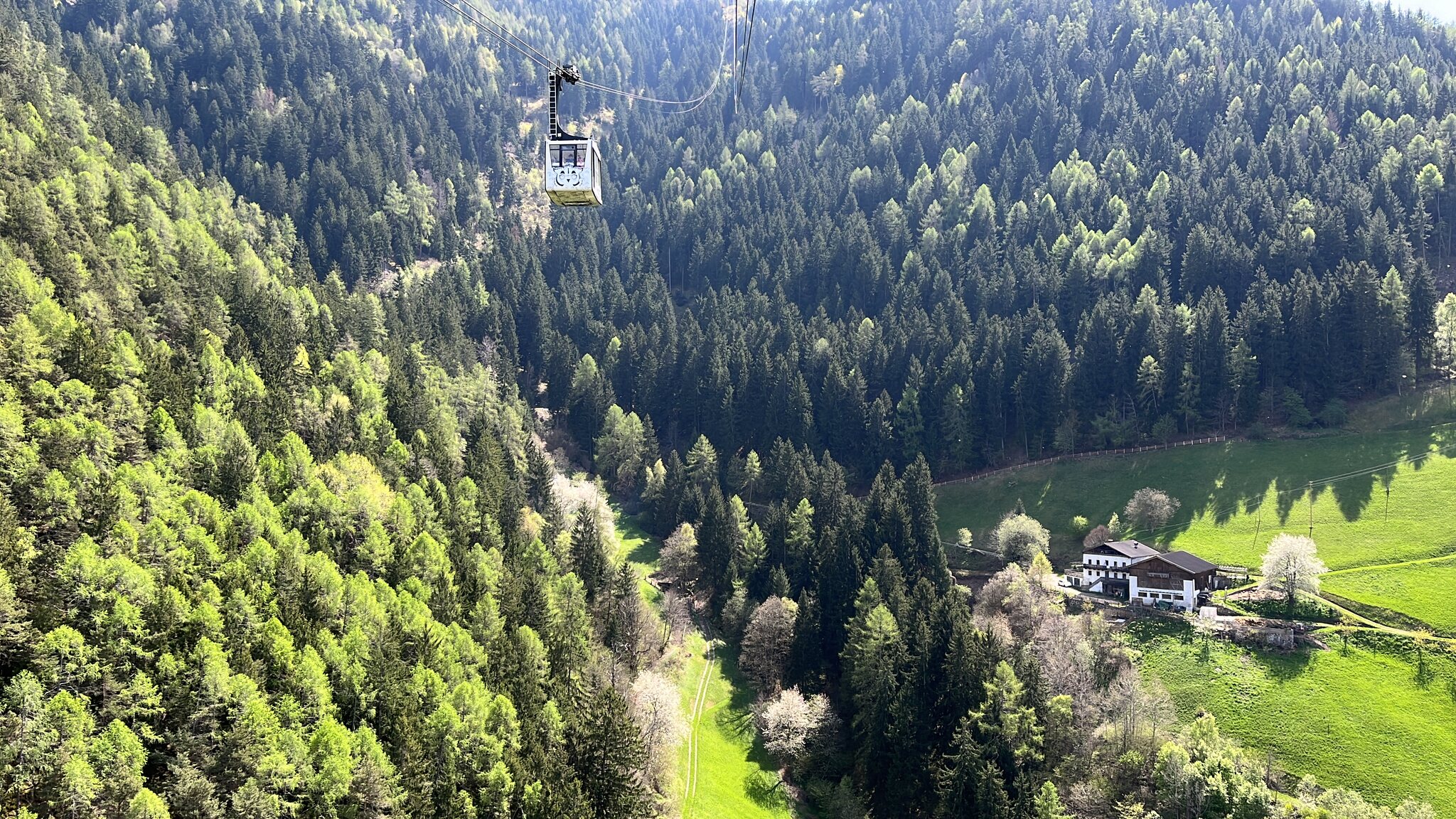 Ein Vorteil an einem Südtirol Urlaub ist die Gästekarte, die die Nutzung des gesamten öffentlichen Nahverkehrs der Region und einige Seilbahnen beinhaltet. Die Fahrradmitnahme muss man aber zahlen. So konnten wir uns auf unserer Rundtour zum Knottnkino 900 Hm sparen, die die Vöraner