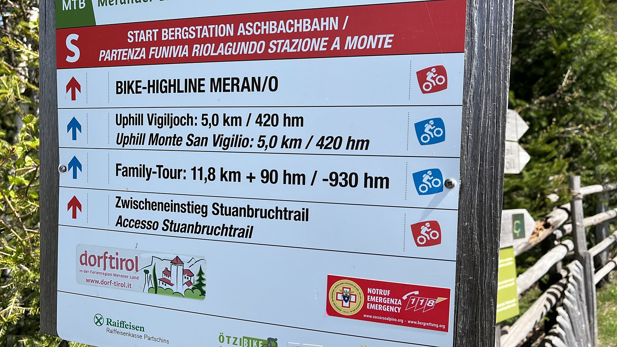 Fahrpreis für 4 Erwachsene + Bikes 56 Euro finde ich OK, dafür das sie uns 850 Hm erspart hat. Mit dem Hin- und Rückweg zur Bahn hatte die Tour 390 Höhen- und über 1200 Tiefenmeter, das ist doch Mal ein ordentliches Verhältnis. Auf dem Weg zur Seilbahn haben unsere Söhne bei Algund noch eine Pumptrack Session eingelegt.