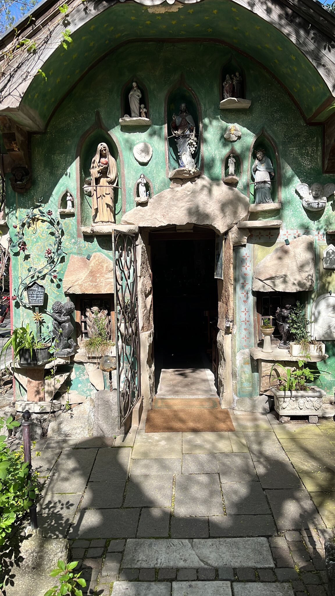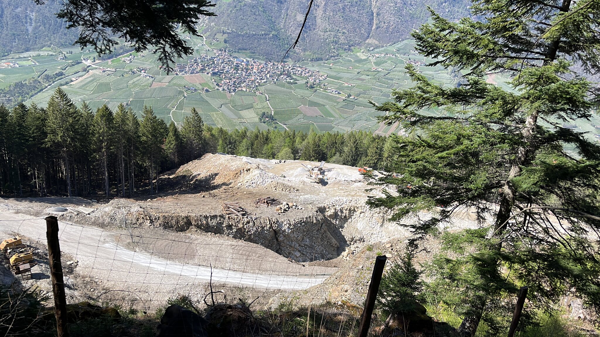 waren wir dann ganz alleine. Erst ging es noch einmal leicht bergan, was aber mit einer schönen Aussicht entschädigt wird. . Vom Steinbruch Trail habe ich nur ein Bild vom Namensgeber wo wir auch noch durchgefahren sind. Der Trail ist anspruchsvoll, überwiegend S3, da verschwindet das Handy im Rucksack. Im Anschluss an den Steinbruch Trail hat uns Komoot noch über einen Wanderweg, auch S2 Niveau, bis zur Talstation gelotst. Auch meine Frau hatte viel Spass auf der Family Tour, die wir auf dem Radweg zurück nach Meran nach dieser kuriosen Kapelle