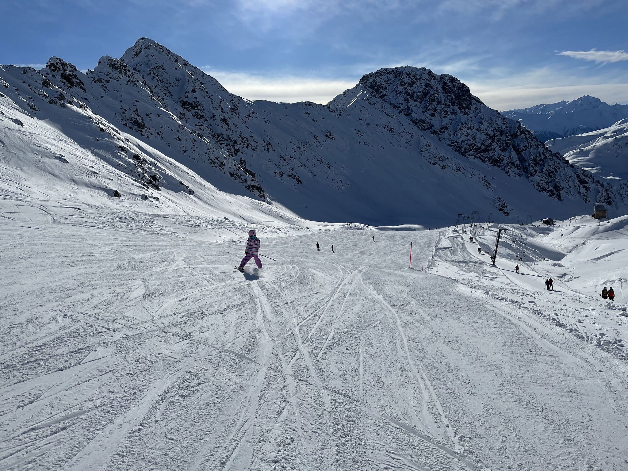 Heute war ich auf der Madrisa. War ganz erstaunt, dass um 08:30 erst 40 Autos parkiert waren und wir direkt in die Gondel einsteigen konnten. Vor einem Jahr hätten wir eine Stunde an der Talstation warten müssen.
