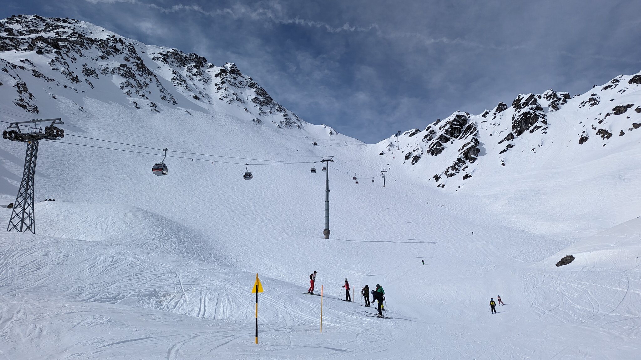 Viele Wintersportler gab es nicht auf den Pisten, einige sind abseits unterwegs gewesen oder kamen um die Teilnehmer der PDG anzufeuern. Schade um den Schnee, gegen eine Verlängerung der Saison hätte ich nichts. Auch wenn ich mir leicht wärmere Temperaturen wünschen würde (um die -10°C auf Attelas an allen Tagen, in der Sonne gefühlt wärmer, im Schatten kälter).