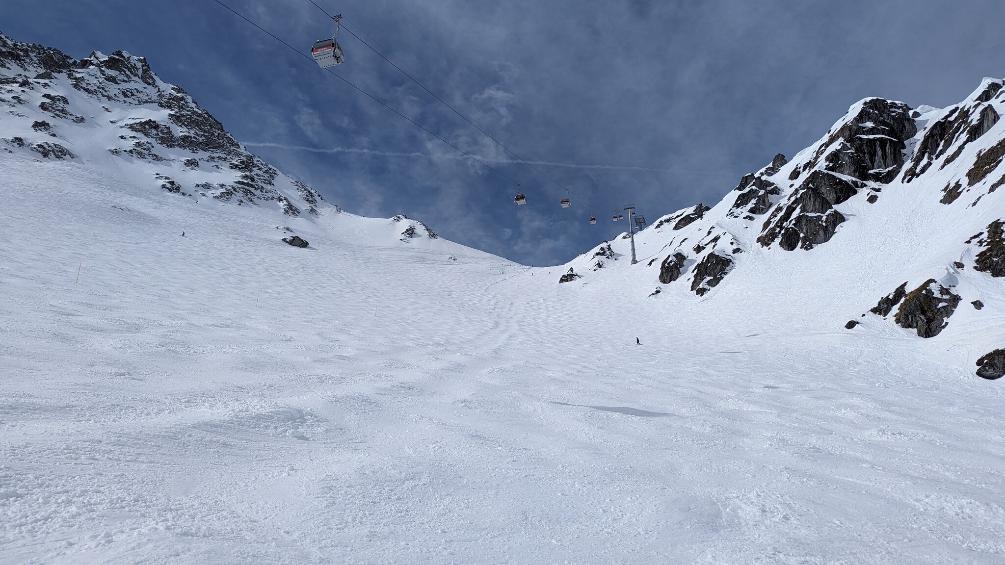 Dann zuerst rüber zu Matze, meine reguläre Piste zum Einfahren auch wenn der télémixte leider Müll ist. Es hat mich direkt überrascht wie leer und unverbuckelt alles war, obwohl ich spät angefangen habe. Dann etherolla und rüber nach Siviez, Greppon Blanc 2 stand, er war heute aber absolut nicht notwendig. In Siviez war auch nichts los, Combatzeline komplett leer, Tortin auch, 1 Gondel für Plan du Fou musste ich warten - geht schlimmer. In Nendaz zum ersten Mal den Alpage gefahren