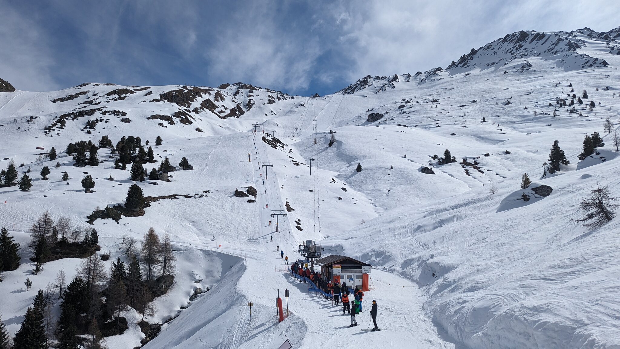 Auch wenn die Pisten "normal" bis wenig gefüllt waren, waren die Liftanlagen sehr leer. Da merkt man die grossen Kapazitäten der Anlagen.