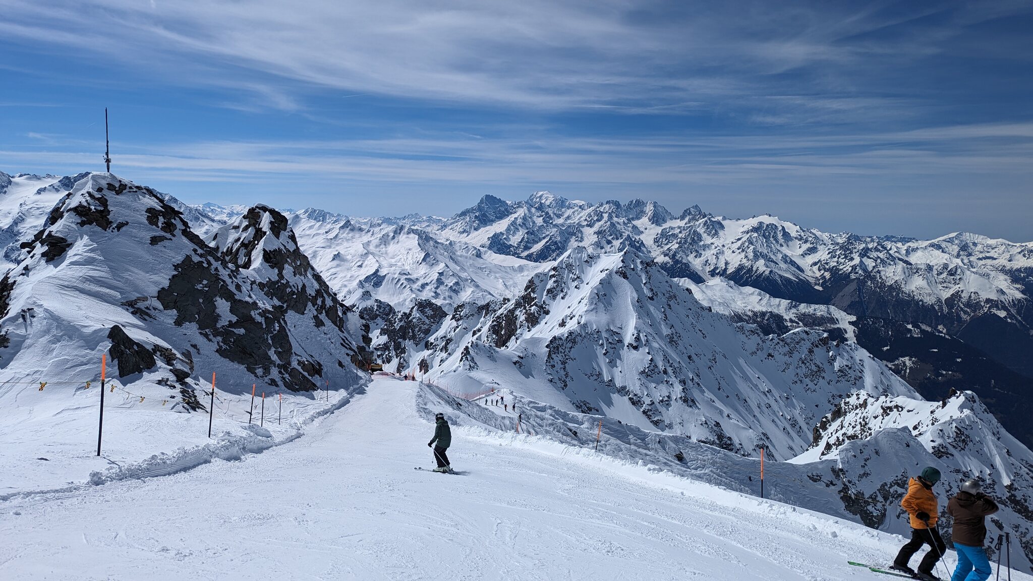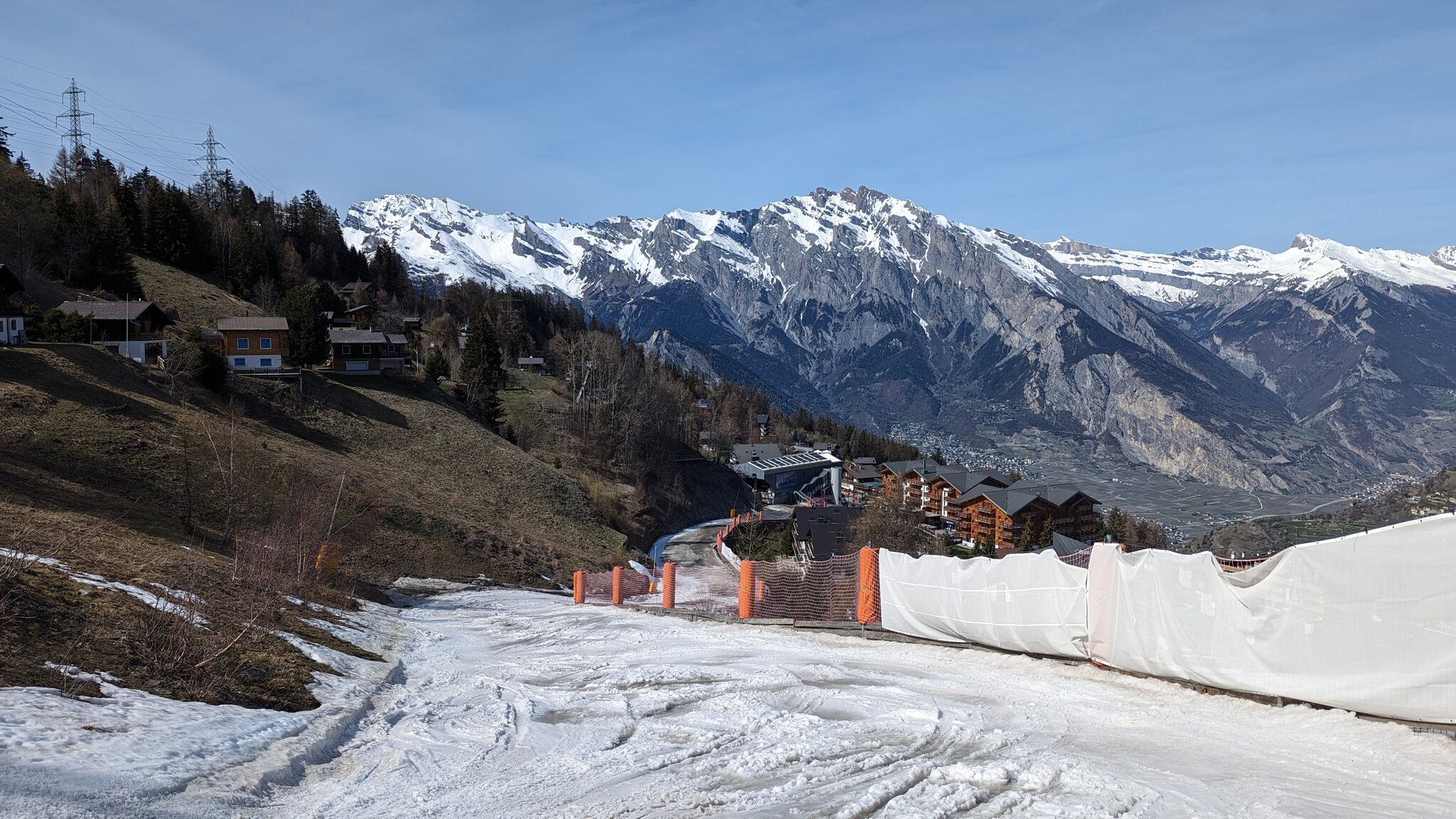 Gestern war ich in Nendaz für der Elektro-Festival Nendaz-Vibes. Die meisten der wichtigsten Pisten und Anlagen waren noch geöffnet. Ich habe um 9 Uhr in Nendaz mit dem Skifahren angefangen. Die Talabfahrt war am Morgen noch super, auch wenn sie jetzt nur noch ein weißer Streifen mitten im Gras ist. Auch die rote Piste bis Prarion war nur noch ein dünner weißer Streifen. Wir fuhren über Siviez und dann über Veysonnaz. Die Piste von Les Chottes war immer noch toll. SBF Greppon Blanc war schon geschlossen. Die Piste von Les Mayens war fast bis ganz nach unten noch sehr gut. Die Etherolla hingegen war um 11 Uhr schon sehr nass und holprig. Wir fuhren dann zurück in Richtung Tracouet (Nendaz) und hielten am Plan du Fou zum Essen an. Danach, ab 14 Uhr, Nendaz-Vibes-Festival in Tracouet, sehr cool (abgesehen von dem ineffizienten Getränkeservice). Der Abfahrt nach Nendaz um 18:30 Uhr war... einzigartig.