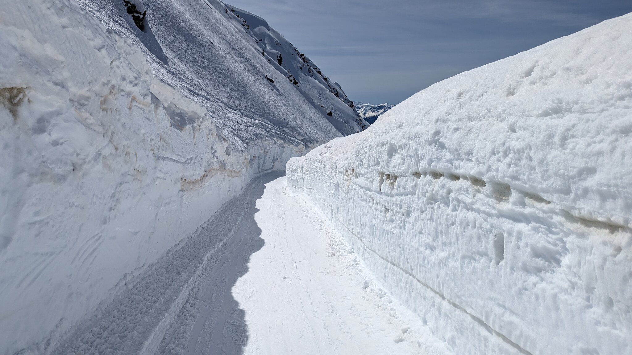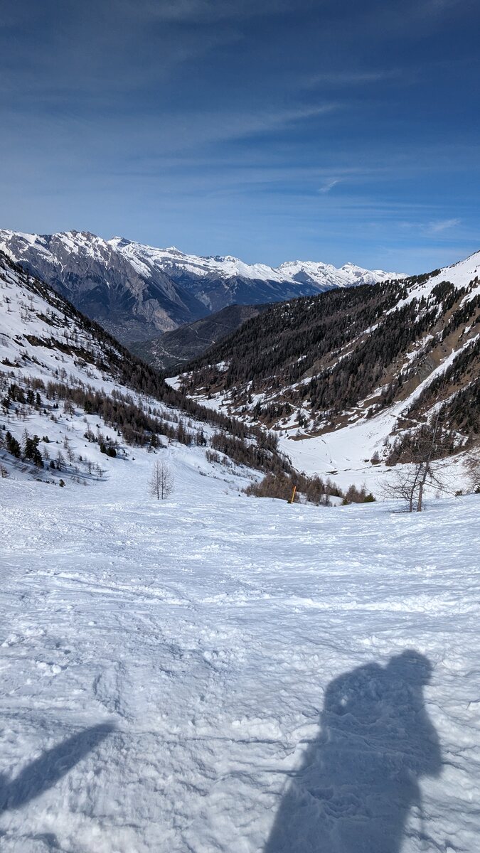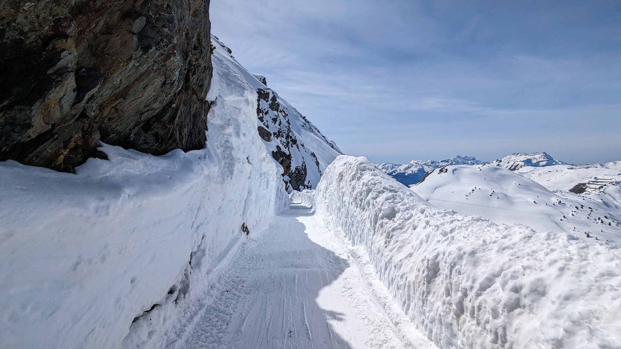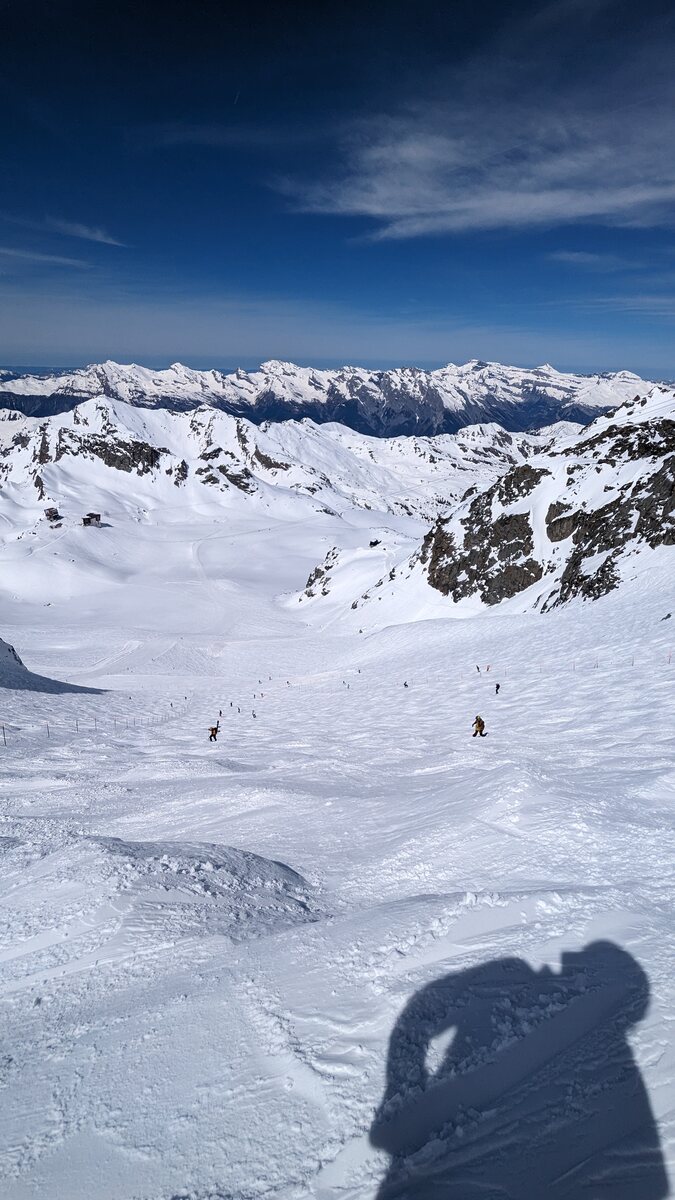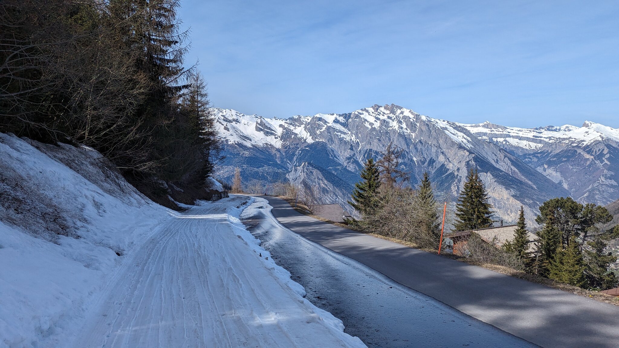 Leider war ab Mittag der Mont Gele geschlossen, und auch die Skirouten nach La Tzoumaz wegen offenbar Lawinengefahr. Davor war die Skiroute nach Tortin noch super gut zu fahren! Die Pisten sind sonst aber extrem weich geworden. Und dann sind wir doch noch den Eiskanal nach La Tzoumaz gefahren, oben super unten extrem weich und auf dem Ziehweg fast kein Schnee mehr.