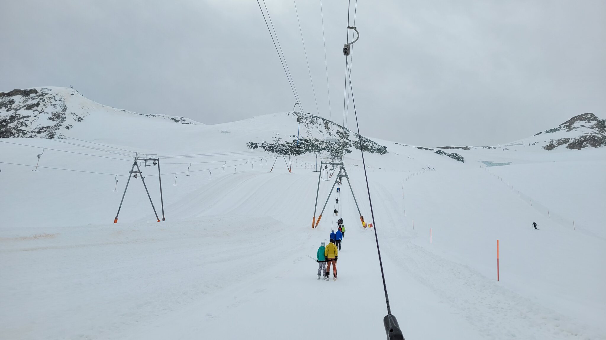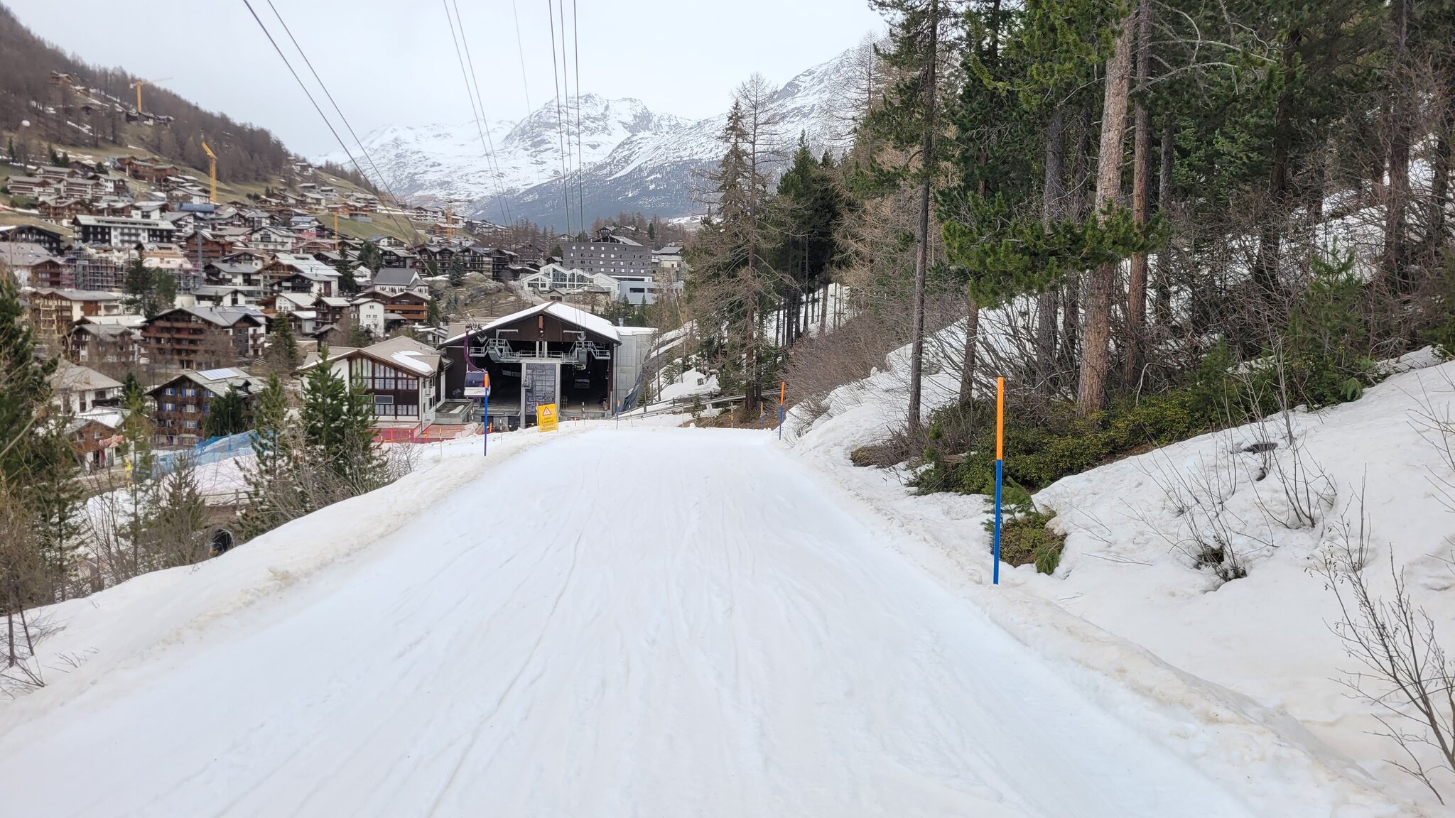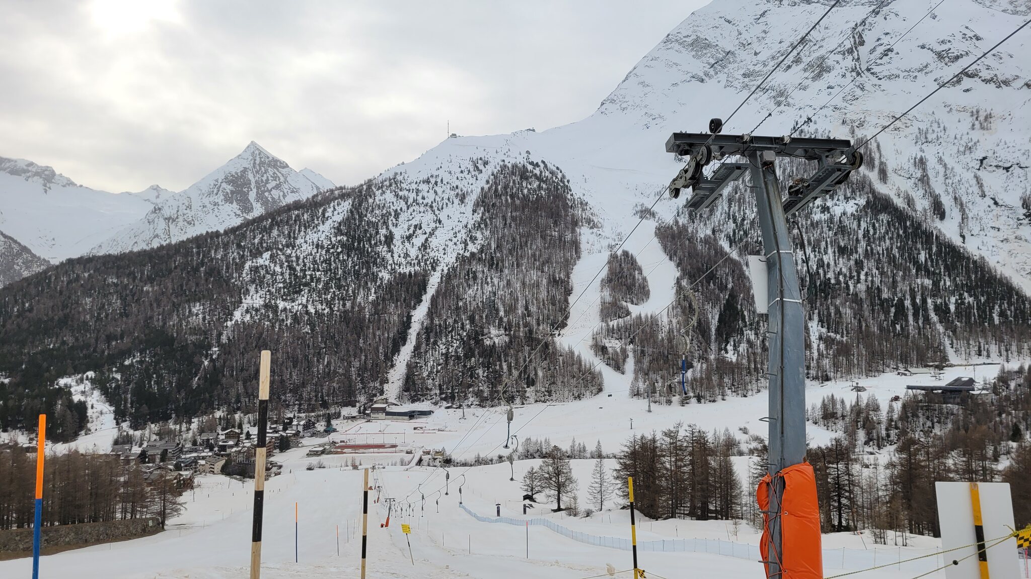 Eine weitere Merkwürdigkeit ist, dass das SL-Panorama an drei Stützen vor der üblichen Ausfahrt endet. Ich glaube nicht, dass das mit dem Rennen zusammenhängt (vielleicht hat sich eine Gletscherspalte gebildet?) Das Problem ist, dass man nicht bis Allalin 4/5 weiterfahren kann.