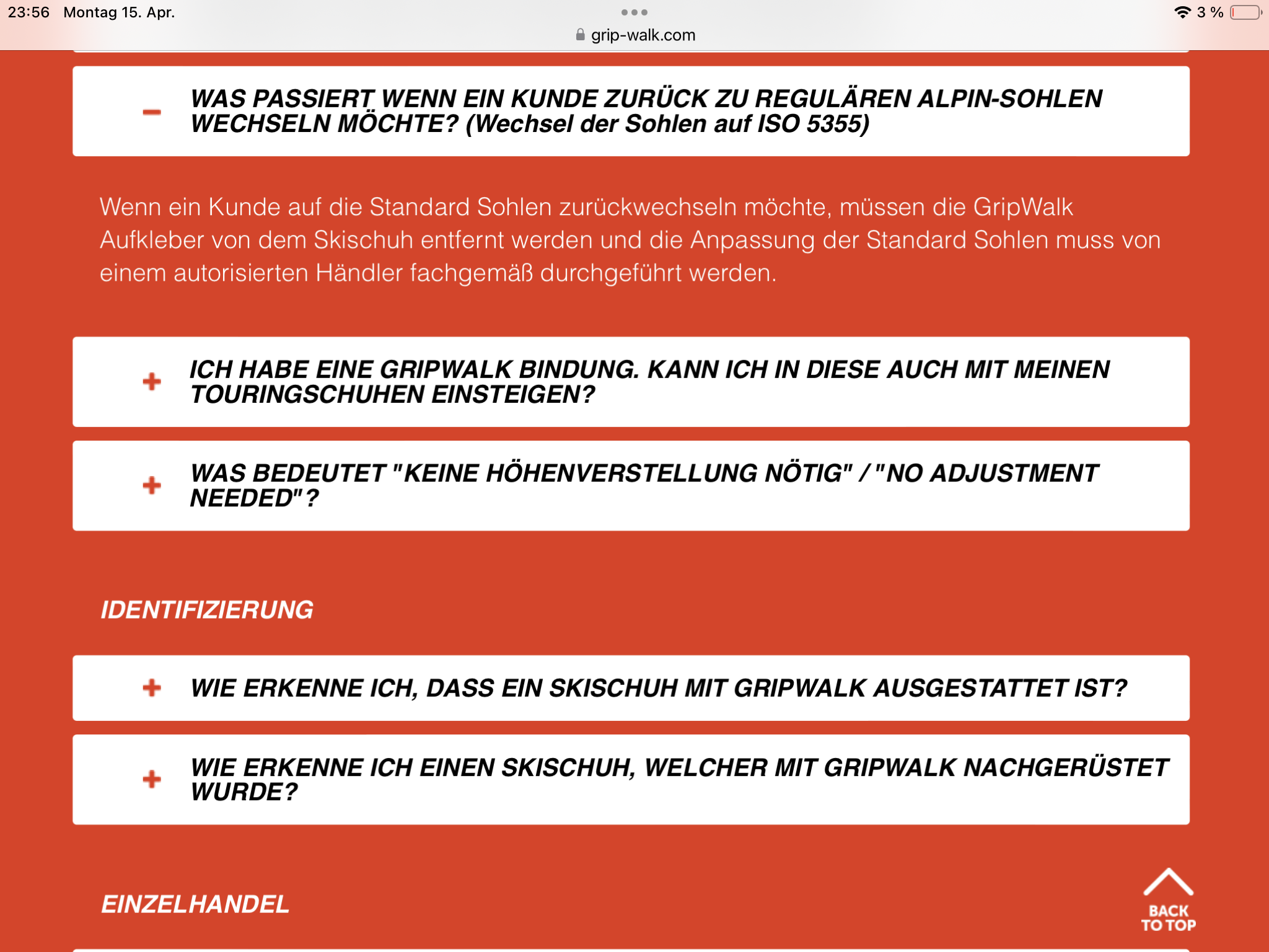 Blöde Fragen gibts nicht.mic hat geschrieben: 15.04.2024, 23:50 Mal nee blöde Frage. Vielleicht verstehe ich es nicht. Wir haben Gripwalkschuhe in einer „alten Bindung“. Natürlich hab ich die Sohlen tauschen lassen. Wenn ich 500,- aufn Tisch lege möchte ich Schuhe die da auch reinpassen und weder neue Ski noch eine Bindung kaufen. Die Grip Walk Sohlen haben wir natürlich auch. Geht das bei Rennschuhen nicht tauschen?