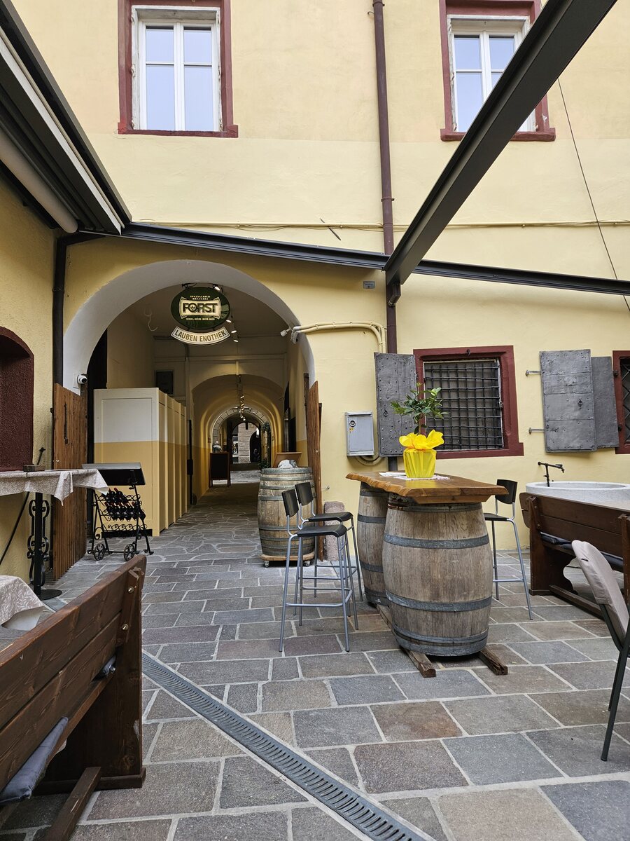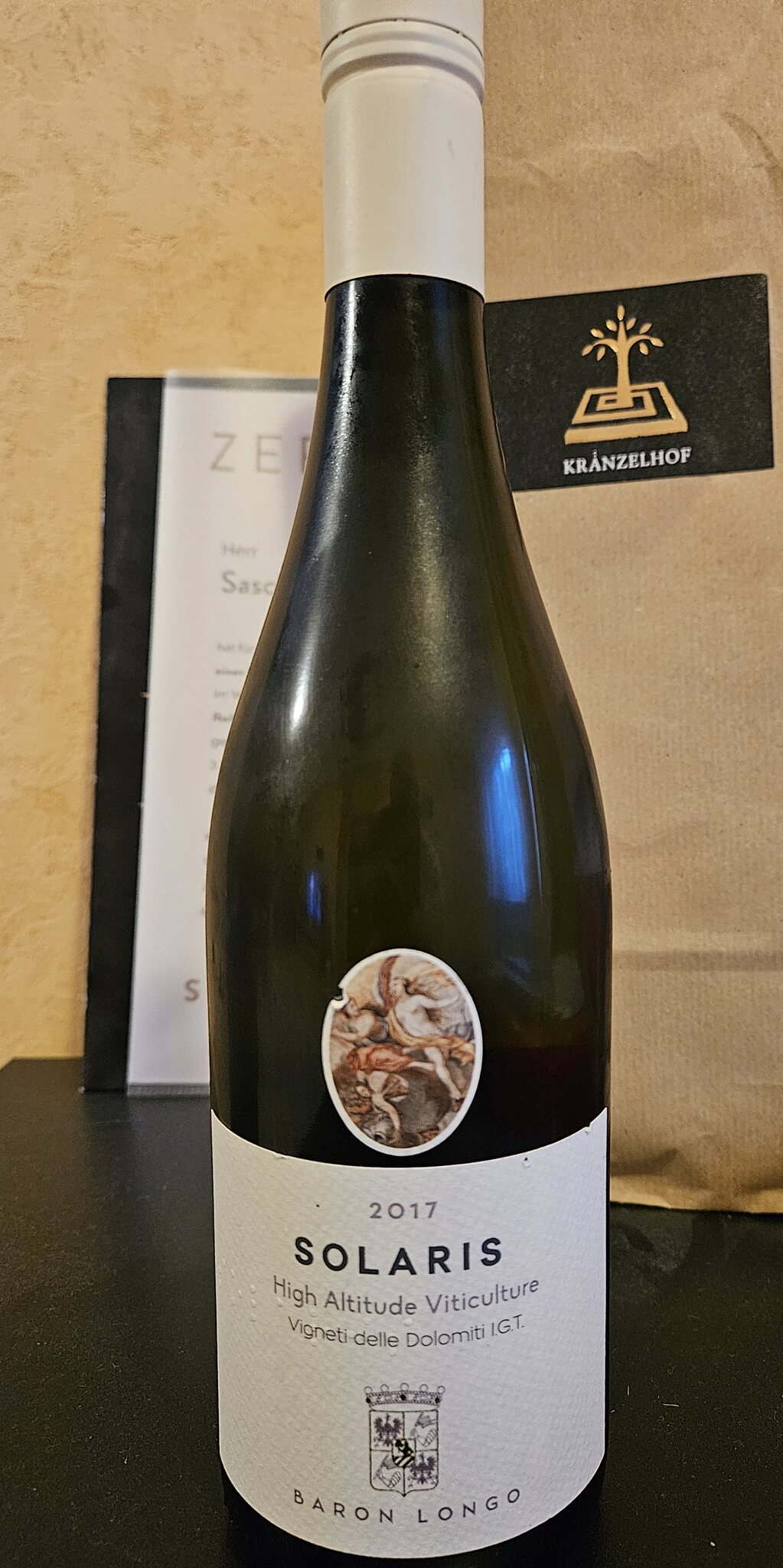In der Bar bleibe ich experimentell und trinke einen feinherben Solaris Sichlburg mit 12,5 Vol% aus dem Jahrgang 2018 von Baron Longo in Neumarkt. Die Reben wachsen wohl auf rund 1.000m; die frische Säure und Steinobstaromen erinnern fast an Riesling aus dem mittleren Rheingau. Das ist zum Abschluss ein gelungenes Experiment![]()
