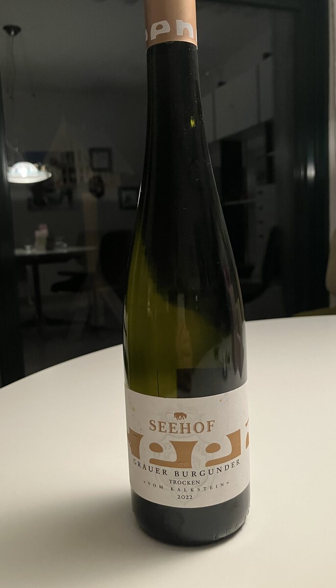 Bei mir ist heute Abend ein 2022er Grauer Burgunder vom Weingut Seehof im Glas. Mein Bruder hat ihn mir von einer Weintour mit Freunden in der Pfalz und Rheinhessen mitgebracht.