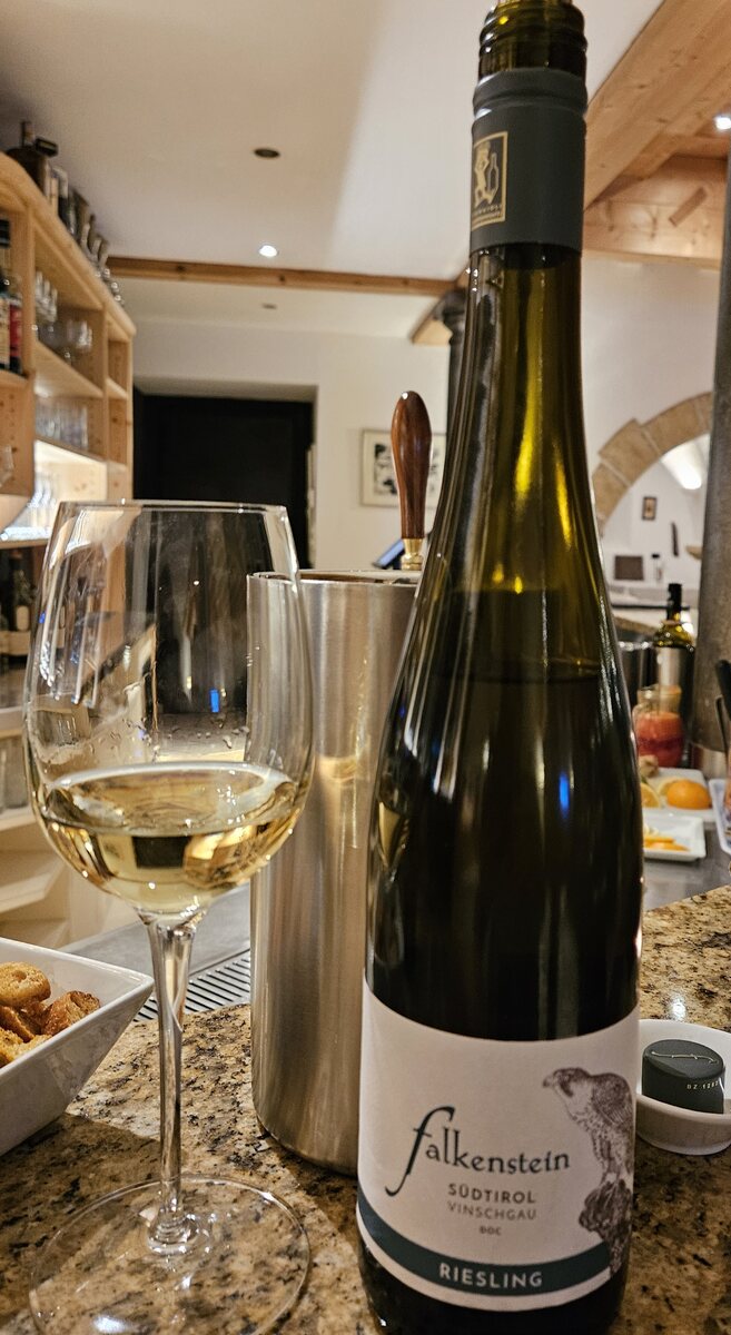 Jetzt in der Bar Riesling Castel Juval aus 2020 mit 13 Vol%, der die Erwartungen mit Steinobst und griffiger Säure wieder voll erfüllt