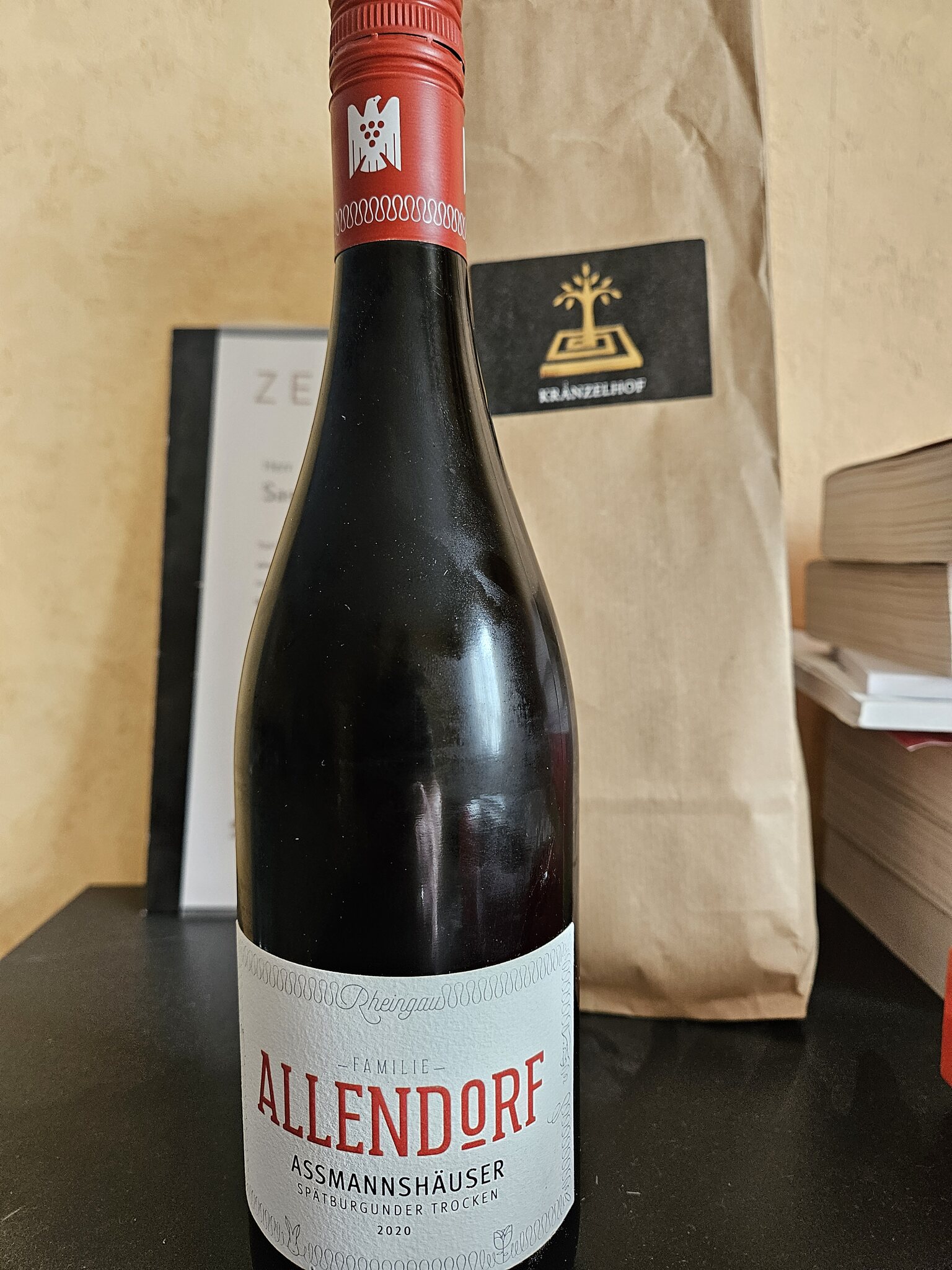 Nach Grilleinsatz beim Jugendfußball, einem holprigen Spargelessen am Sonntag (wir hatten die angepeilte, aber völlig überforderte Adresse in Kostheim nach der Ansage "Mir hadde heud middach 68 Essen, desdewesche dauerd des Esse jeddzt wenischtens e Stund" verlassen wurden aber in Hochheim beim Preis glücklich), gab es zum Wochenendabschluss zu Hause den dritten Wein aus der Bestellung beim Weingut Allendorf in Oestrich-Winkel: