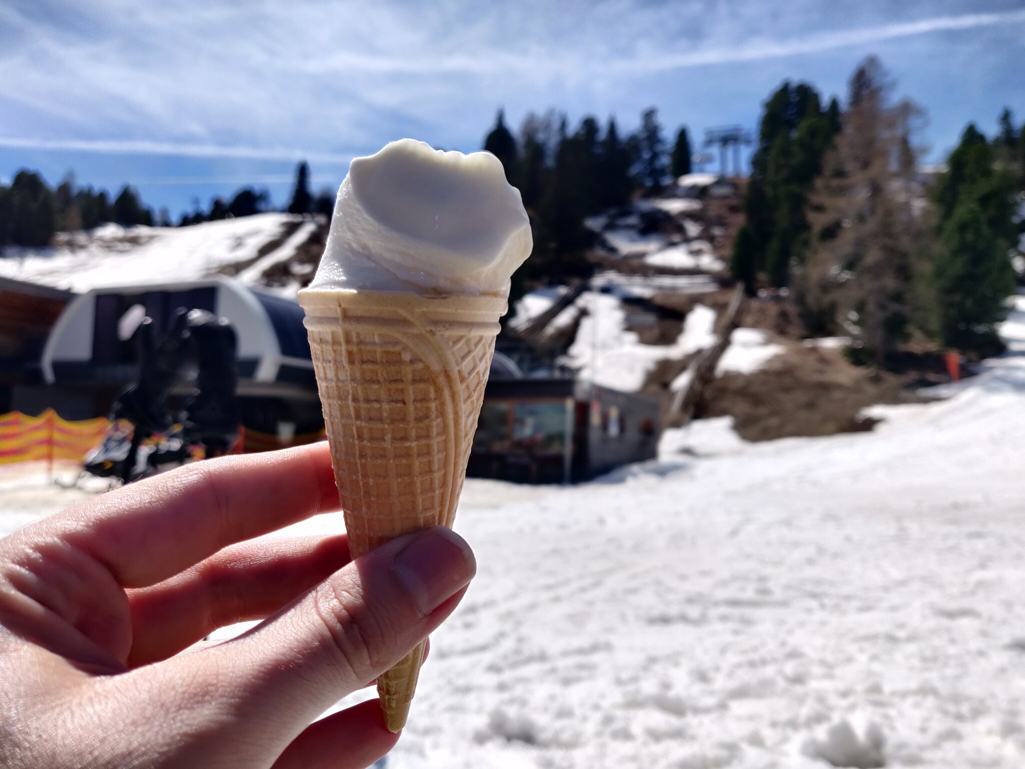 Achja und das Eis (und wenn man wollte auch nochmals Sekt) gab es dann heute an der Talstation der Kornockbahn. Hier hätte bestimmt auch jeder Nichtskifahrer eines bekommen, kontrolliert wird hier nichts.