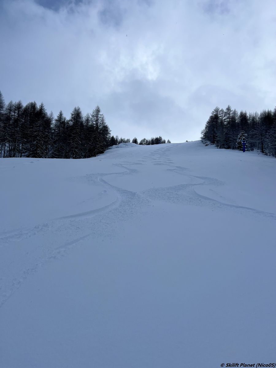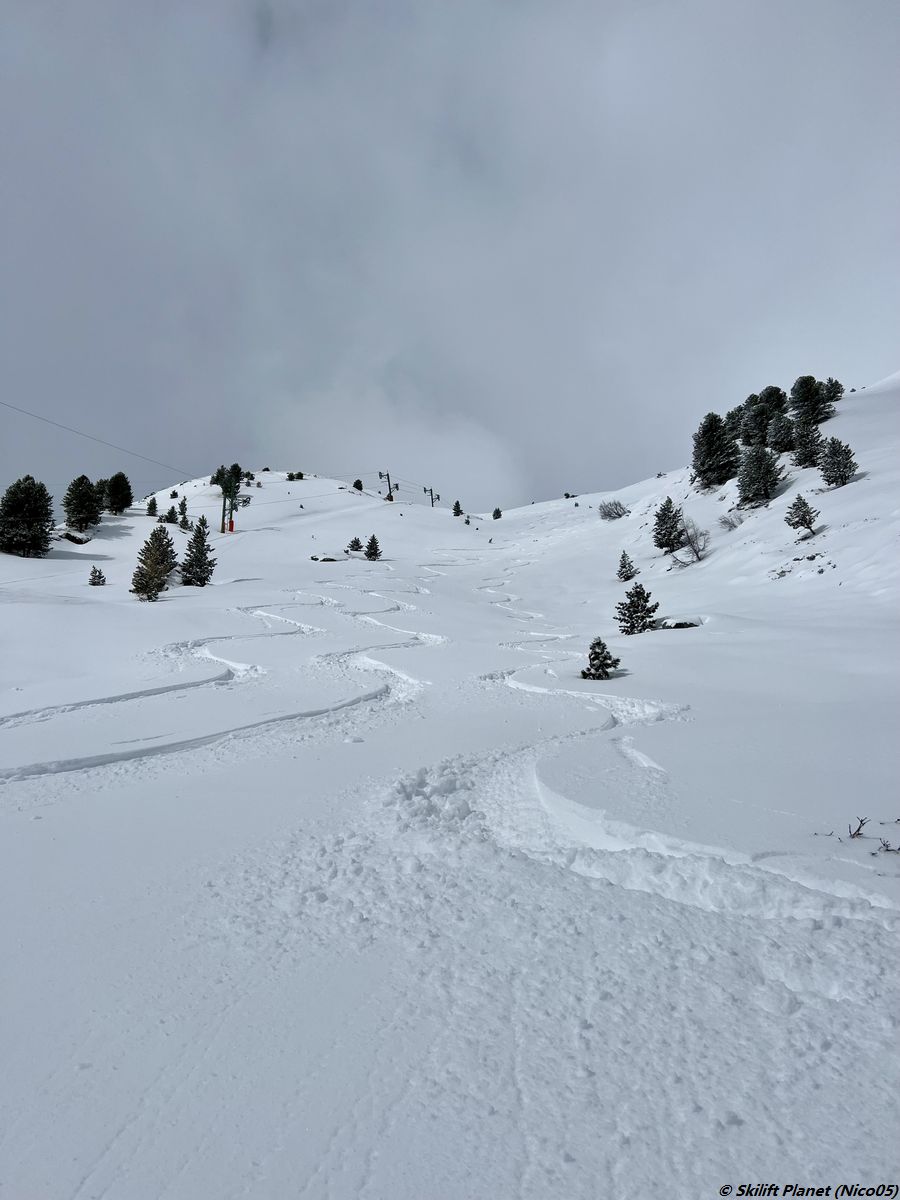Heute Morgen waren die Bedingungen wirklich super. Der Schnee war pulvrig. Ich fuhr zwei-drei Pisten auf Fontanesses 1 und stieg dann mit Tourenski auf in Richtung Fontanesses 3. Anfangs war es schön, aber dann verschlechterte sich die Sicht. Im unteren Teil war es aber immer noch super.