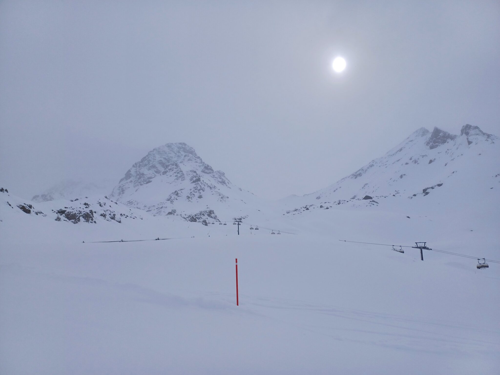 Vom Wetter her war alles dabei, teils diffuses Licht, teils starker Schneefall, kurz Sonne, teils Blindflug.