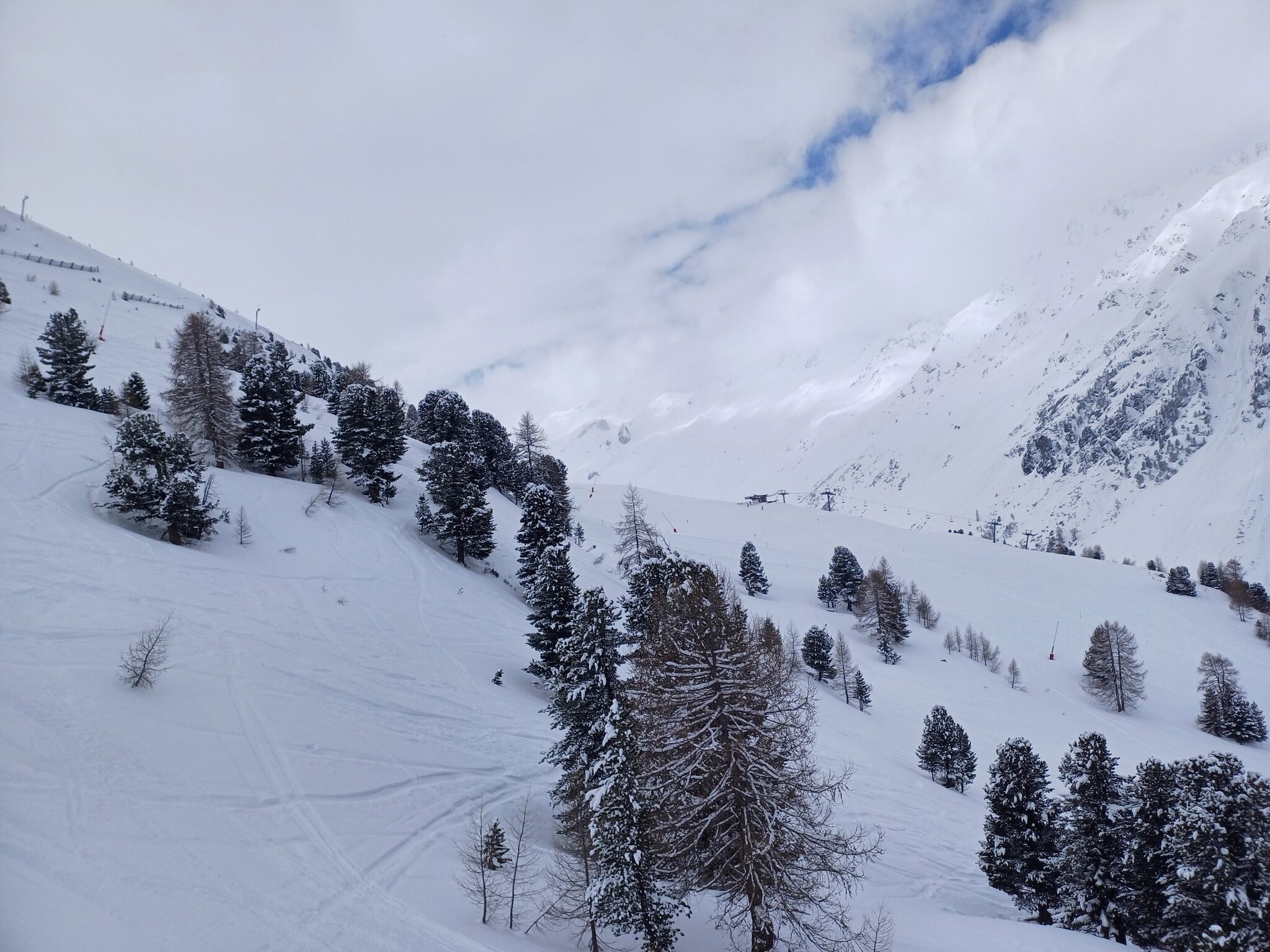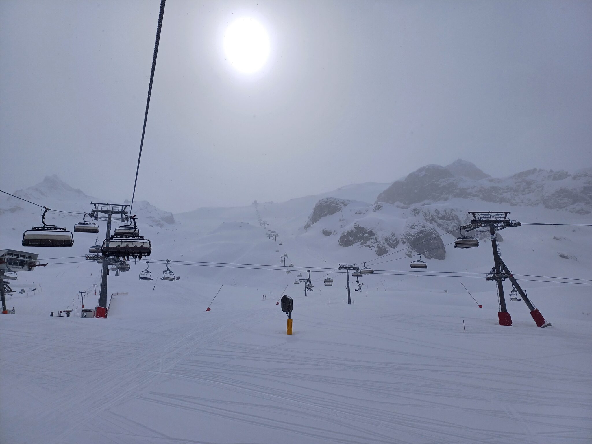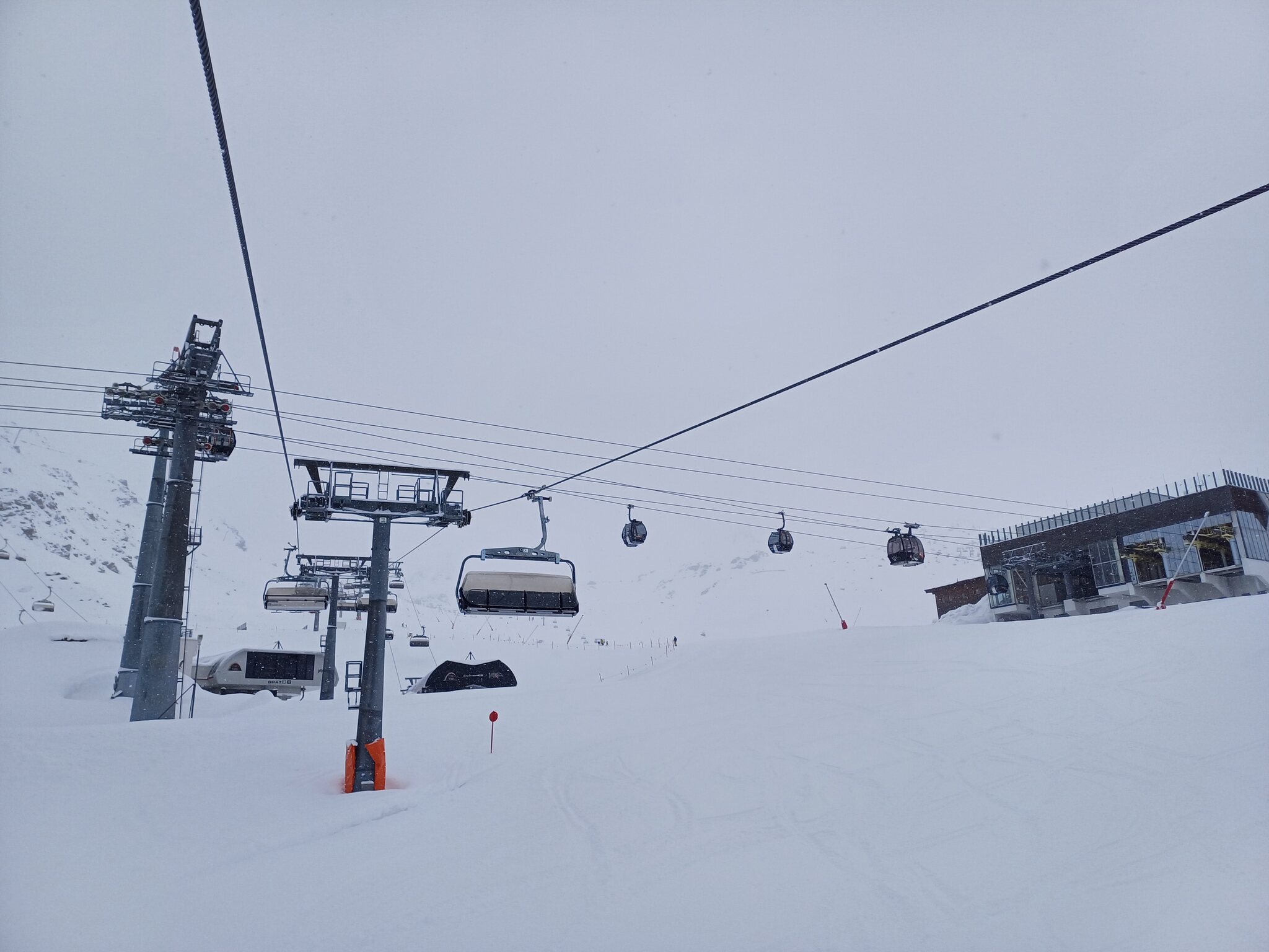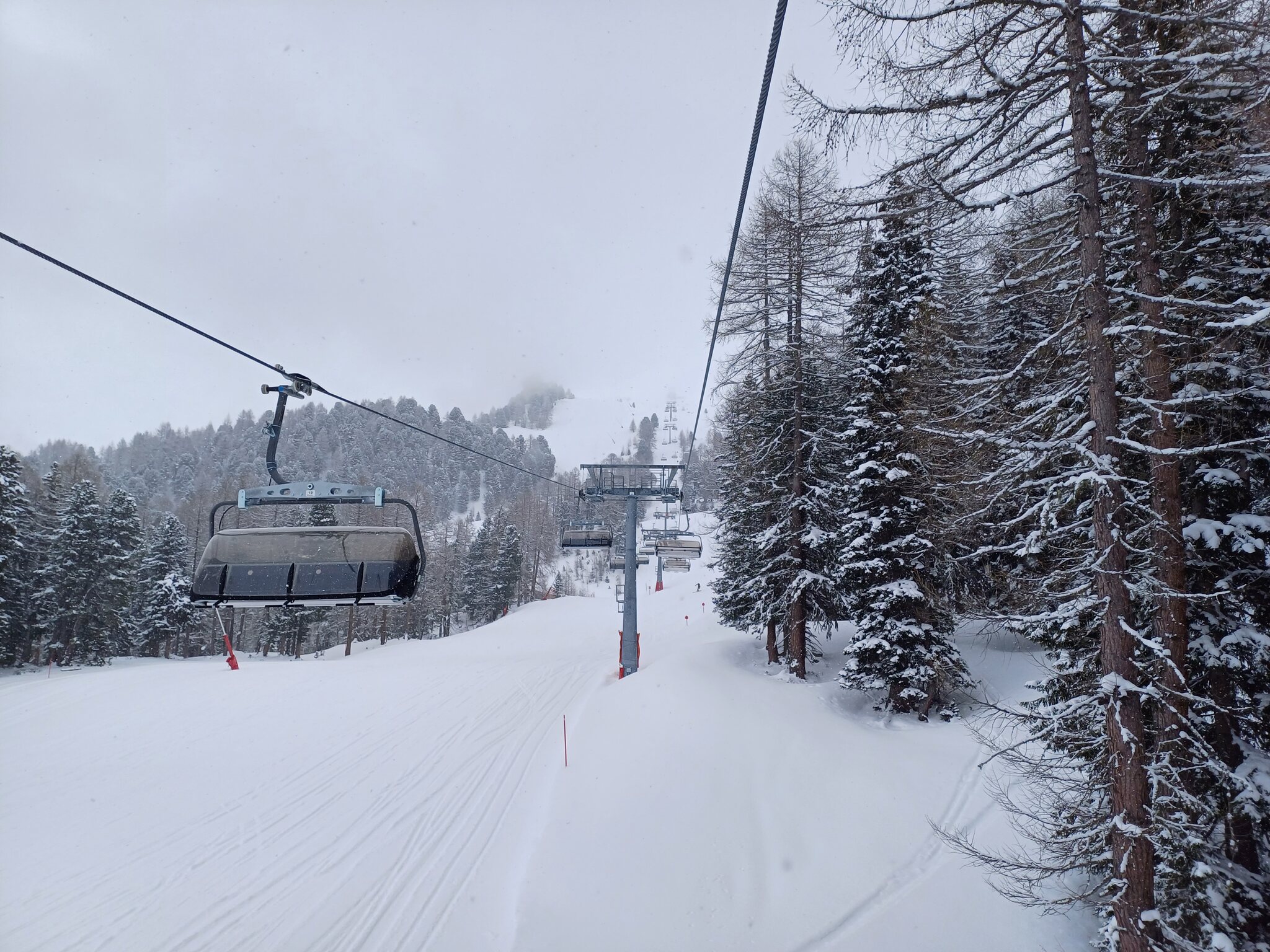 Krass finde ich, dass man trotz völlig fehlender Auslastung selbst redundante Bahnen laufen lässt, z.B. Idjoch, Fimba oder Zeblasbahn. Es war absolut tote Hose, teils gespenstisch. Das letzte Mal kann ich mich an so wenige Leute erinnern als das Gebiet im Jahr 2021 nach Corona wieder öffnete und in Österreich die Hotels noch geschlossenen waren. Ab Mittag wurde das Wetter deutlich schlechter. Bis Mittag teils gute Bodensicht und einige gute Powderlines gingen sich auch aus. Ab Nachmittag war die Sicht schlecht. Wir sind dann ausnahmsweise mal nach Laret runter. Hoffentlich wird die neue Bahn bald realisiert. Wobei ich bezweifle, dass die Piste die Menge an Leuten verträgt. Ist ja eher eine schmale Geschichte. Den Twinliner fuhr nur der Kabinenbegleiter mit. Fährt die Bahn auch mal im Personenbetrieb? Habe die Bahn noch nie offen erlebt, selbst wenn es am Twinliner erhebliche Wartezeiten hatte.
