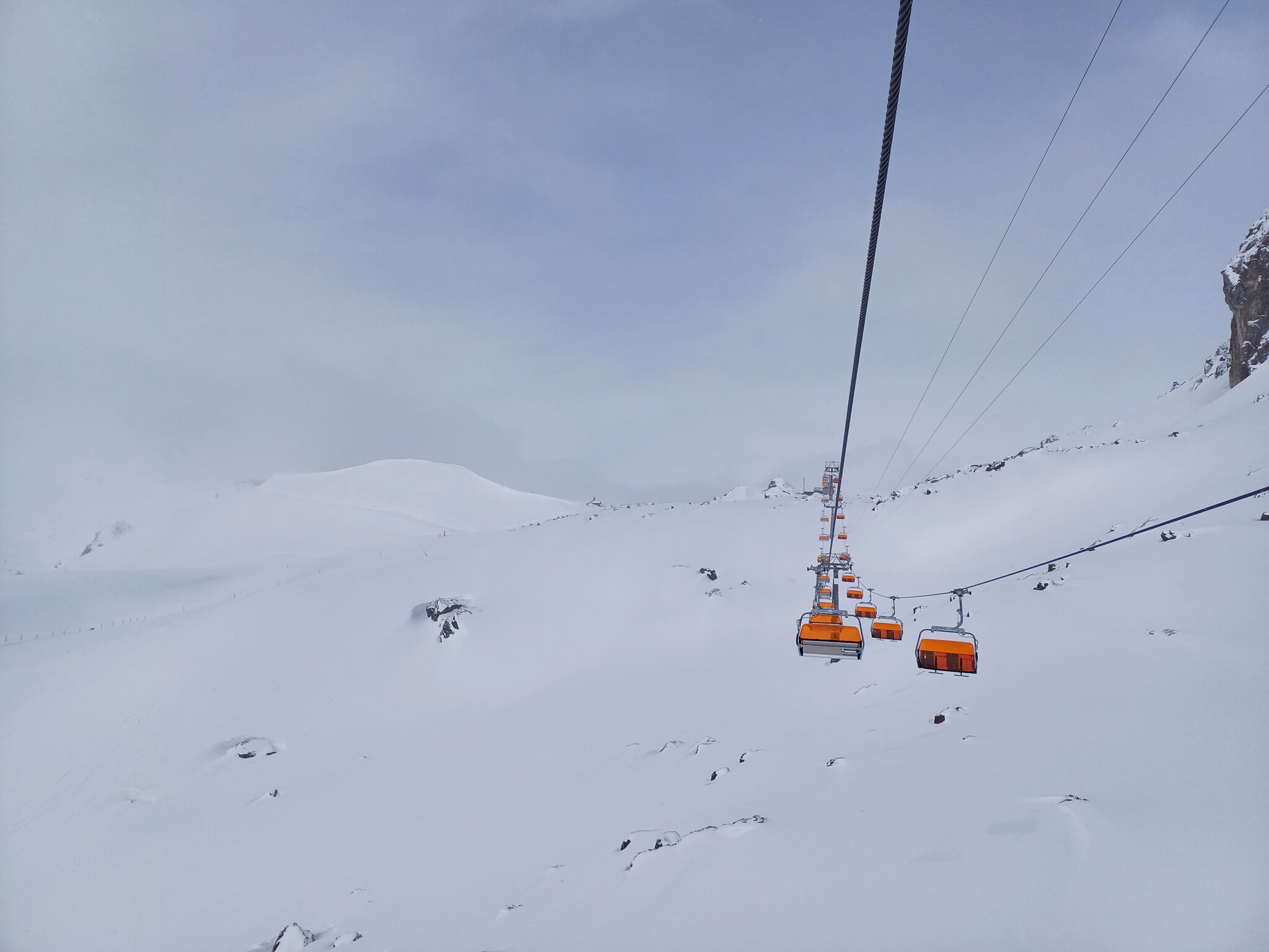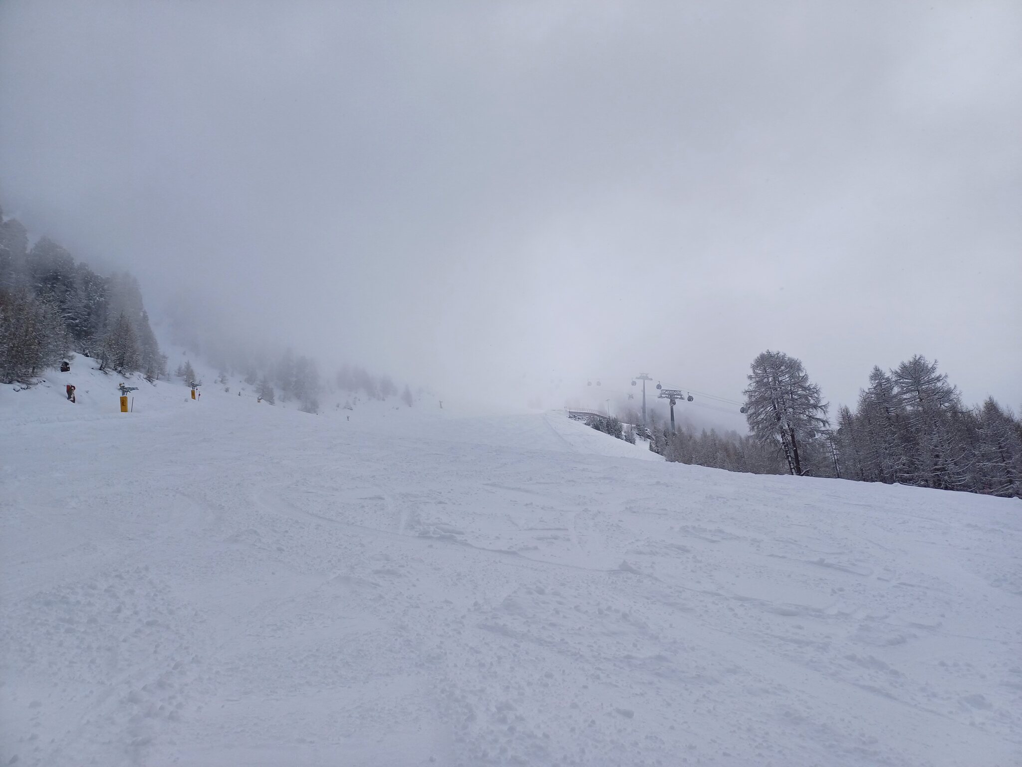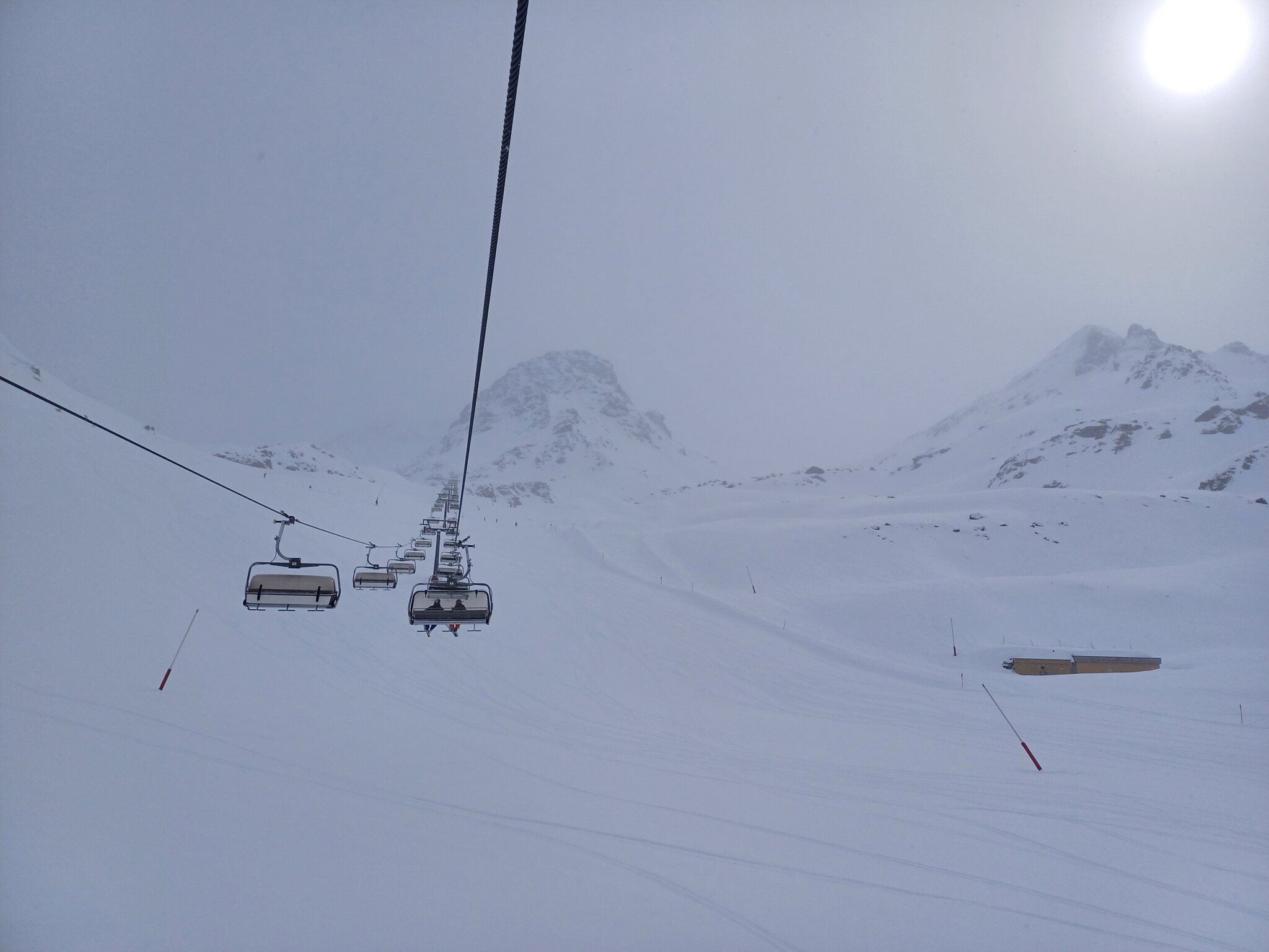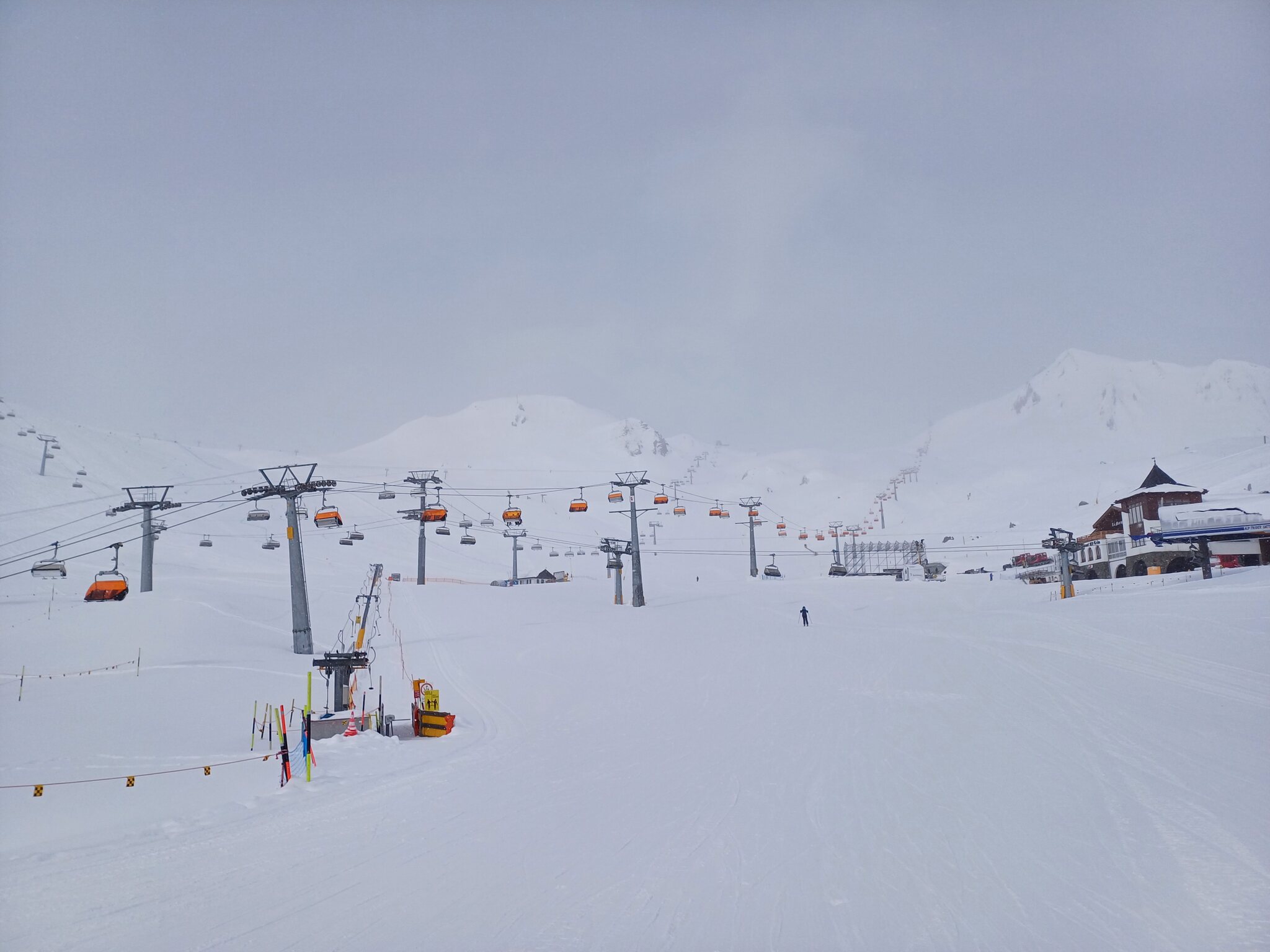 Krass finde ich, dass man trotz völlig fehlender Auslastung selbst redundante Bahnen laufen lässt, z.B. Idjoch, Fimba oder Zeblasbahn. Es war absolut tote Hose, teils gespenstisch. Das letzte Mal kann ich mich an so wenige Leute erinnern als das Gebiet im Jahr 2021 nach Corona wieder öffnete und in Österreich die Hotels noch geschlossenen waren. Ab Mittag wurde das Wetter deutlich schlechter. Bis Mittag teils gute Bodensicht und einige gute Powderlines gingen sich auch aus. Ab Nachmittag war die Sicht schlecht. Wir sind dann ausnahmsweise mal nach Laret runter. Hoffentlich wird die neue Bahn bald realisiert. Wobei ich bezweifle, dass die Piste die Menge an Leuten verträgt. Ist ja eher eine schmale Geschichte. Den Twinliner fuhr nur der Kabinenbegleiter mit. Fährt die Bahn auch mal im Personenbetrieb? Habe die Bahn noch nie offen erlebt, selbst wenn es am Twinliner erhebliche Wartezeiten hatte.