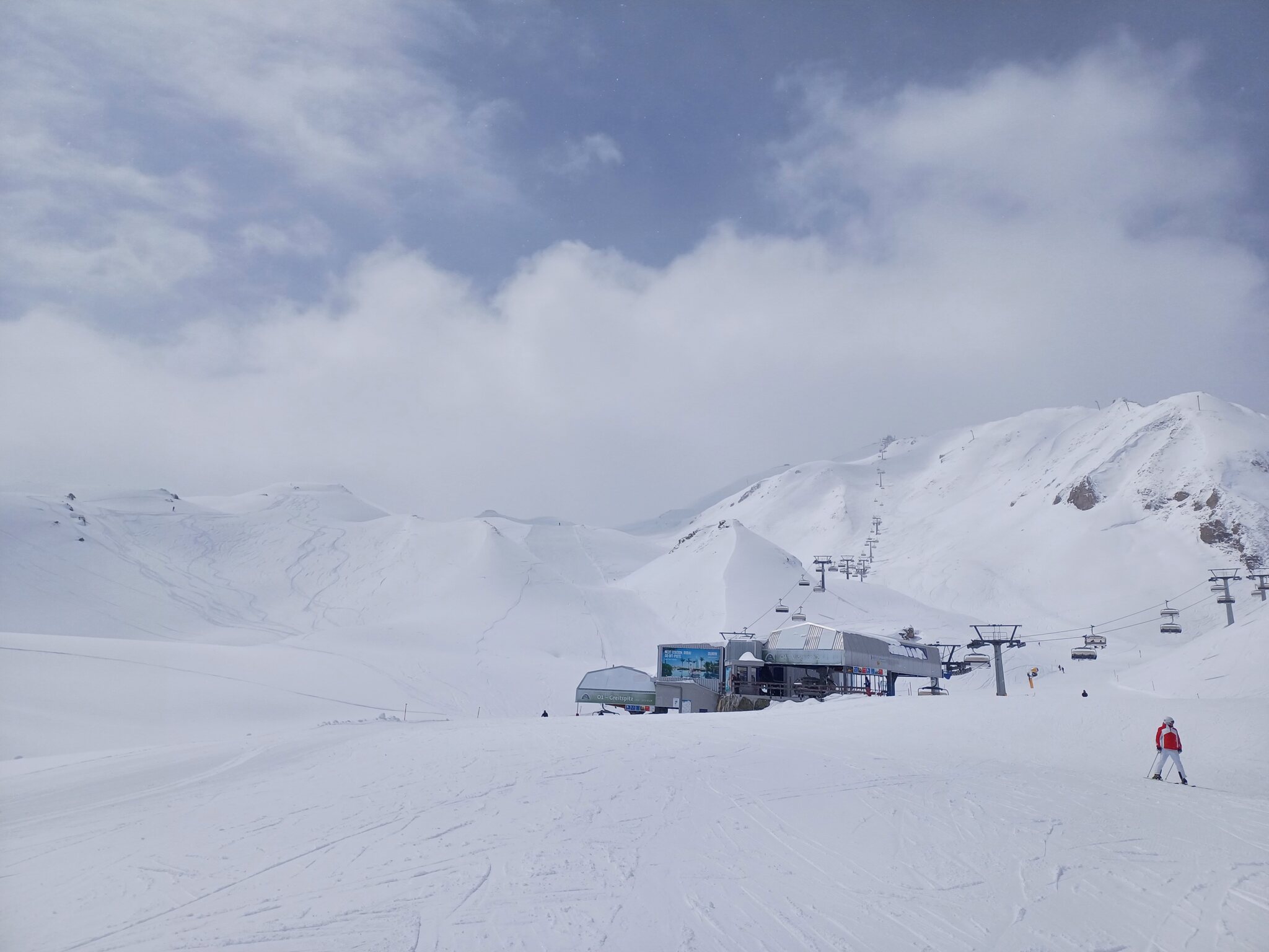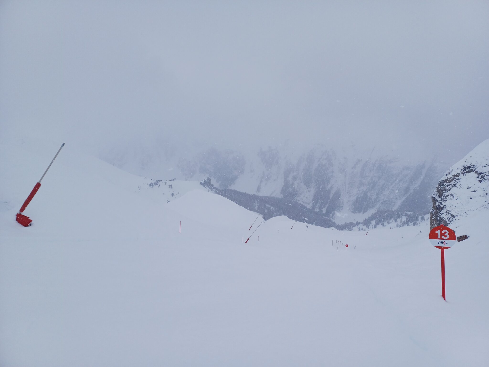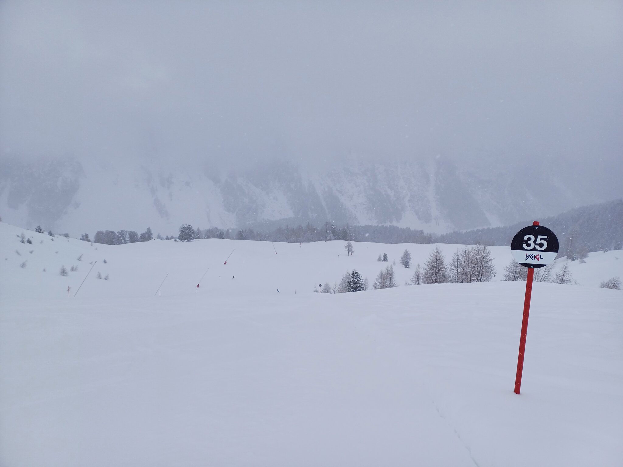 Bis zum späten Vormittag war die Bewölkung stets sehr dicht, ab Mittag wurde es auf Ischgler Seite zunehmend heiter, auf Schweizer Seite hingen die Wolken, genau umgekehrt zum Vortag. Über Nacht gab es wieder die üblichen 20cm Neuschnee bei zweistelligen Minustemperaturen