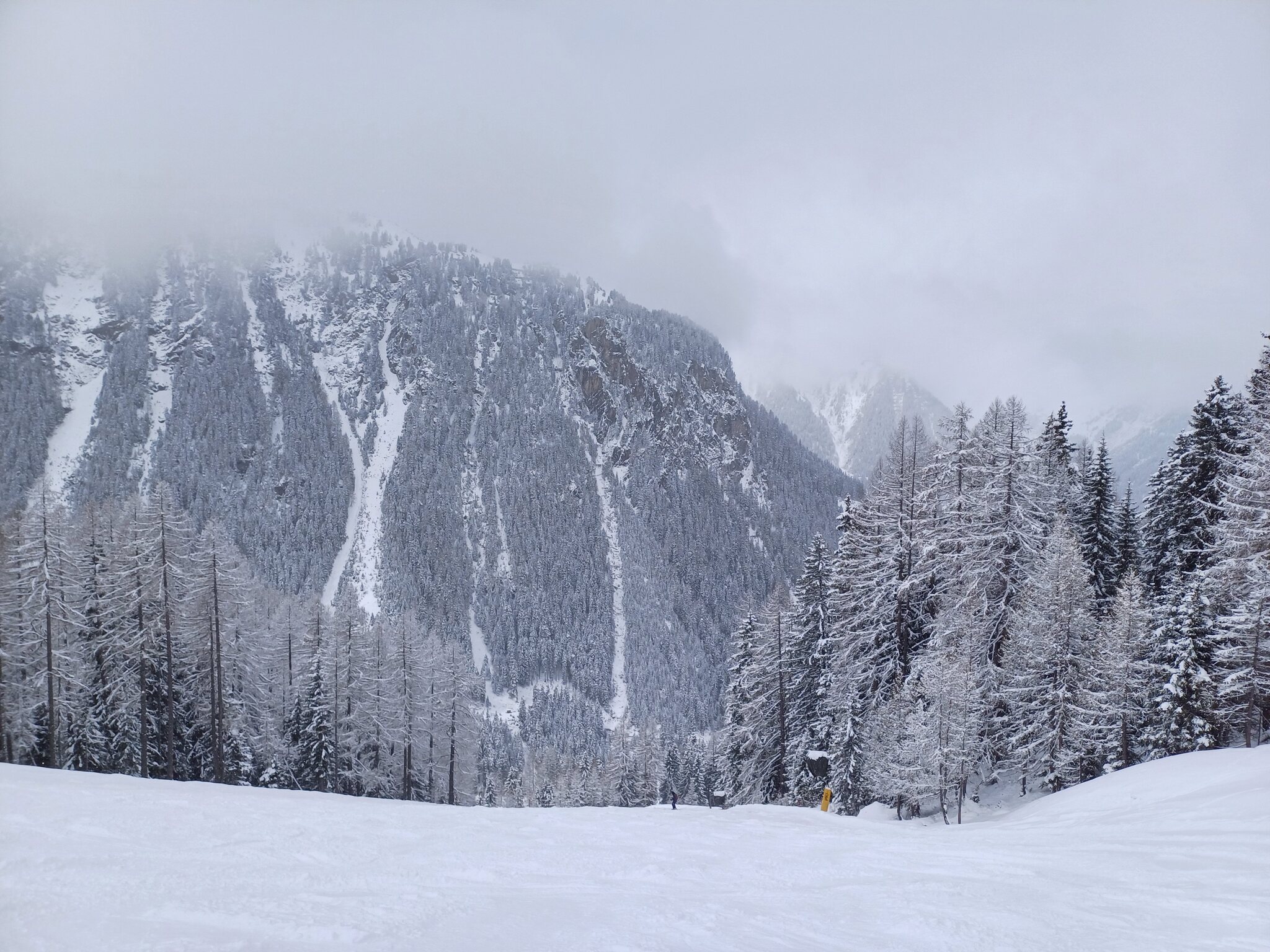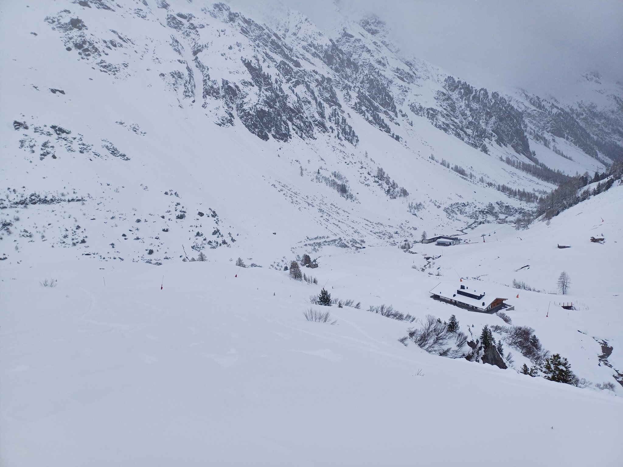 Krass wie schnell der Powder hinüber ist wenn nur ganz kurz die Sonne raus kommt. Entgegen meiner sonstigen Gewohnheit, hielt ich mich heute relativ viel auf Schweizer Seite auf, da hier das Wetter deutlich besser war. Das bessere Wetter schaffte es nicht auf die Ischgler Seite. Meine Lieblingsbereiche Palinkopf / Gampen / Höllspitze und Lange Wand waren den ganzen Tag über zum Vergessen. Eine eiserne Wolken bzw. Nebelschicht so geschätzt von 2500-2800 Metern. Sicht hier bei Null. Nachmittags stocherte ich dann doch nochmal zum Gampen runter. Ganz unten ergab sich noch ne gute Line. Weit und breit sehe ich keinerlei Menschen. Teils schon etwas unheimlich. Ähnlich war es im Bereich Muller. Lediglich die Spuren anderer deuten darauf hin, dass noch Menschen irgendwo sein müssen oder waren. Ich bin wirklich froh mich hier bestens auszukennen und zu wissen wo man ist, auch wenn die Sicht bei Null ist. Für Neulinge kann das echt schwierig werden. Selbst am Paznauner Thaya um 15.45 keinerlei Aktivität zu erkennen. Ist hier noch jemand ?