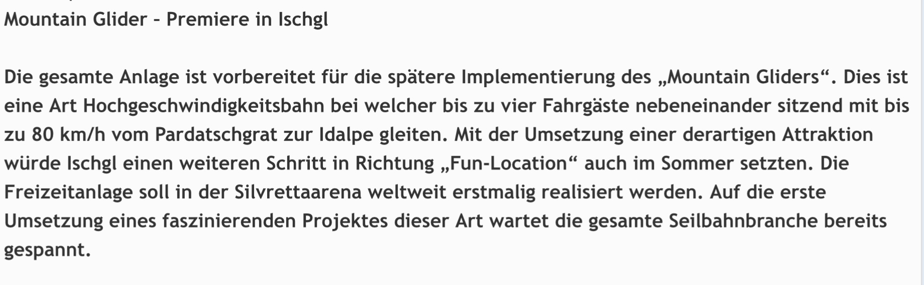 Da war ein Mountain Glider in Planung. Ist leider- oder auch zum Glück- nie gekommen. Die Aufhängung hatte damit zu tun wegen dem Bergtransport der „Coaster“ zum Pardatschgrad. Als Ersatz hat’s es wohl den bis ins Tal gehende Skyfly. Einer der Entwürfe. Es gab mindestens zwei.