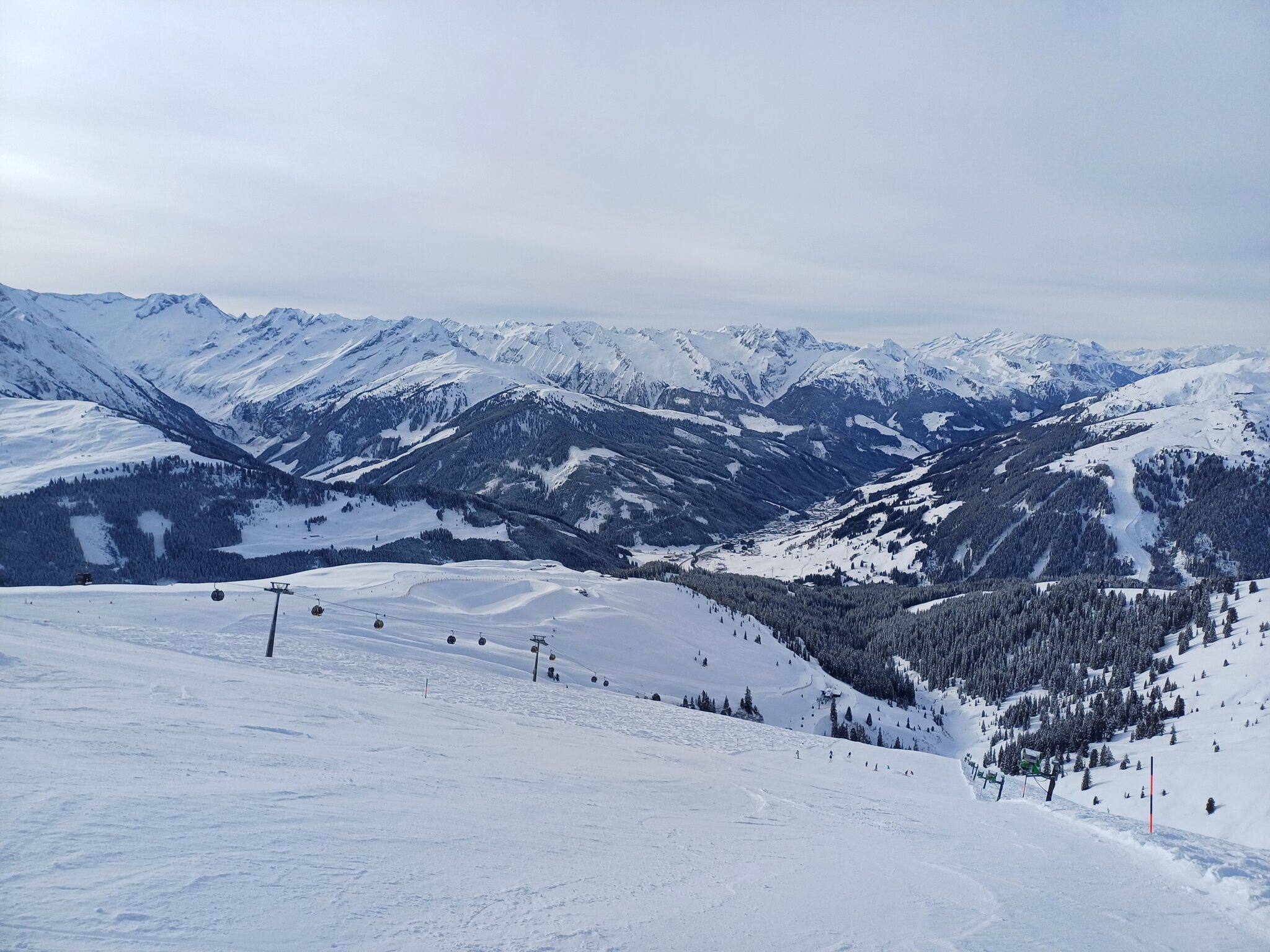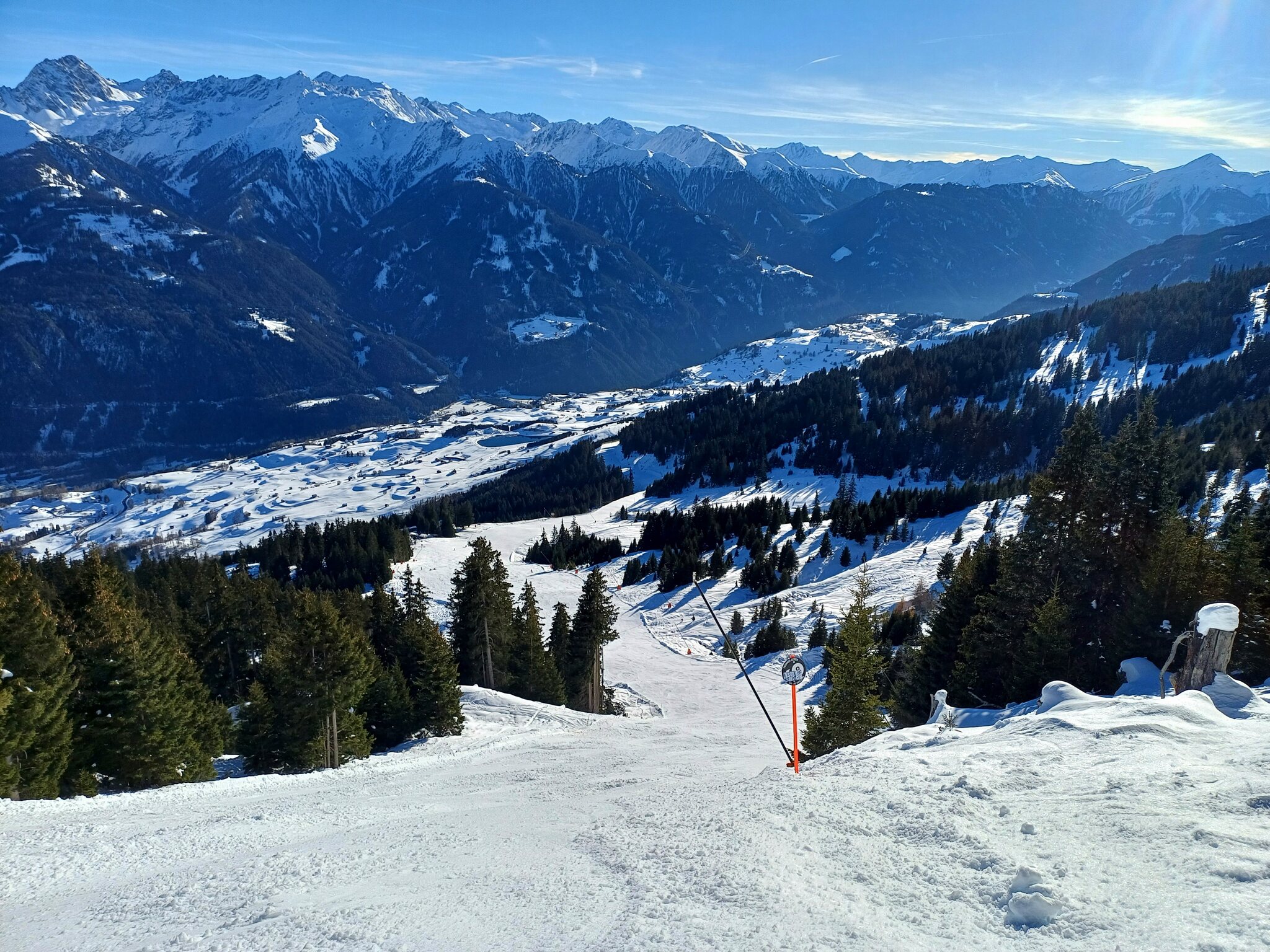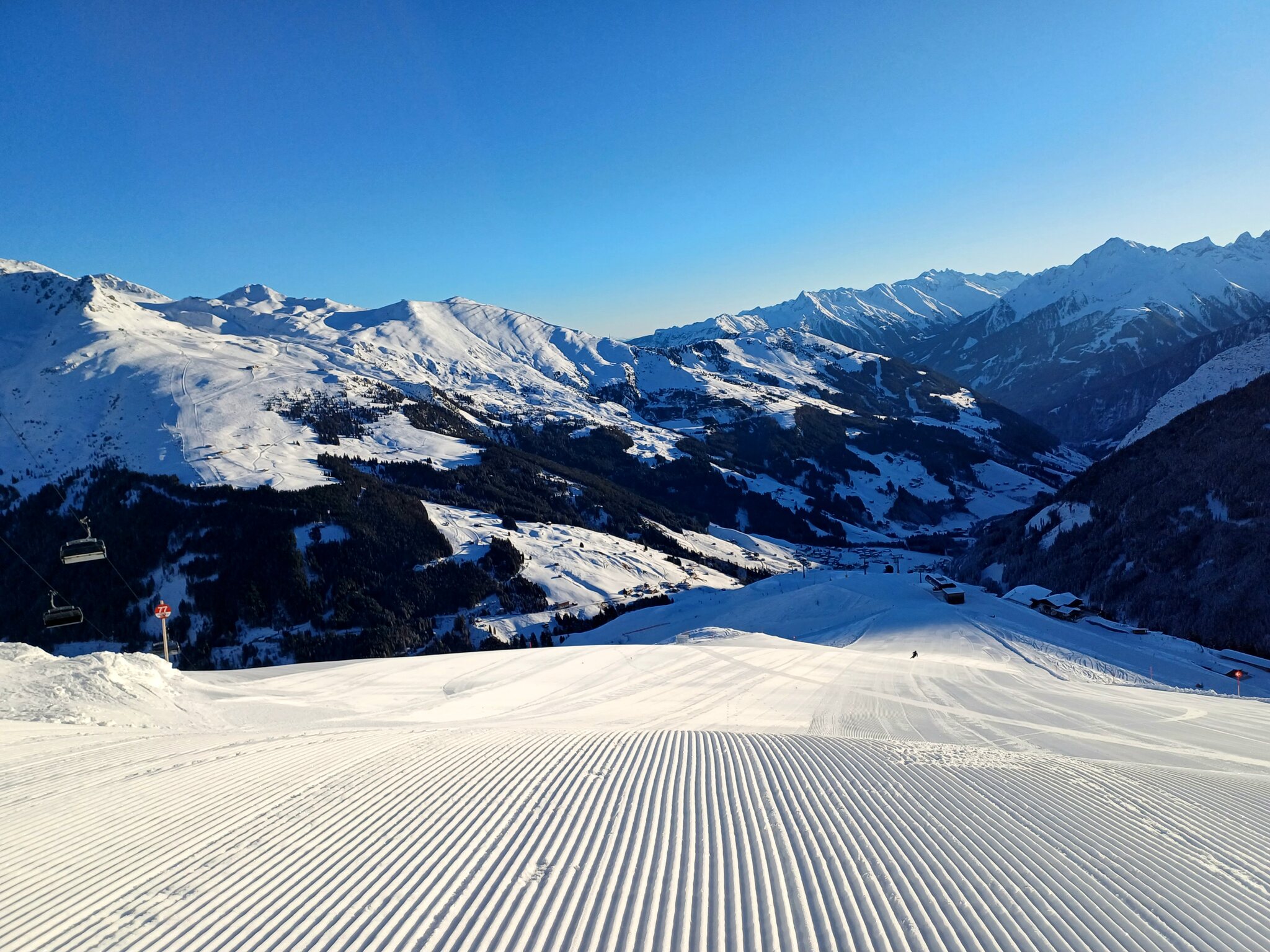 Zillertalarena finde ich objektiv gut, aber irgendwie werde ich trotzdem nicht warm damit. Nach einem Skitag, obwohl objektiv alles passt, stellte sich irgendwie das Gefühl ein, keine richtig gute Abfahrt gefahren zu sein. Kann das nicht genau beschreiben. Der Sektor Königsleiten hat irgendwie ein totales Chaos an Liften, ich kann hier kein Konzept erkennen. Am Besten gefielen mir die Pisten in Zell. Vielleicht sollte man eine andere Strategie fahren und eben nicht das gesamte Gebiet abfahren. Mayrhofen liegt mir da viel besser. Abgestimmtes Gebiet und tolle Abfahrten, auch zum Wiederholen. Sehr modern. Der Sektor Eggalm war sehr wenig frequentiert und insgesamt sehr tolle Abfahrten und ein tolles Panorama mit den Tuxer Alpen. Auch die Anzahl an Hütten und die dort aufgerufenen Preise völlig in Ordnung. Den 20.01.24 verbrachte ich wieder in Mayrhofen bei sehr kalten Temperaturen. Einstieg erfolgte über die Horbergbahn. Im gesamten Zillertal hat man schon das Gefühl auch als böser Tagesgast der auch noch mit dem Auto kommt noch willkommen zu sein. Keine Parkplatzgebühren, keine "Lenkung" wie anderswo. Als würde nach Sölden ein Auto weniger kommen, nur weil Parkplatzgebühren verlangt werden und die Leute steigen in Ötztal-Bahnhof dann auf Öffentliche um, nachdem sie bereits 3 Stunden im Auto saßen, so wie ich. Ganz bestimmt