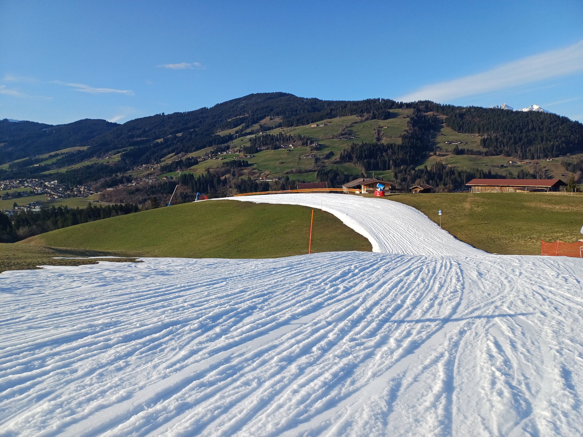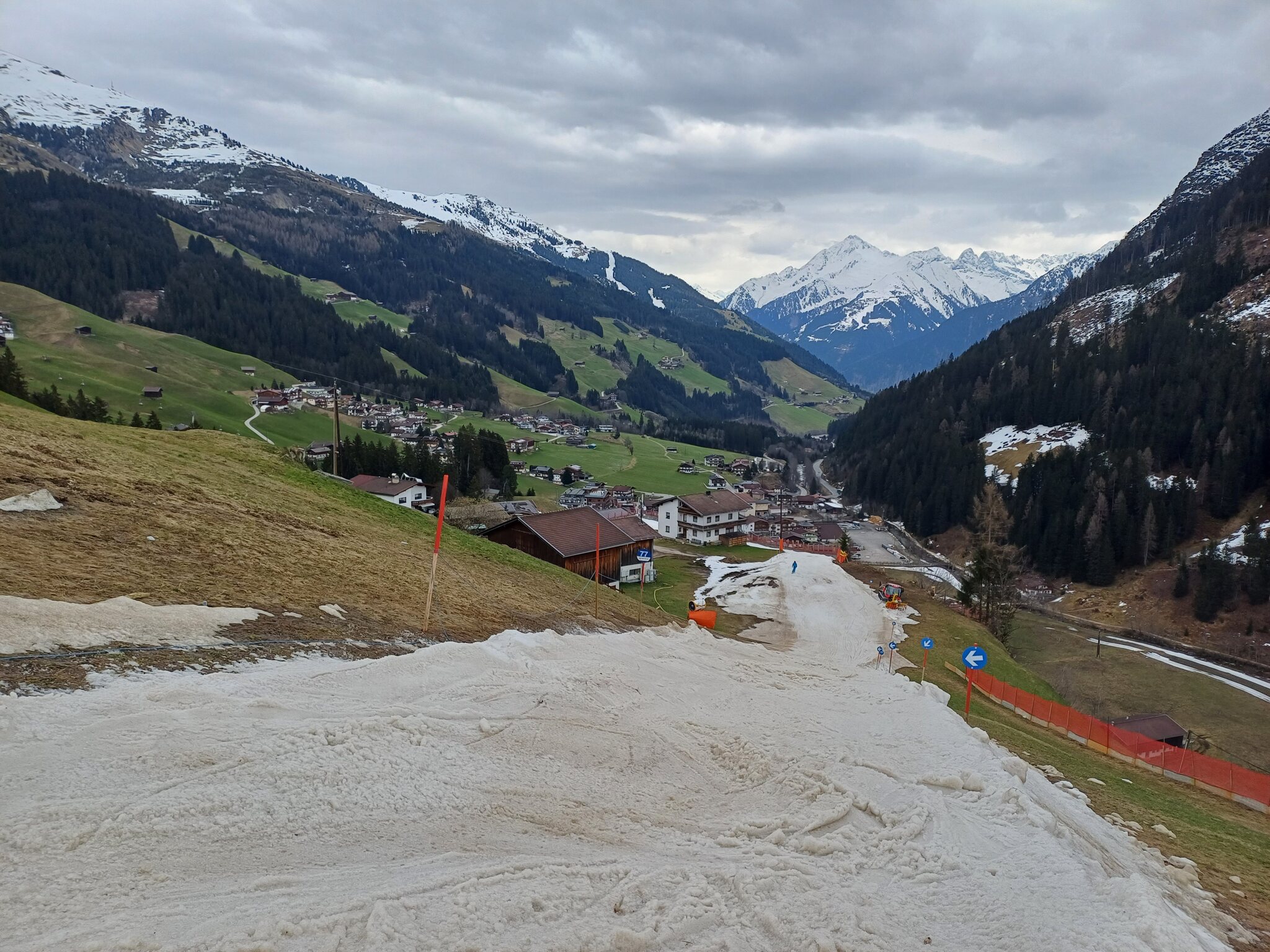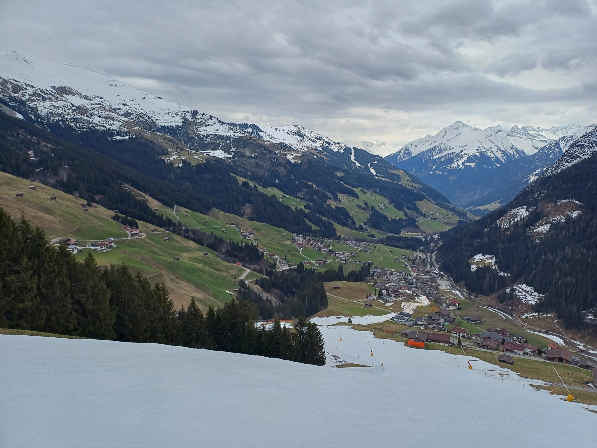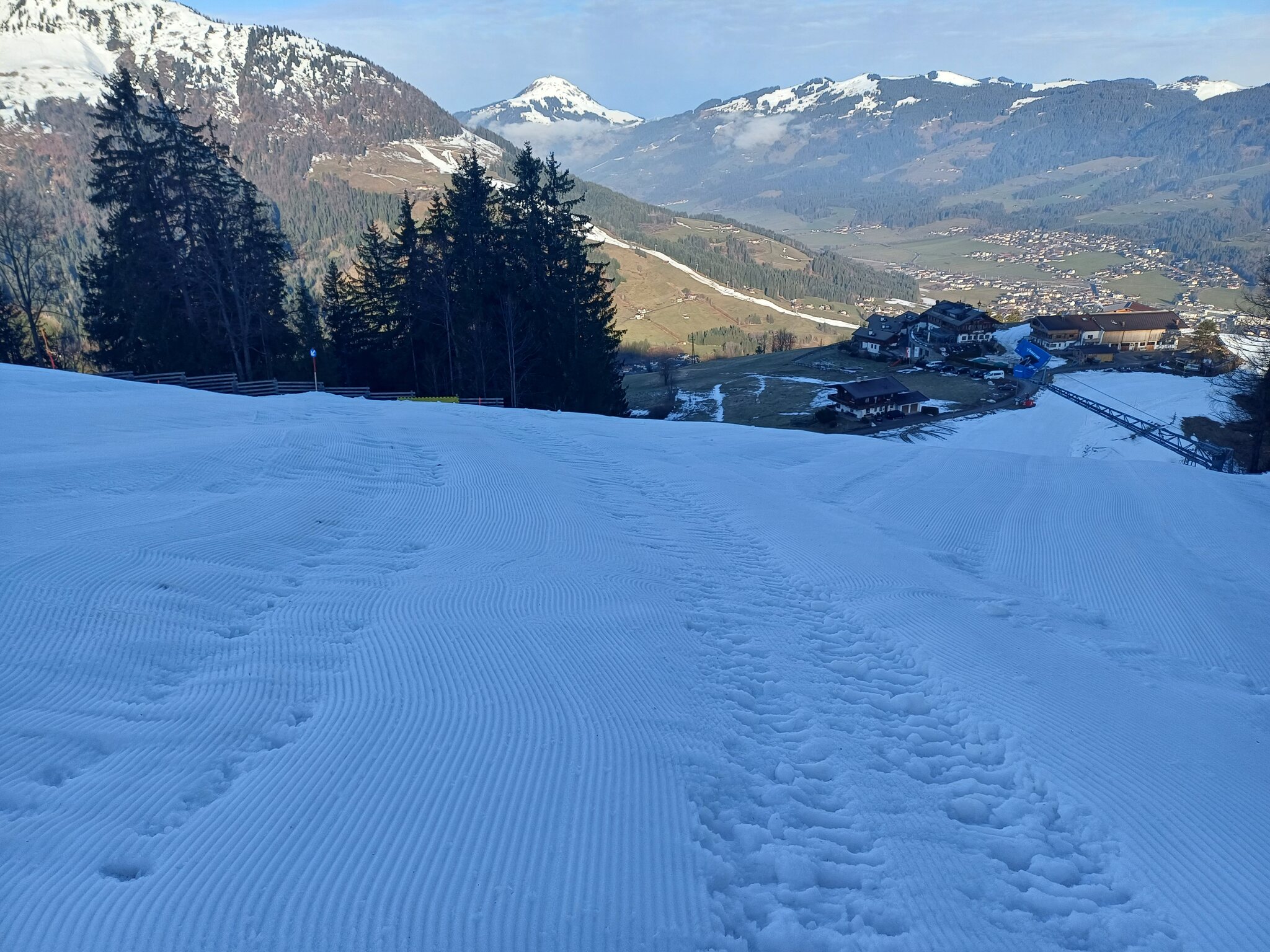 Diesmal musste ich die Parkgebühr bezahlen, da wir kein Hotel gebucht hatten hier. Wir fuhren nach Betriebsschluss weiter nach Nauders. Hier buchten wir einige Tage zuvor ein tolles Hotel mit Halbpension. Das Hotel gehört zu einer Kette, es war alles in Ordnung, leichte Defizite im Service hier und da. Da sind mir inhabergeführte Häuser einfach lieber. Wenn der Inhaber im Haus ist läuft das oft besser. In Nauders selbst geht es eher sehr ruhig zu. Leider war das Wetter an beiden Tagen nicht so toll. Das Skigebiet ist modern und stimmig, wirklich tolle Abfahrten. Am ersten Tag hatte die Tscheyeckbahn leider frühzeitig einen Defekt und stellte den Betrieb ein, jedoch war dies kein Verlust, da die Sicht hier oben gleich null war. Am zweiten Tag besserte sich das Wetter und alles war mit Sicht fahrbar. Insgesamt kann das Gebiet überzeugen vor allem bzgl. der Infrastruktur. Ich konnte nichts Negatives benennen, mir sind Gebiete in der Größe insgesamt jedoch zu klein. Für einen Tag oder zum Offpiste fahren sehr gut aber die Abwechslung fehlt mir. Was mir auch aufgefallen ist die völlige Abgelegenheit der Talstation. Sie steht einfach völlig abseits des Ortes im Niemalsland. Warum das wohl so ist ? Am 02.03.24 stand die einzige Tagesfahrt an, eigentlich wollte ich in die mir bisher unbekannte Skiwelt. Da leider bereits wie bekannt der Winter seit längerer Zeit Pause machte, hatte ich den Plan verworfen, als ich die weißen Bänder bis relativ weit oben sah bei der Anfahrt. Also dann doch weiter nach Kitzbühel. Hier war Vollbetrieb. Ich bin tatsächlich das ganze Gebiet abgefahren und mein Fazit hat sich leicht verbessert. Das Publikum war angenehmer an diesem Tag. Durchaus einige nette Ecken, trotzdem ist mir das Ganze zu Ziehweglastig bei zu wenig richtigen Abfahrten. Auch die Pistenpflege war an diesem Tag mehr als grausam, schlimmer als in Hintertux in seinen dunkelsten Stunden. Und das obwohl die Pistenraupengarage auf Höhe Fleckalmbahn "Kompetenzcenter" heißt. Insgesamt werde ich mit dem Gebiet nicht warm. Die Auszeichnung "Weltbestes Skigebiet" kann ich nicht nachvollziehen. Höchstens im Mittelfeld. Am 22.03.24 ging es für zwei Tage wieder ins Tuxertal. Der 22.03.24 war ein Traumtag mit viel Neuschnee, weiter unten jedoch viel zu warm. Bei der Anfahrt machte ich mir viele Gedanken welches Gebiet ich ansteuere. Bzgl. des Neuschnees wurde es dann Hintertux, was ein großer Fehler war. Bereits bei der Anfahrt um 07.30 Uhr standen viele Wintersportler an der Bushalte in Mayrhofen. Die fahren bestimmt alle zur Eggalm