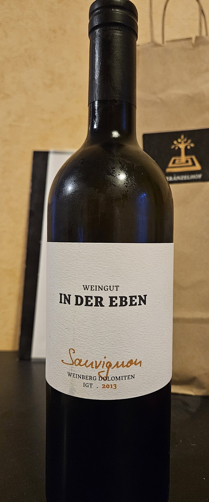 Heute die zweite Präsentflasche aus dem Plauser Reifekeller: 2013er Sauvignon vom Weingut In der Eben in Ritten (aber unten am Eingang zum Eisacktal) mit üppigen 14,5 Vol%.
