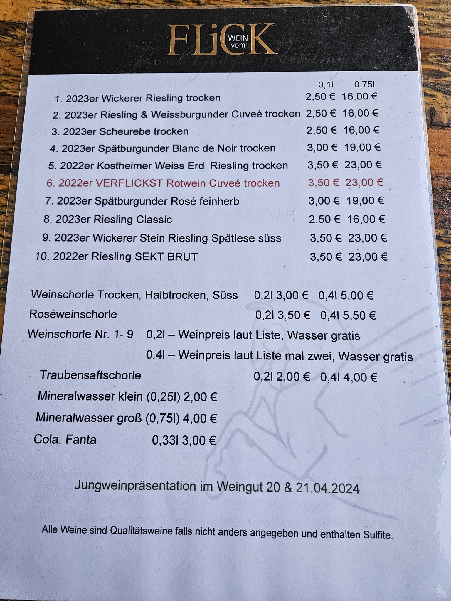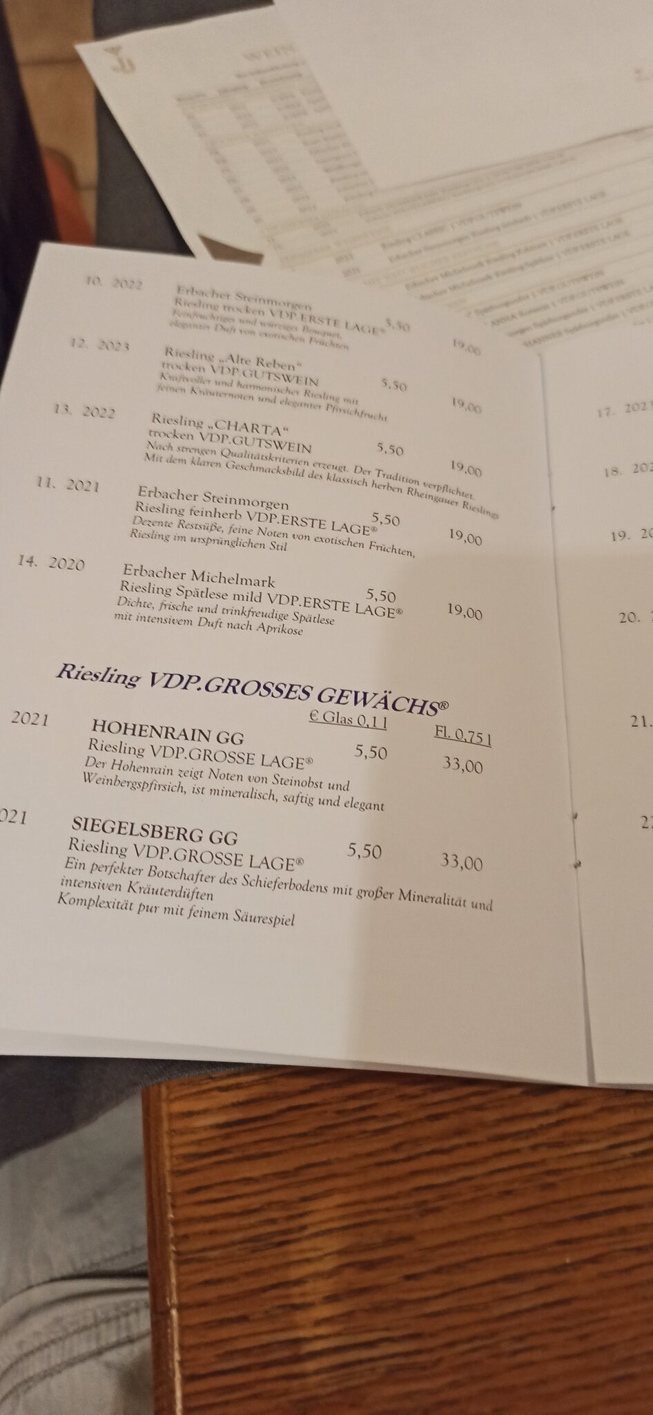 War mit dänischen Tischnachbarn ein großer Spaß, vom 2023 Riesling Trocken mit Zitronenmelisse, über den 2022er Spätburgunder aus dem Drachenstein und dem 2021er Zenit aus derselben Lage zu Himmel und Erde ein sehr schöner Spätmittag.