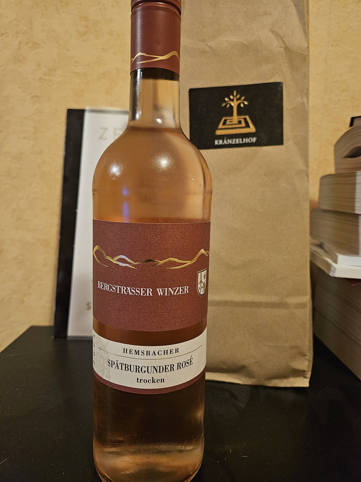 Heute gibt's nach dem Riva und zum Halbfinalhinspiel von Leverkusen in Rom mal was einfaches: 2023er Hemsbacher Spätburgunder Rosé der Bergsträßer Winzergenossenschaft mit 12 Vol%.