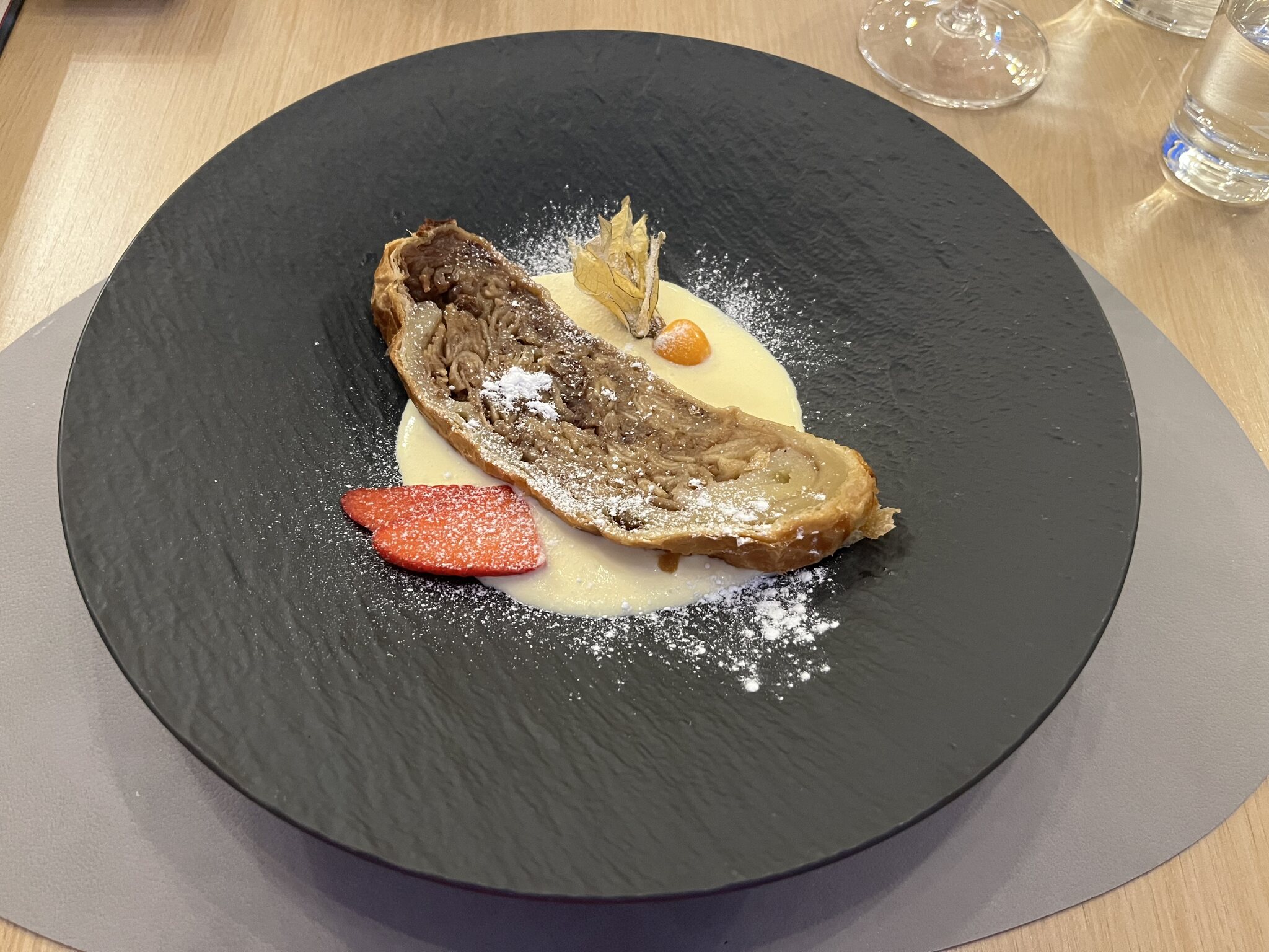 Die wollen mich mästen hier. Auch der Apfelstrudel ist viel zu gross, aber irrsinnig gut.
